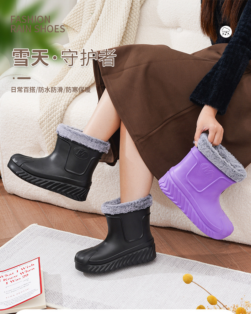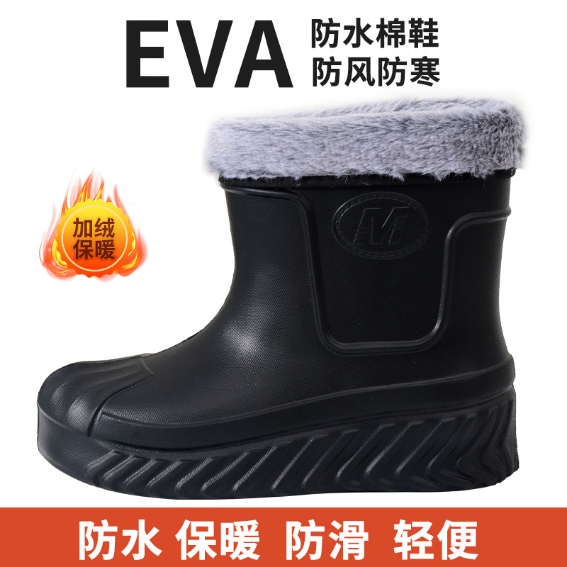 새로운 여성 EVA 방수 코튼 신발 따뜻한 미끄럼 방지 하이 탑 스노우 부츠 주방 야외 세차 콜드 스토리지 작업 신발