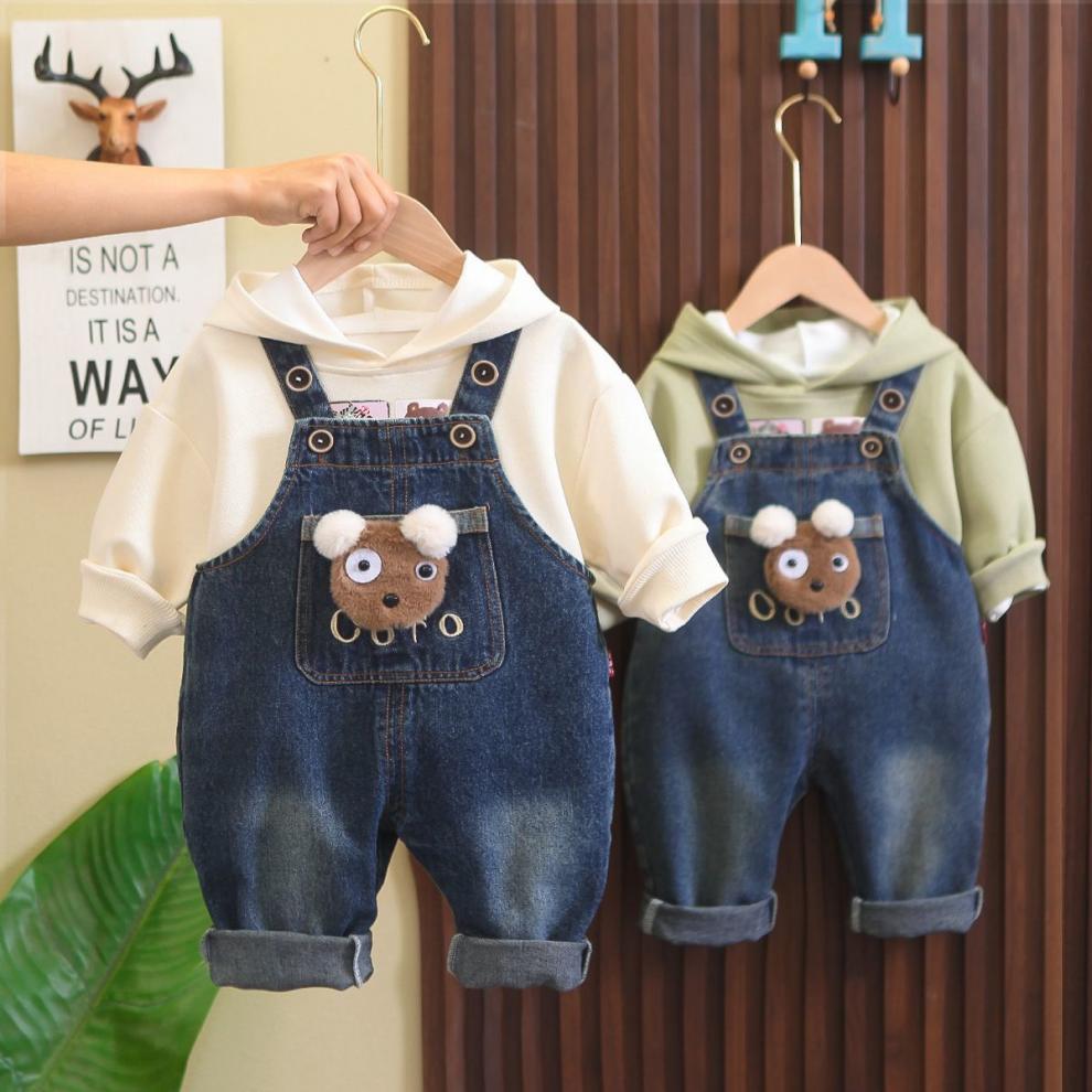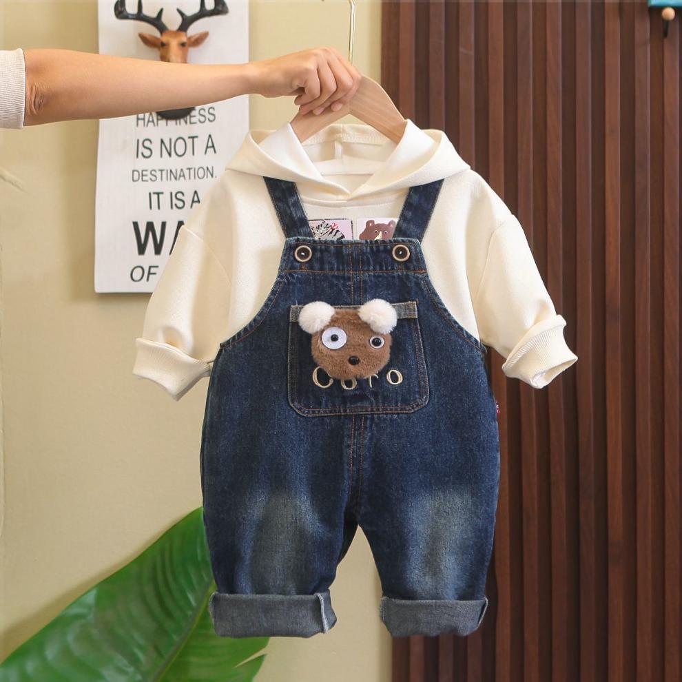 어린이 착용 소년 봄 스트랩 세트 2025 새로운 어린이 봄과 가을 서양 스타일 긴 소매 2 피스 세트 아기 트렌디