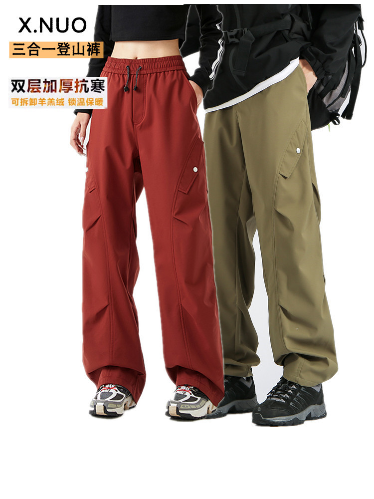 ✅동북 충전 바지 남자 더블 레이어 분리 기모 두꺼운 야외 스키 방수 방풍 바지 사이클링 코일 바지