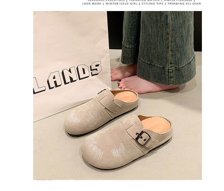 짧은 남성 봄과 여름 의상 Burkan 신발 여성의 2025 새로운 두꺼운 싱글 슬립-인 힐리스 신발 하프 슬리퍼스토어 가기