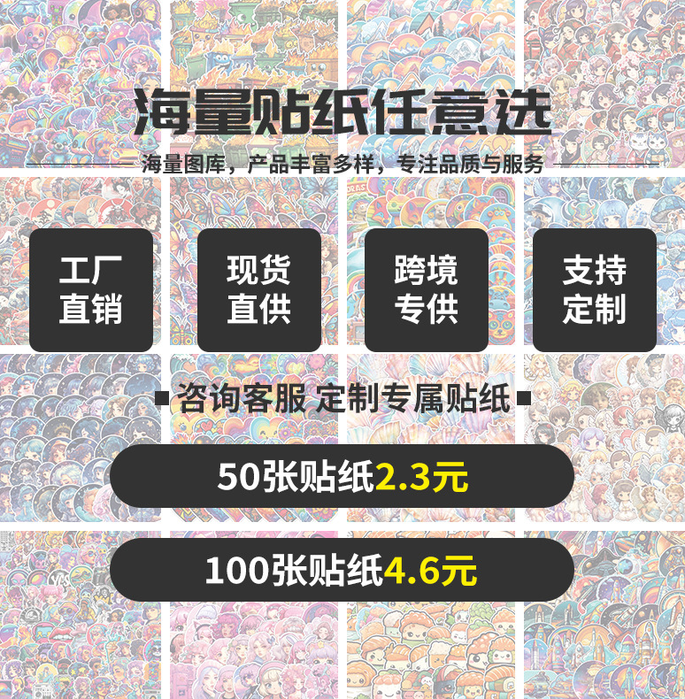 ✅50 장/100 장 낙서 스티커 자동차 트렁크 장식 스티커 방수 만화 문구 스티커 맞춤형스토어 가기