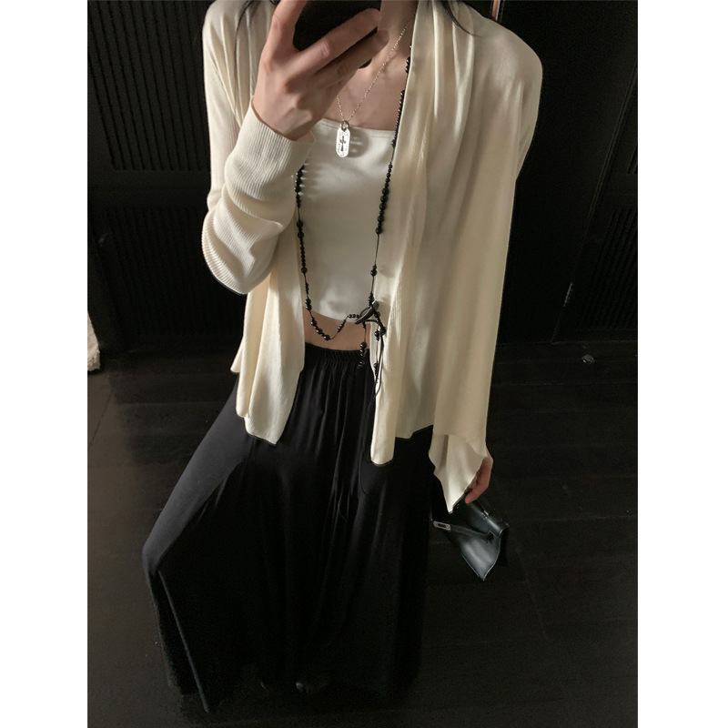 히비스커스 불규칙한 텐셀 스웨터 여성의 봄 새로운 느슨한 게으른 스타일 목도리 카디건 긴팔 탑 트렌디