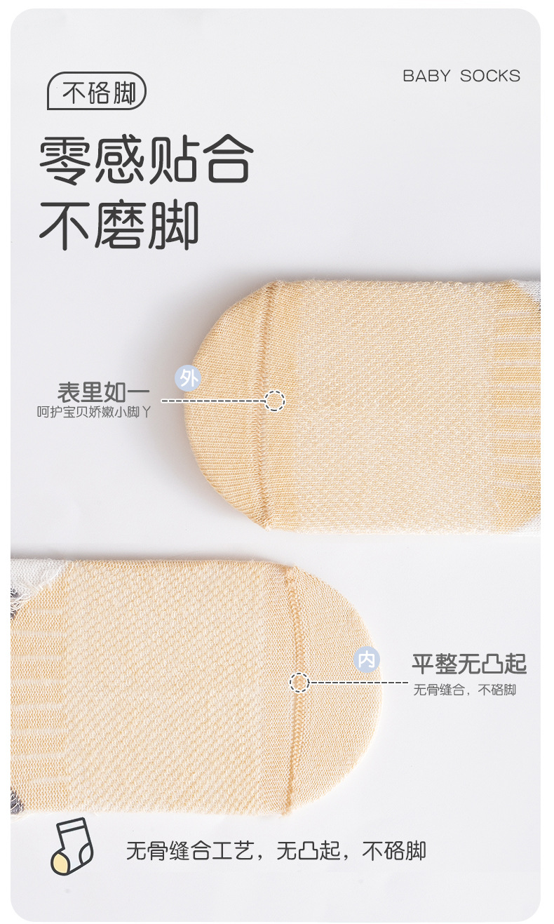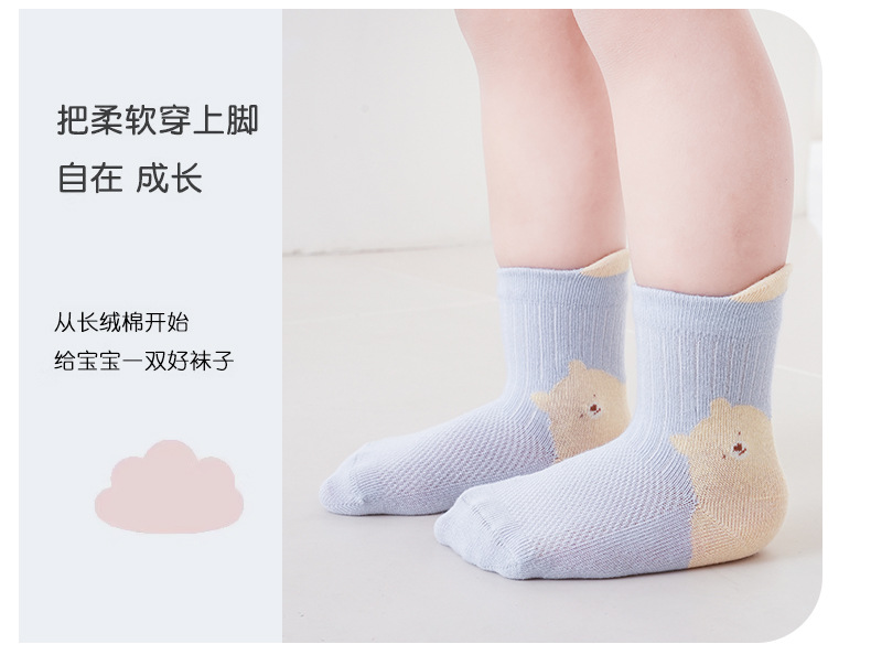 Xiyujia 봄과 여름 새로운 아기 양말 Combed Cotton Class 메시 통기성 뼈없는 소년과 소녀 만화 귀여운 어린이 양말스토어 가기