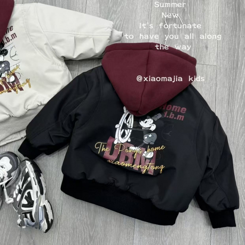 소년 한국어 버전 퀼트 만화 미키 재킷 겨울 2025 새로운 스타일 어린이 소녀 후드