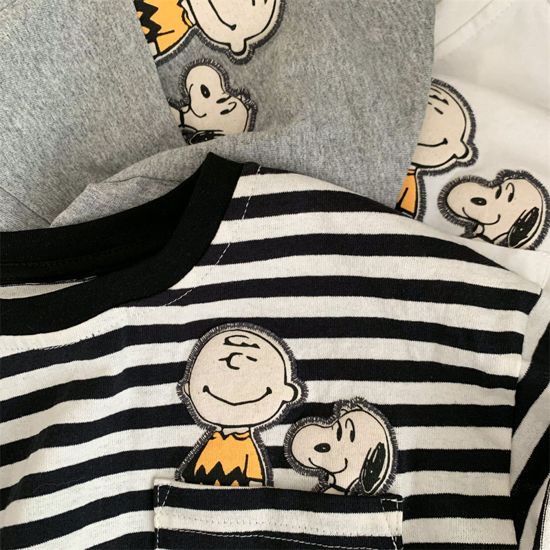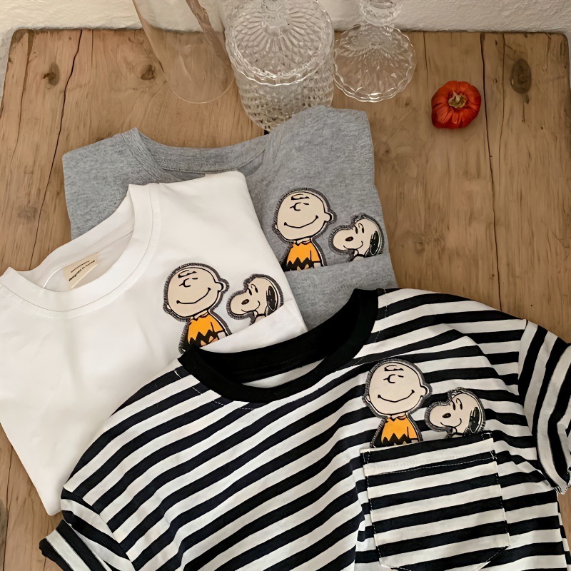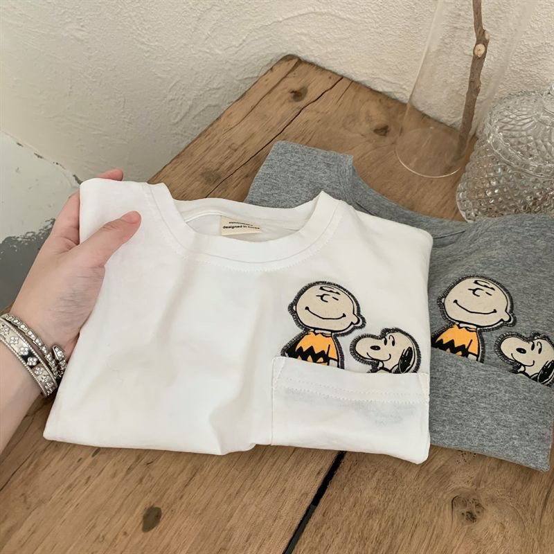 여름 새로운 한국 스타일 둥근 목 만화 티셔츠베이스 셔츠 소년 소녀 아기 얇은 상단 짧은 소매 목화 티셔츠스토어 가기