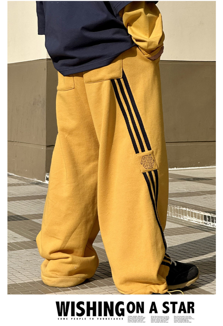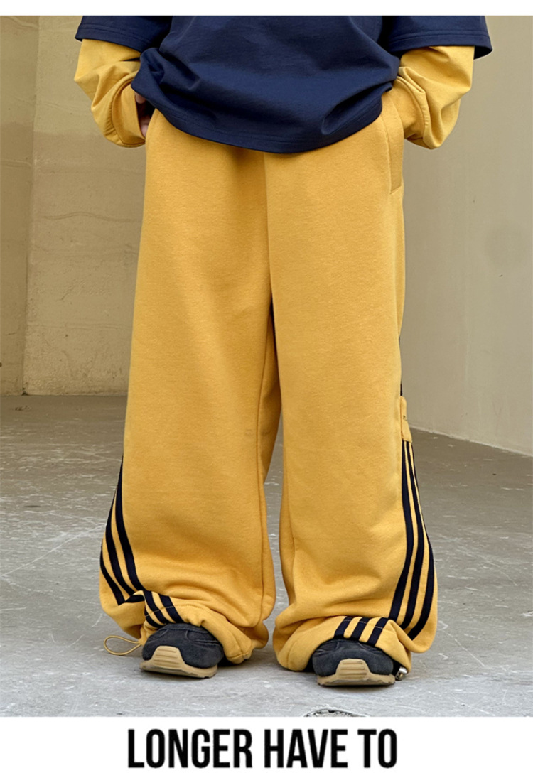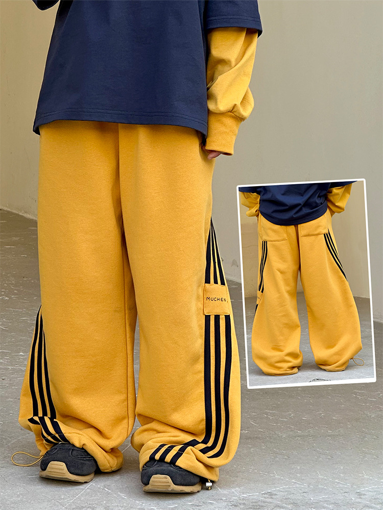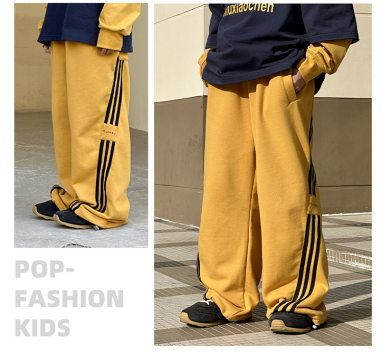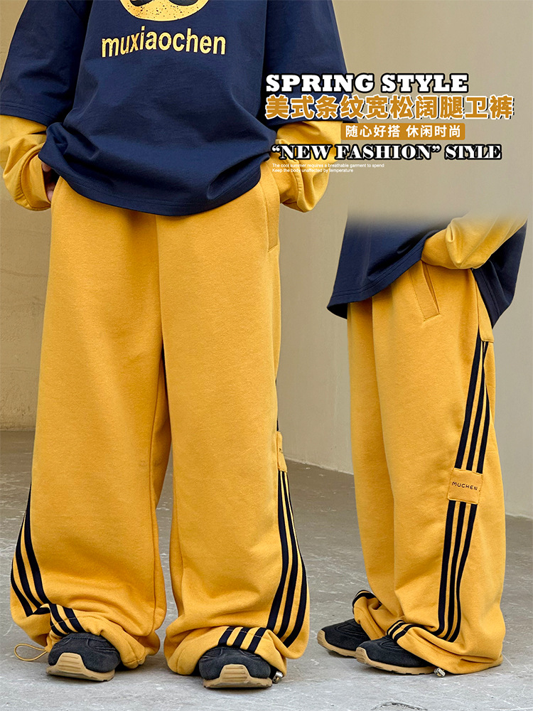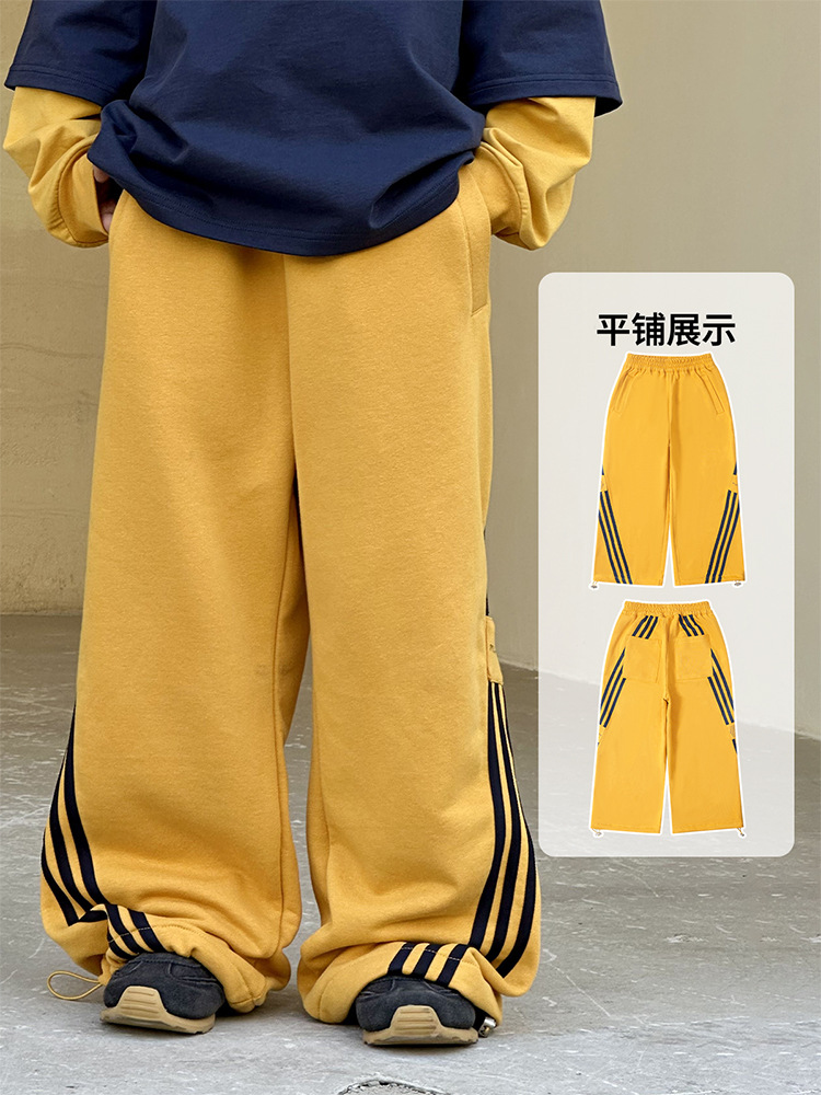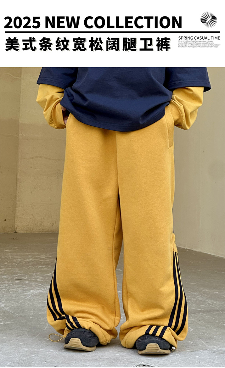 남학생 바지 2025 봄 새로운 어린이 미국식 Ragline 인쇄 스트레이트 레그 와이드 레그 바지