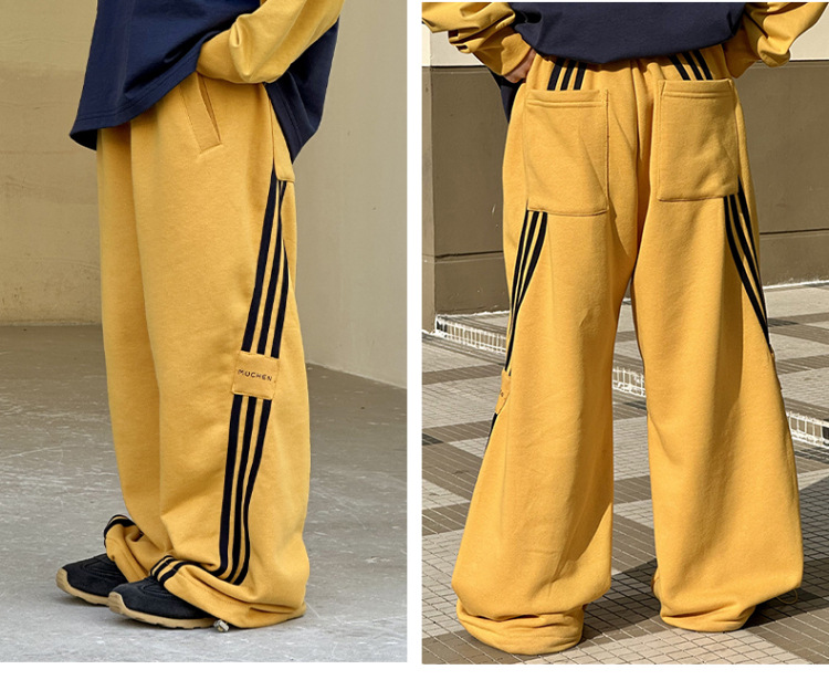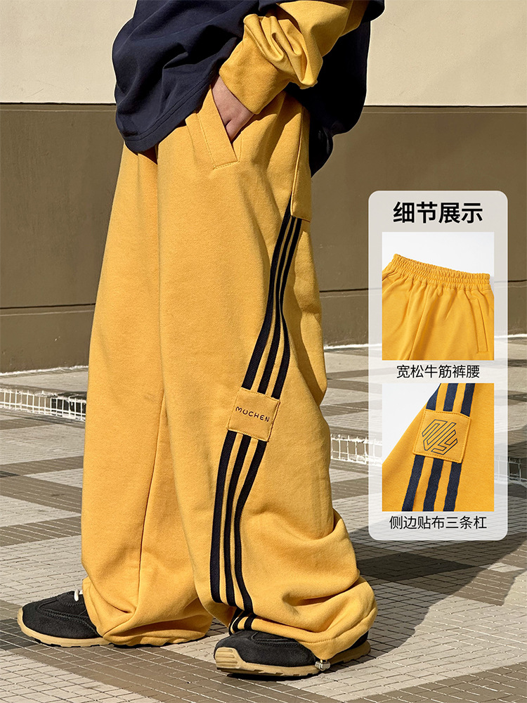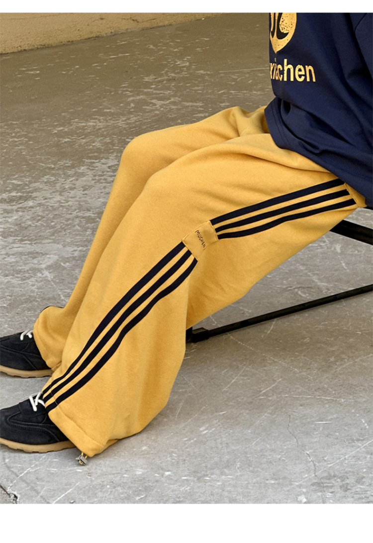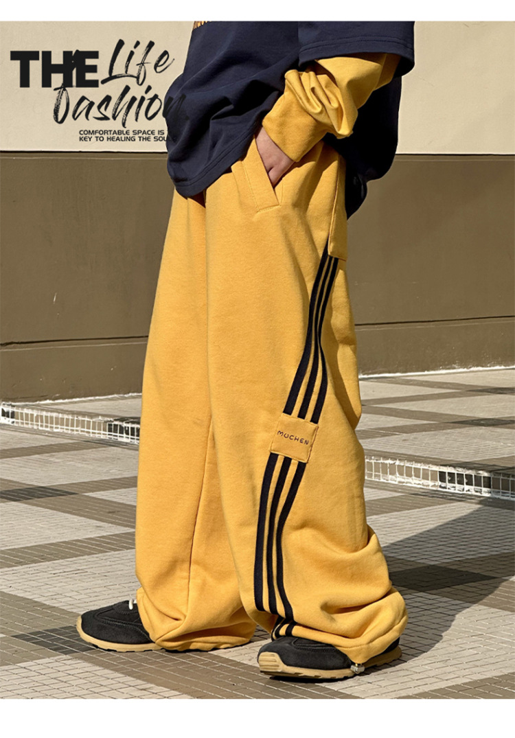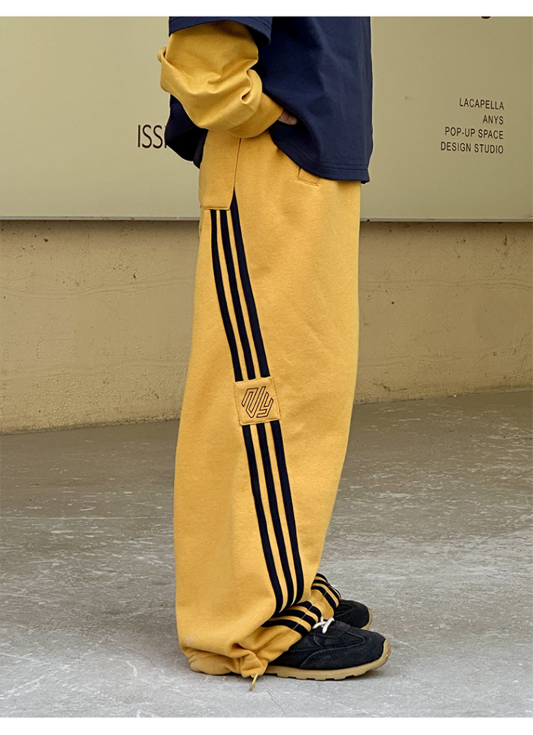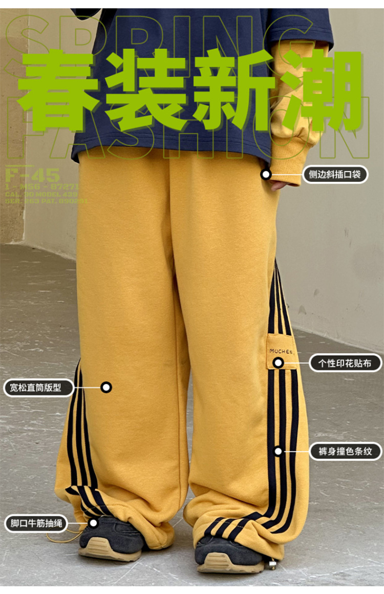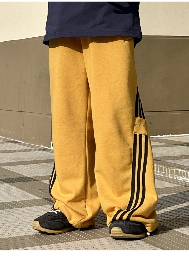 남학생 바지 2025 봄 새로운 어린이 미국식 Ragline 인쇄 스트레이트 레그 와이드 레그 바지