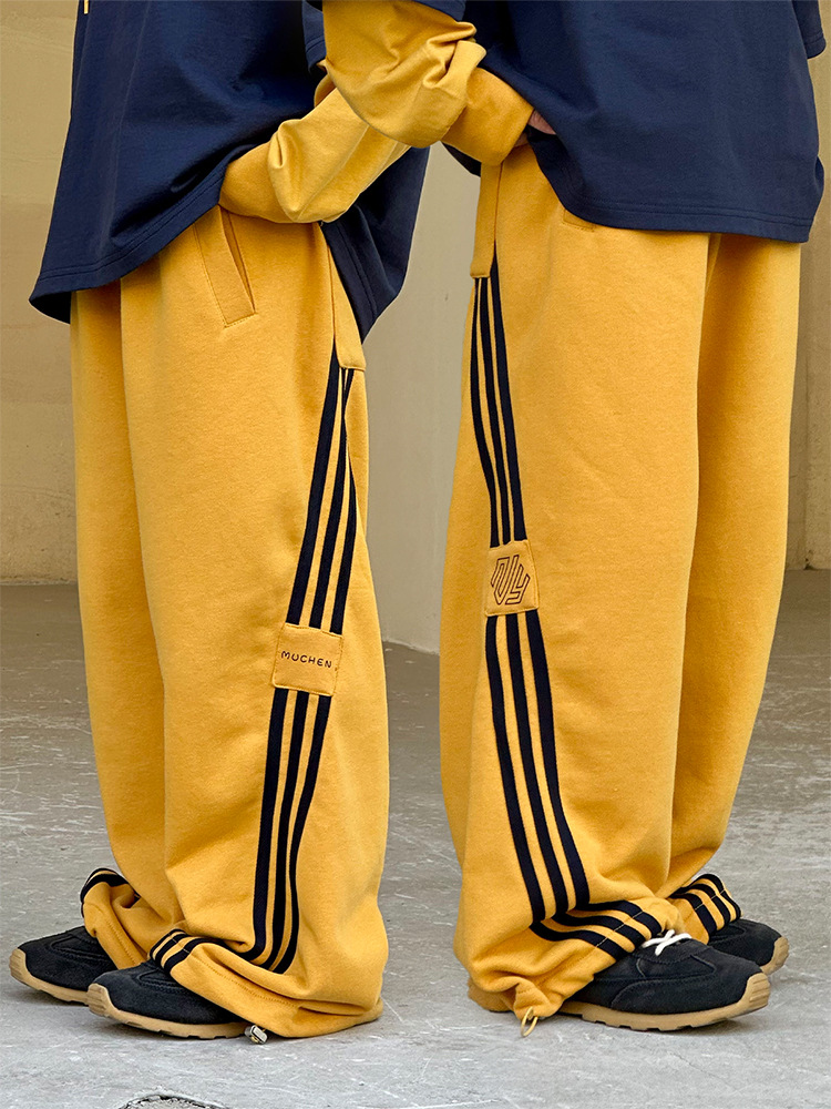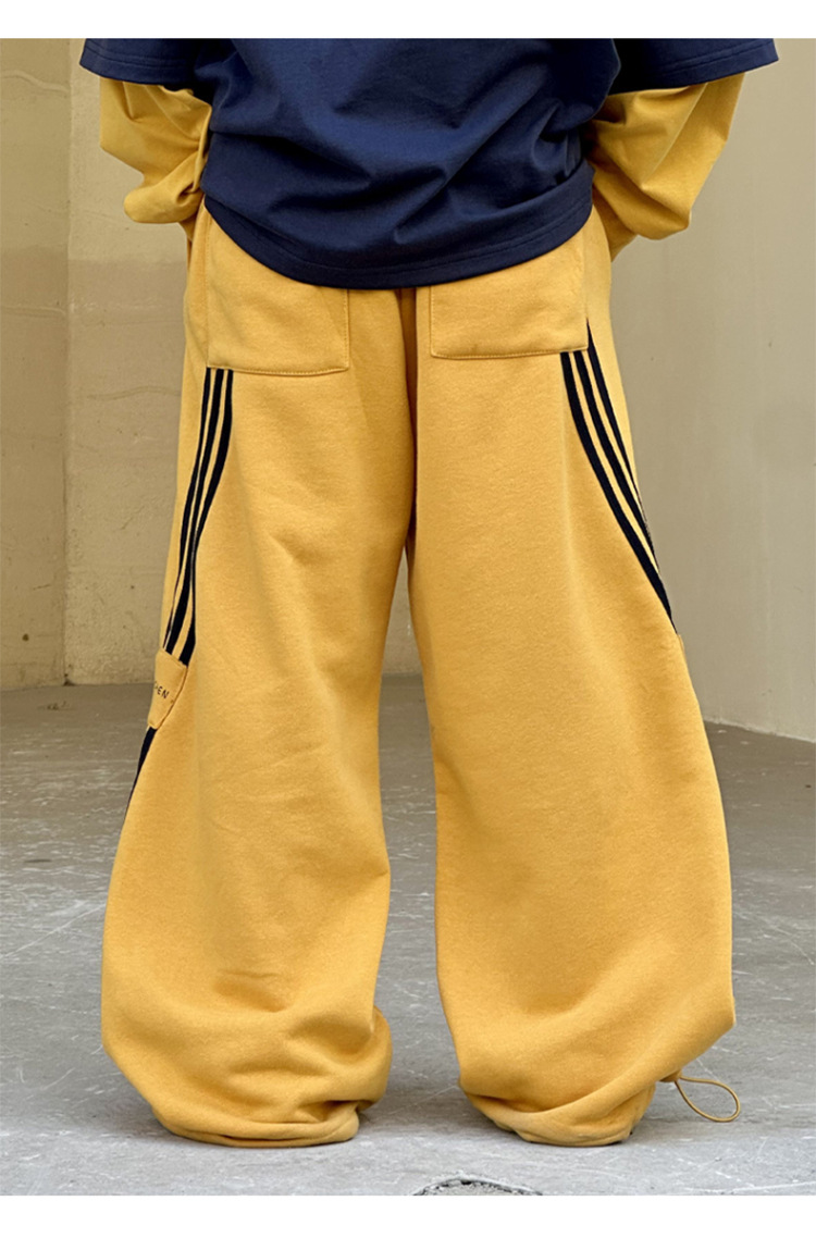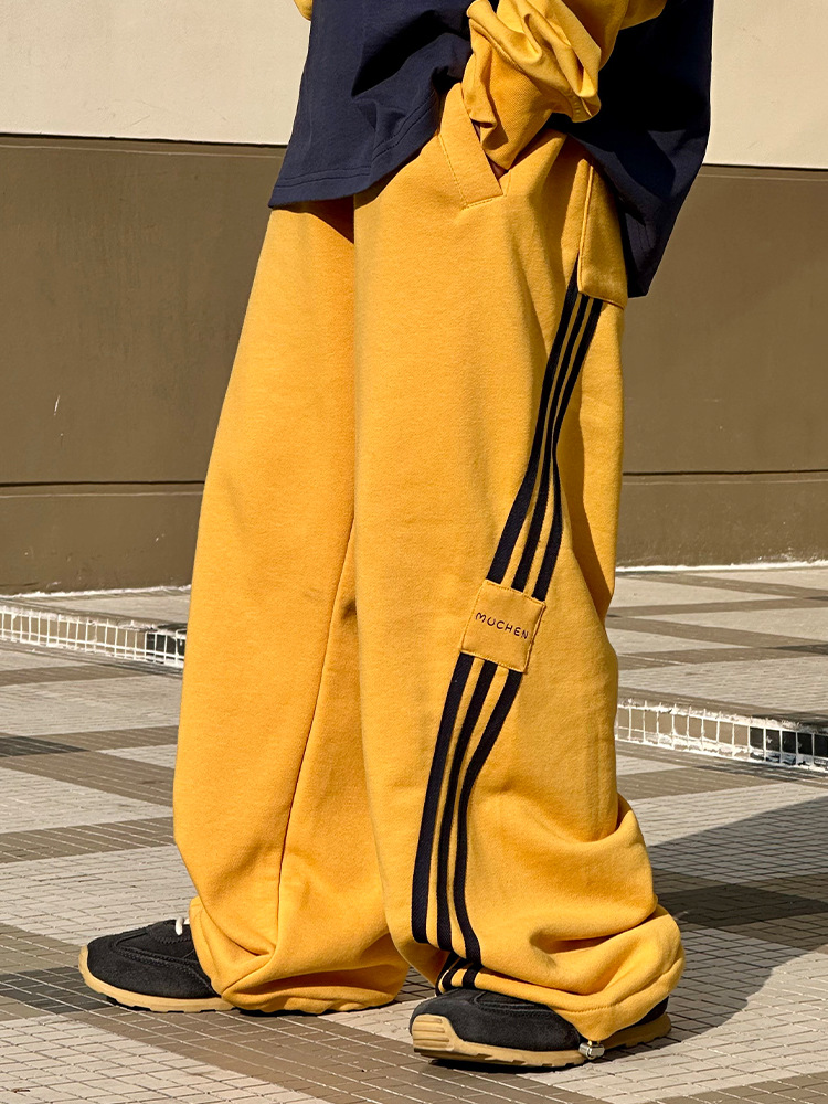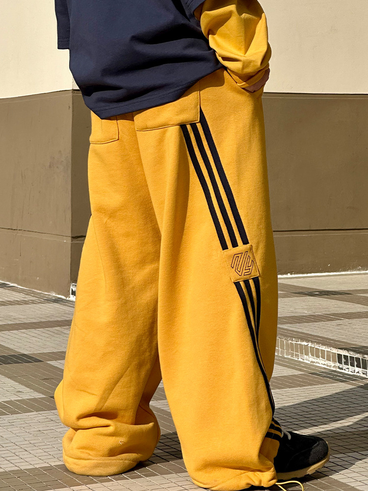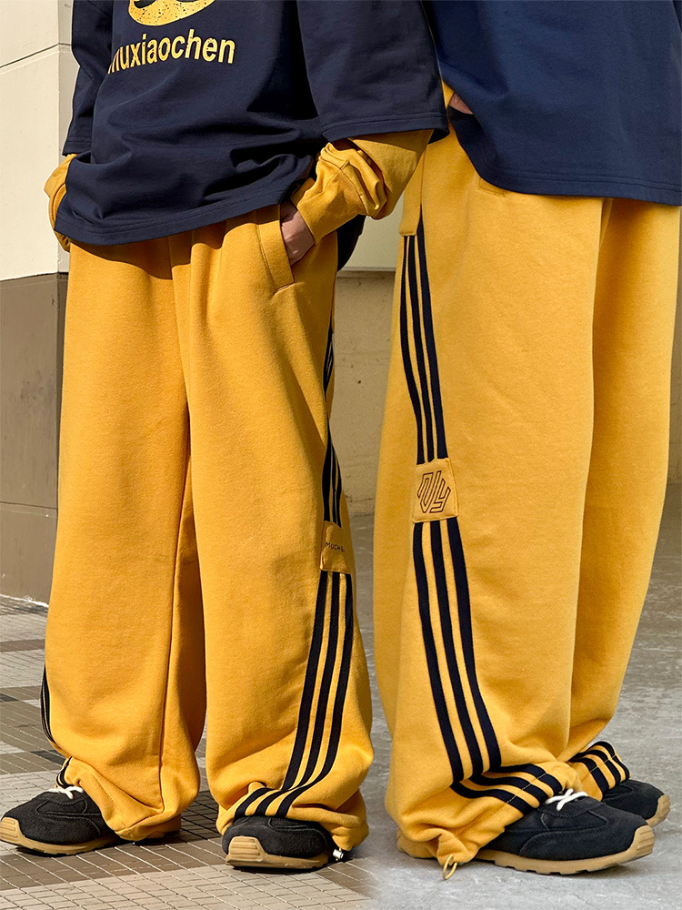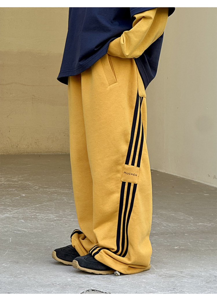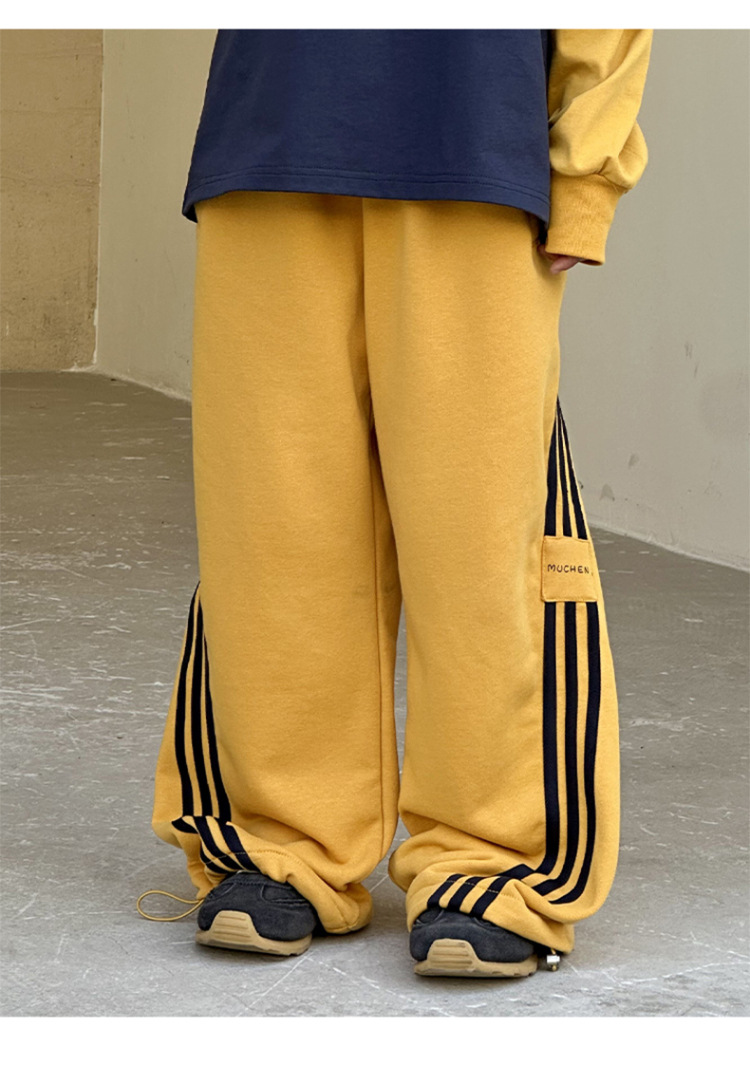 남학생 바지 2025 봄 새로운 어린이 미국식 Ragline 인쇄 스트레이트 레그 와이드 레그 바지