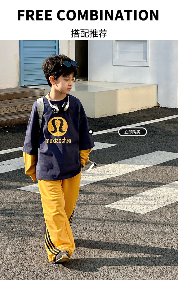 남학생 바지 2025 봄 새로운 어린이 미국식 Ragline 인쇄 스트레이트 레그 와이드 레그 바지스토어 가기