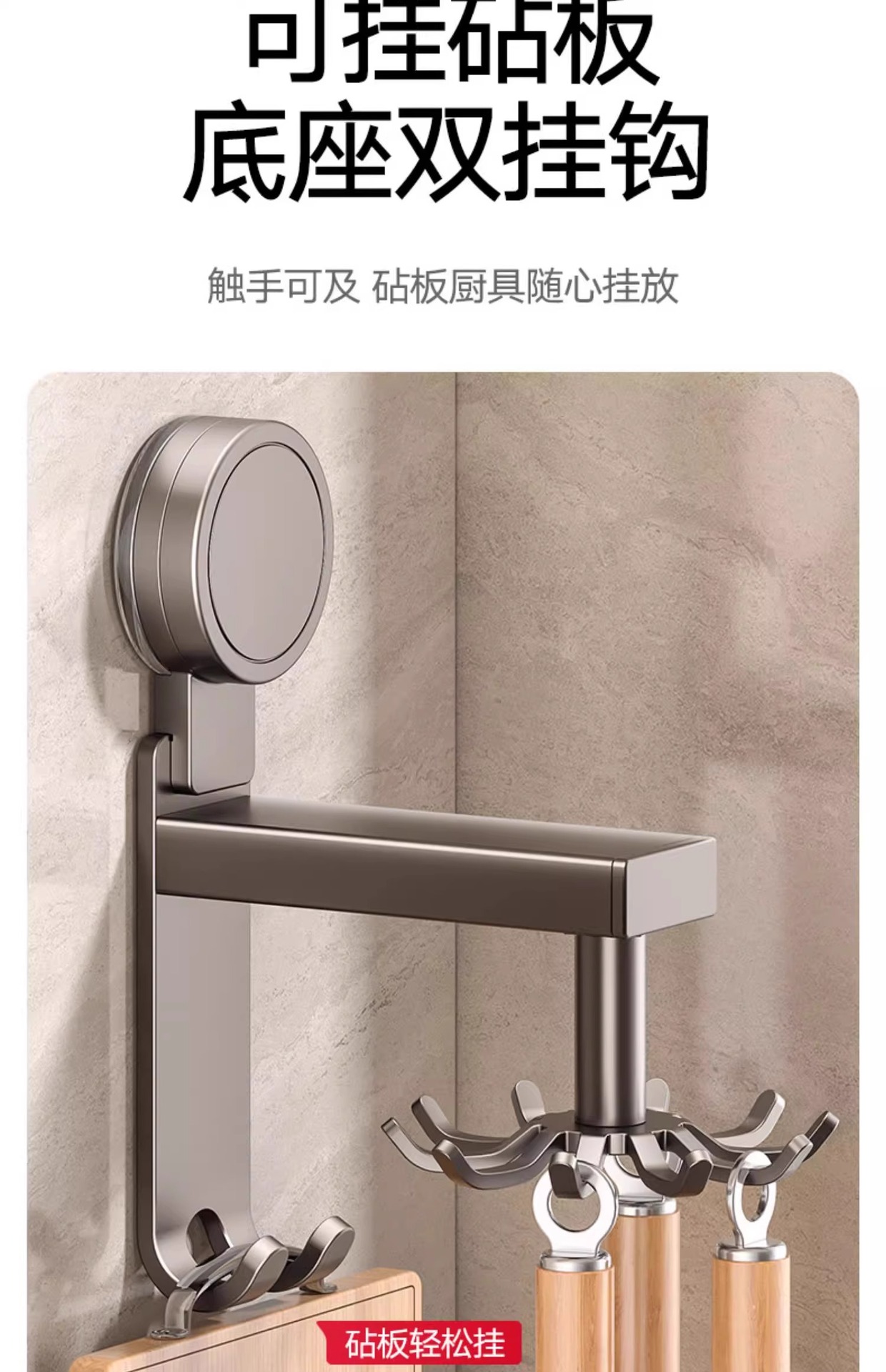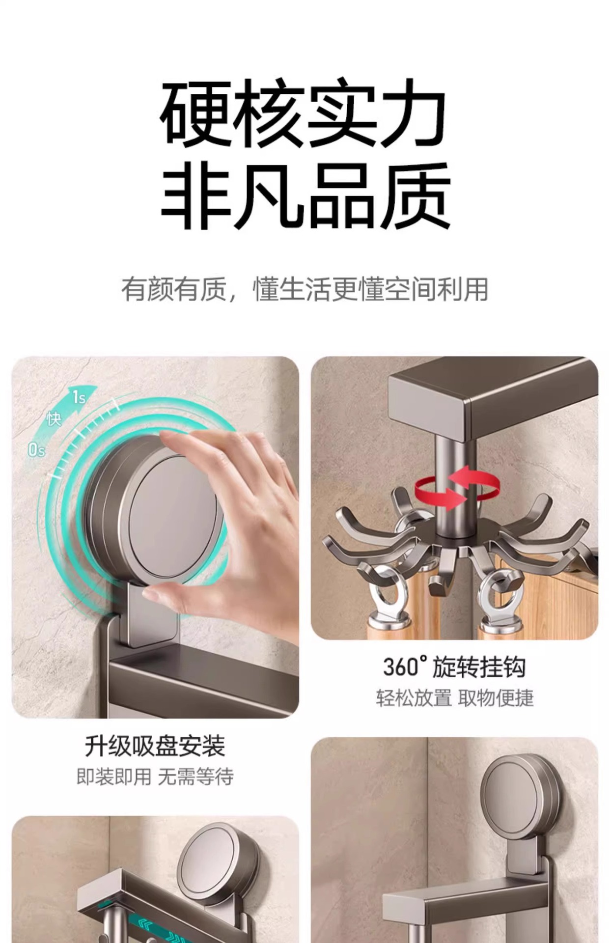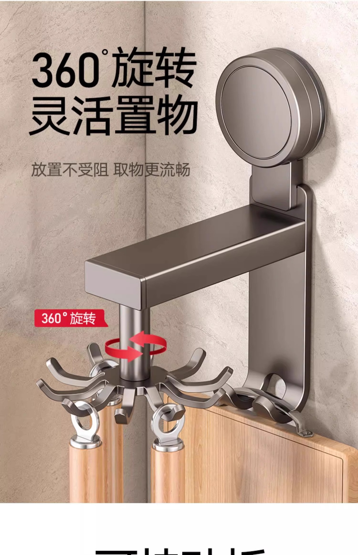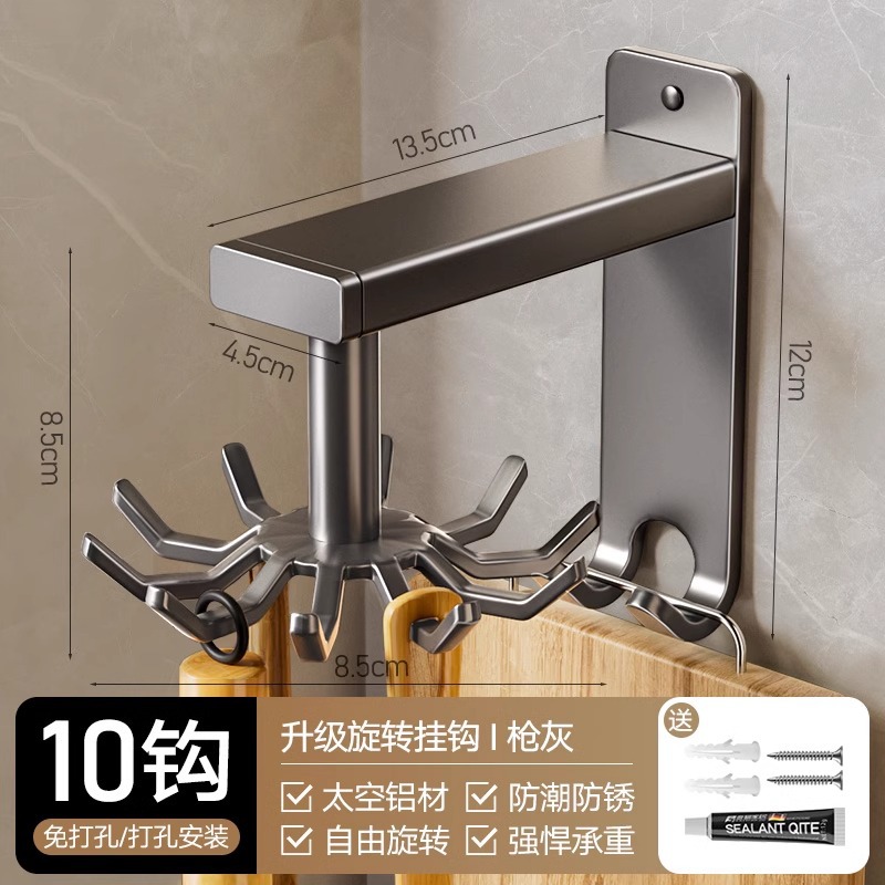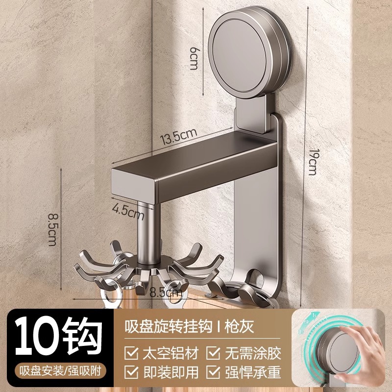 • 흡입 컵 유형 - 건 그레이 주방 회전 10 후크