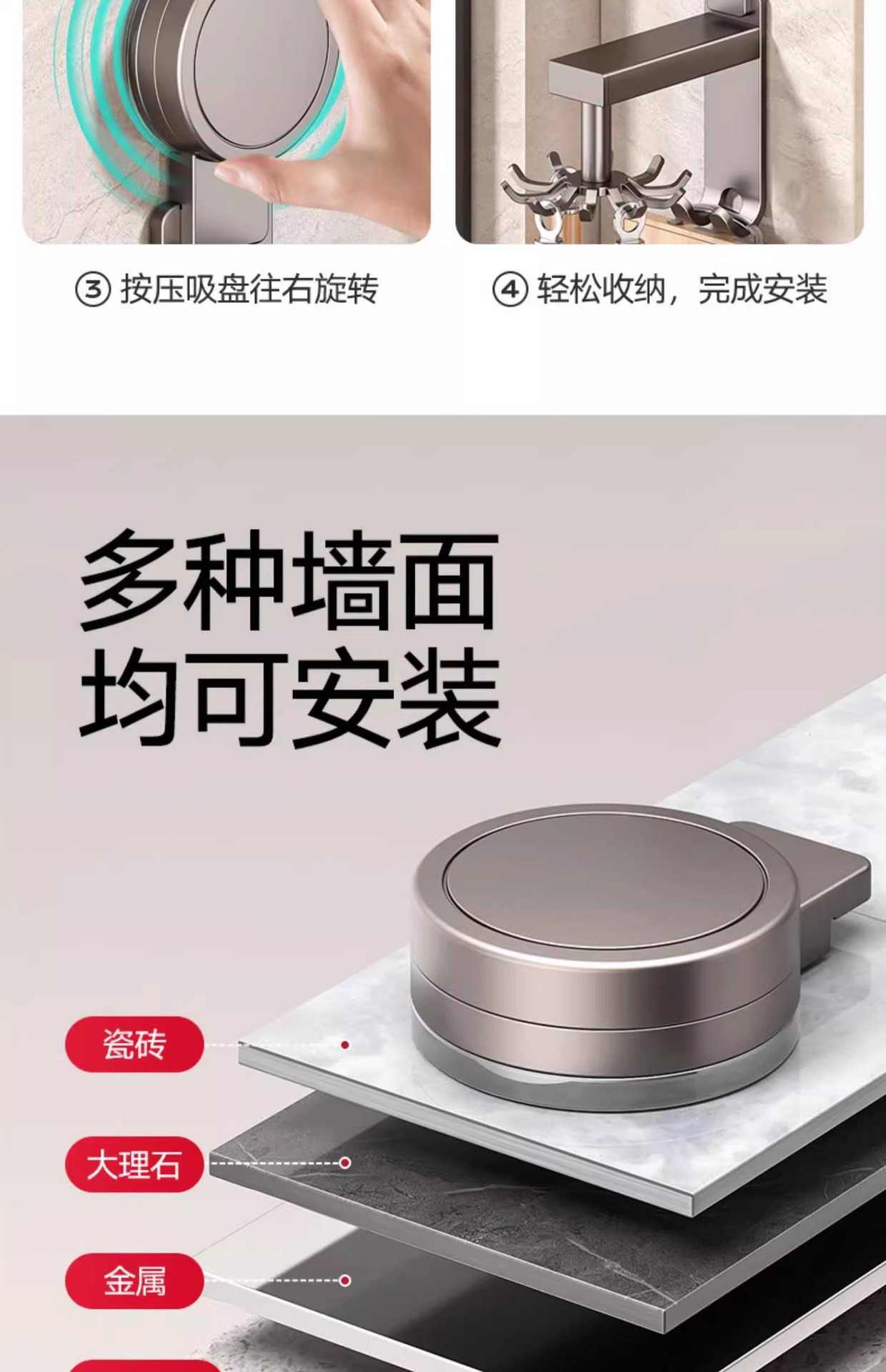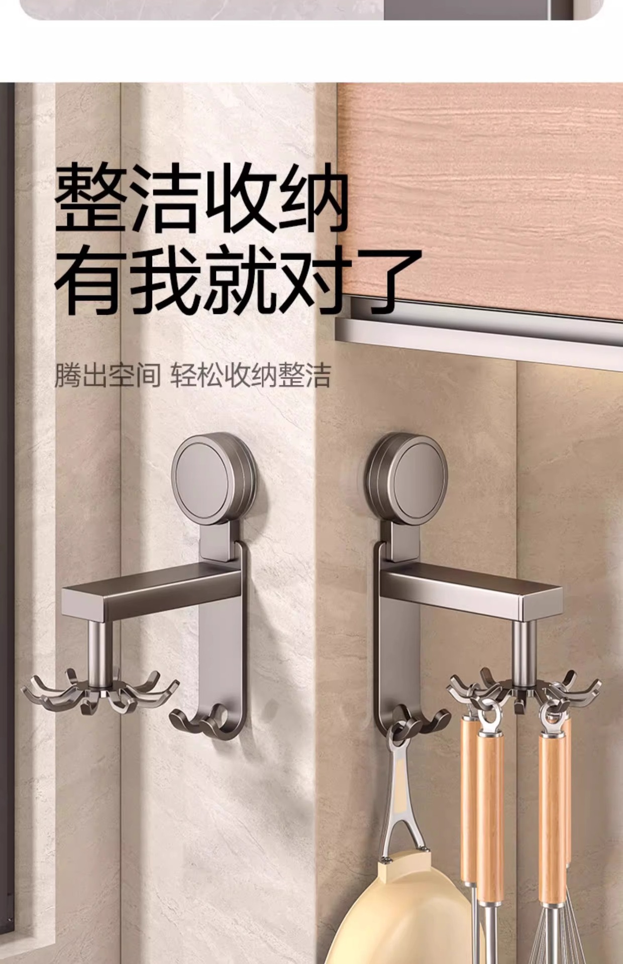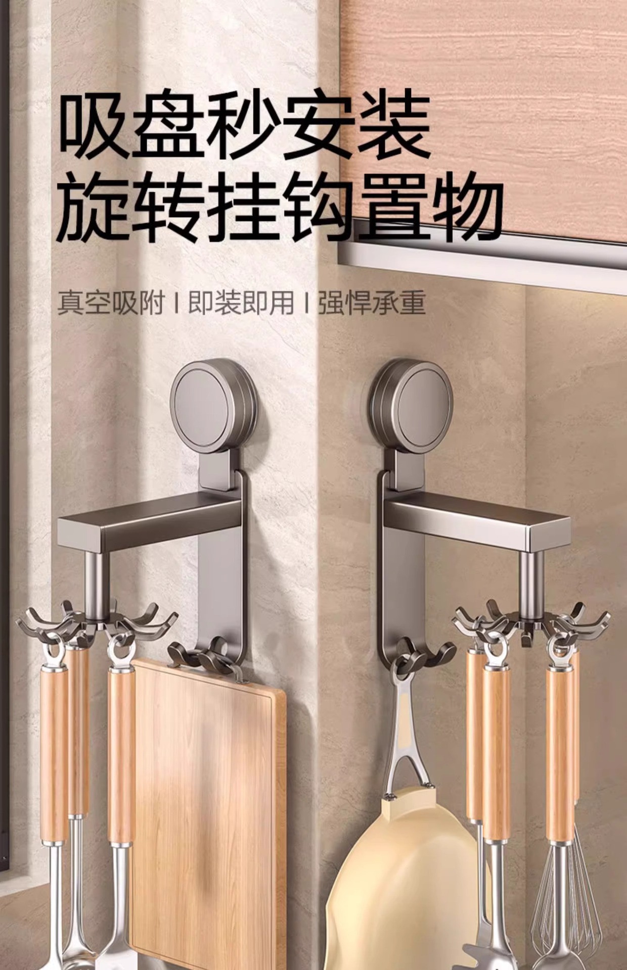 • 흡입 컵 유형 - 건 그레이 주방 회전 10 후크