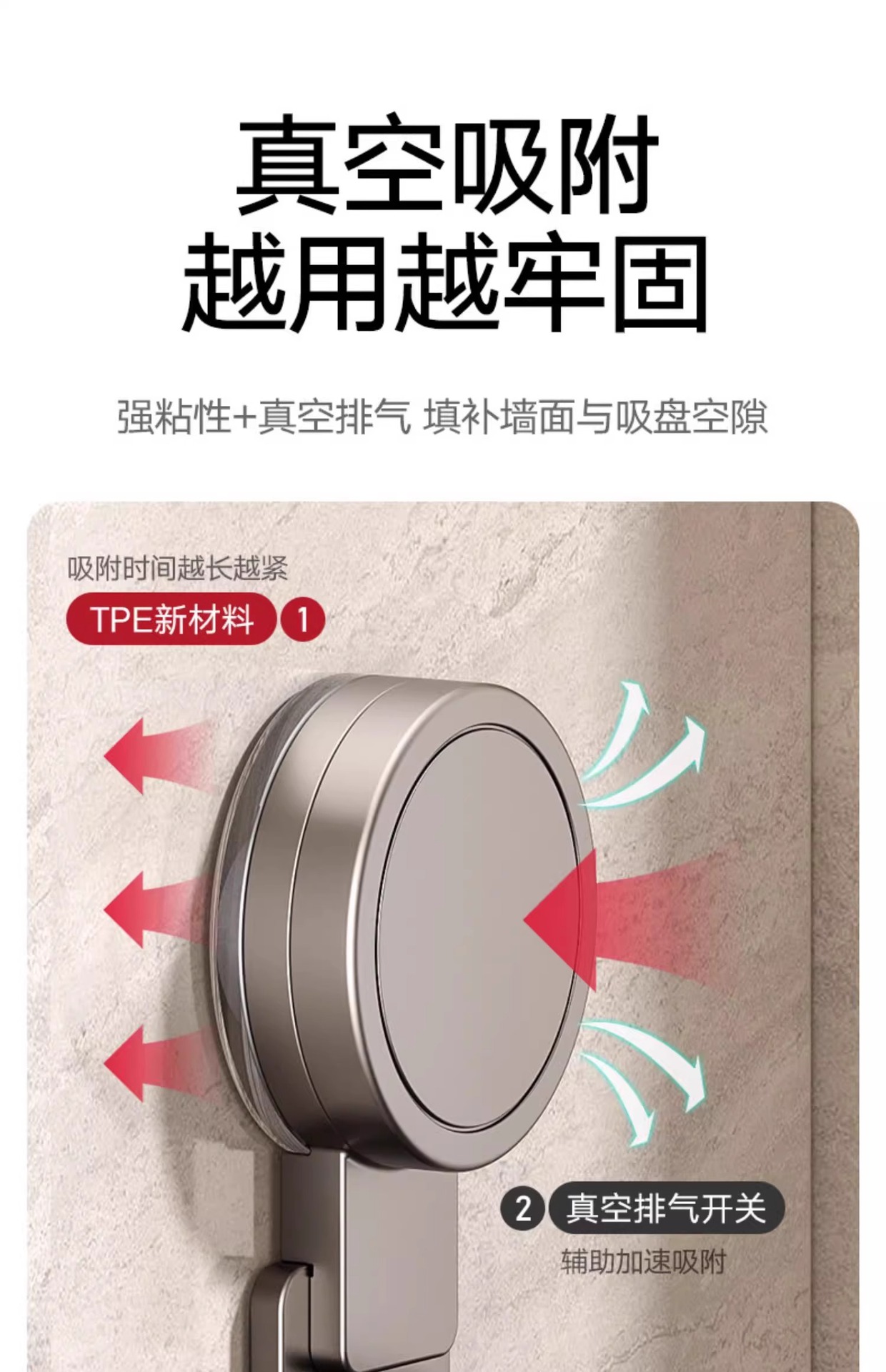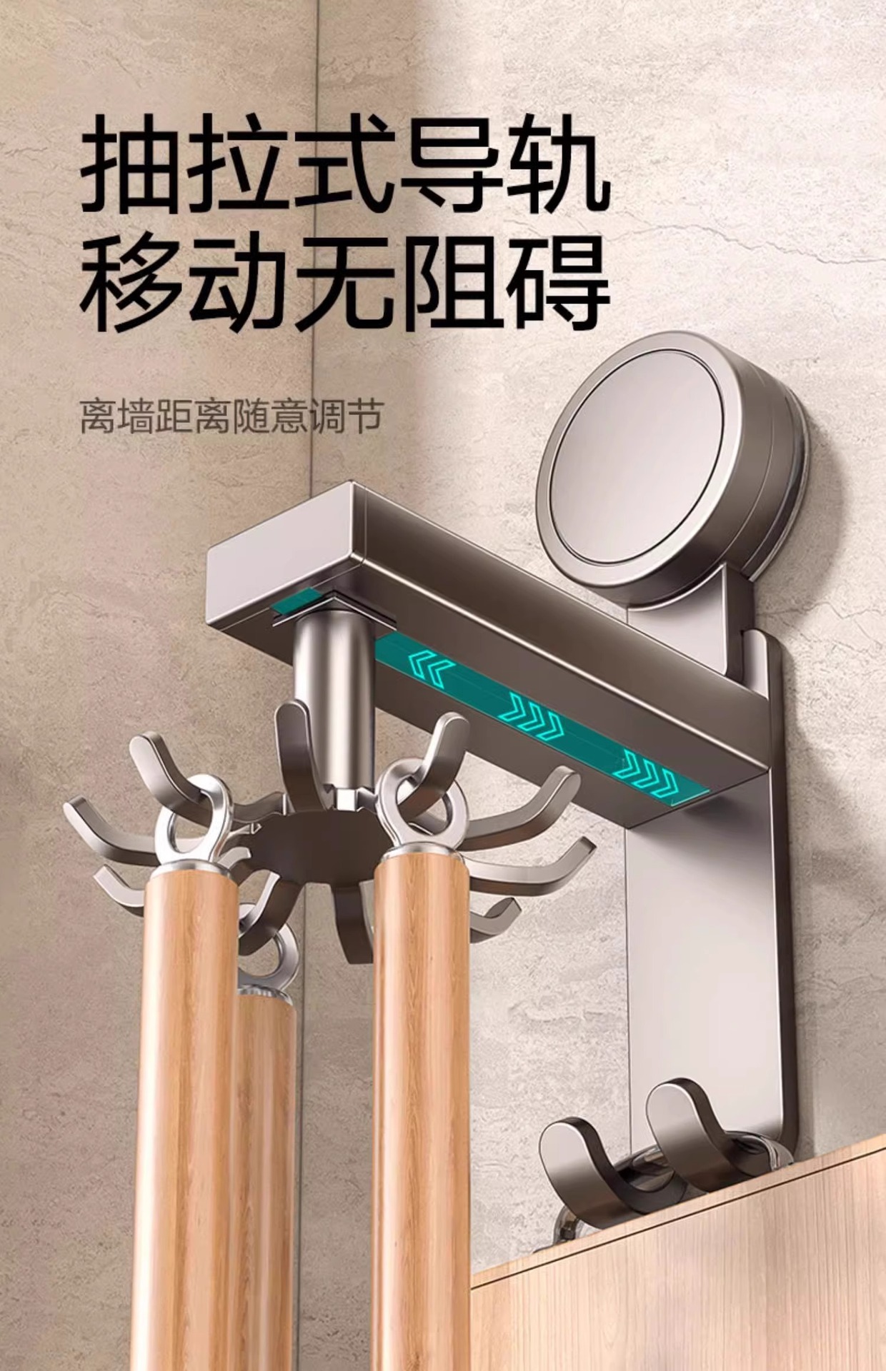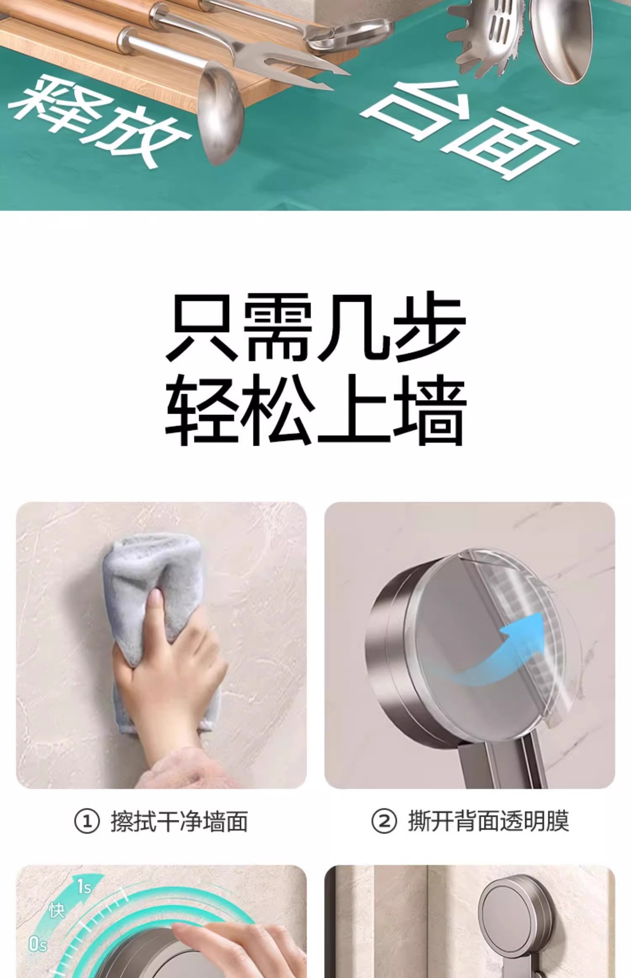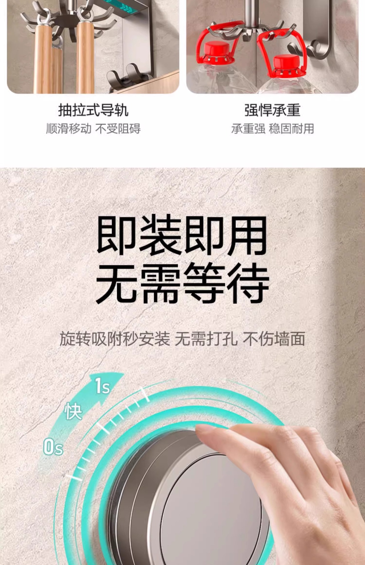 • 흡입 컵 유형 - 건 그레이 주방 회전 10 후크