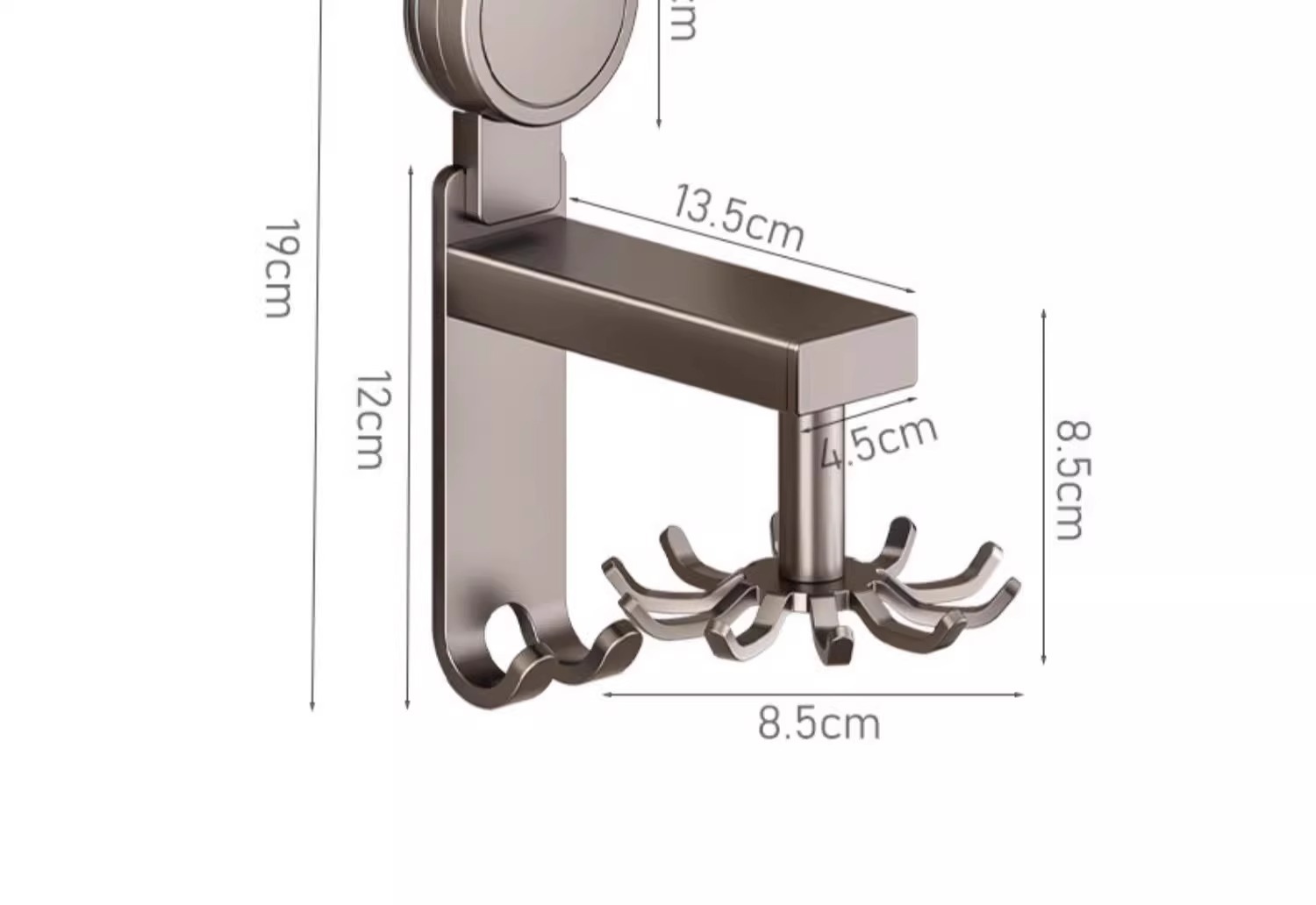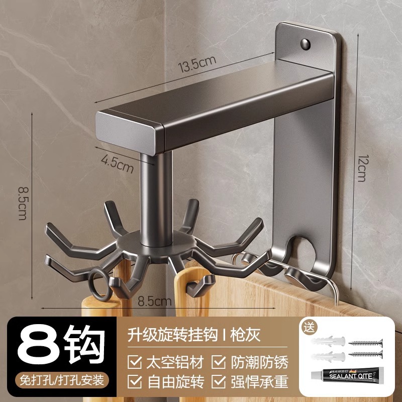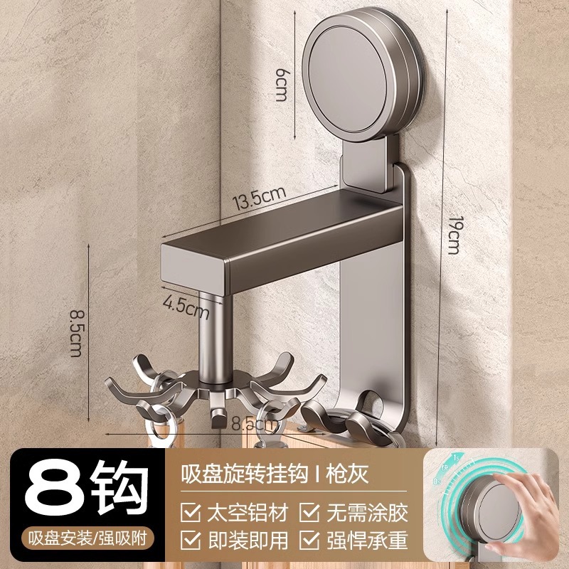 • 흡입 컵 유형 - 건 그레이 주방 회전 8 후크