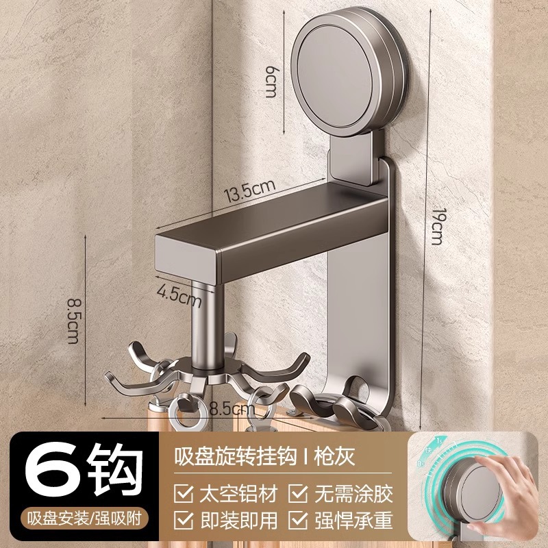 • 흡입 컵 유형 - 건 그레이 주방 회전 6 후크