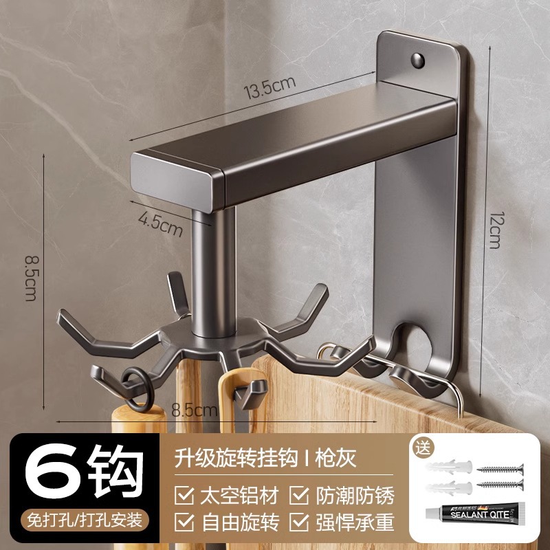 • 네일 프리 글루건 그레이 주방 회전 후크 6개