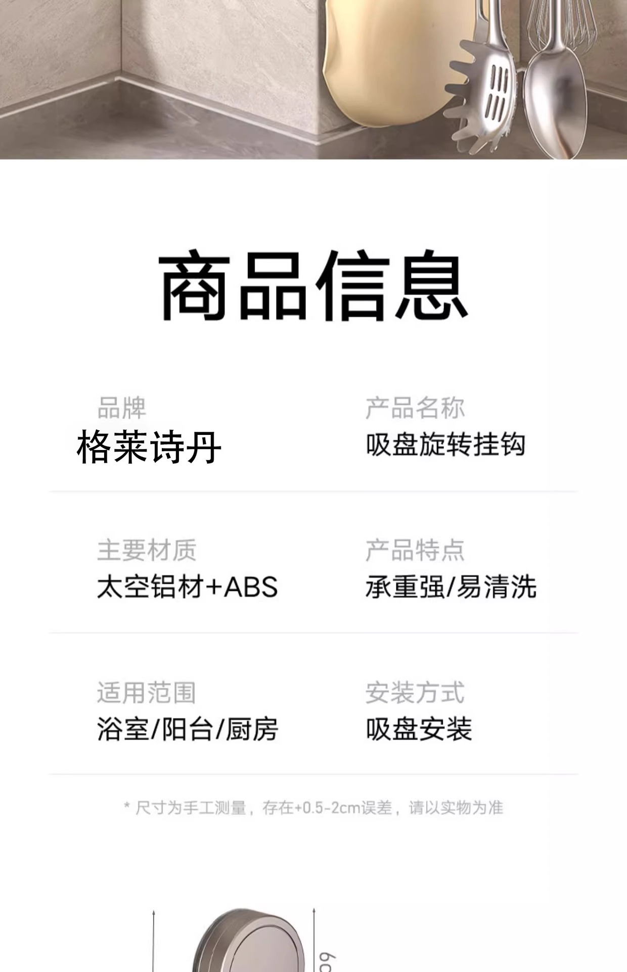 석션 컵 주방 로타리 후크 벽걸이 스토리지 랙 주방용품 스토리지 랙 스푼 펀치 프리 선반