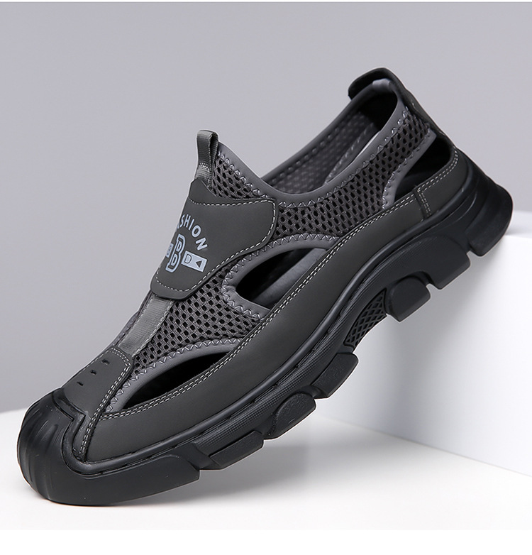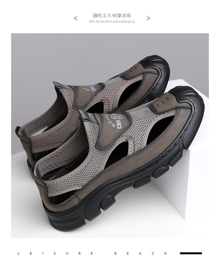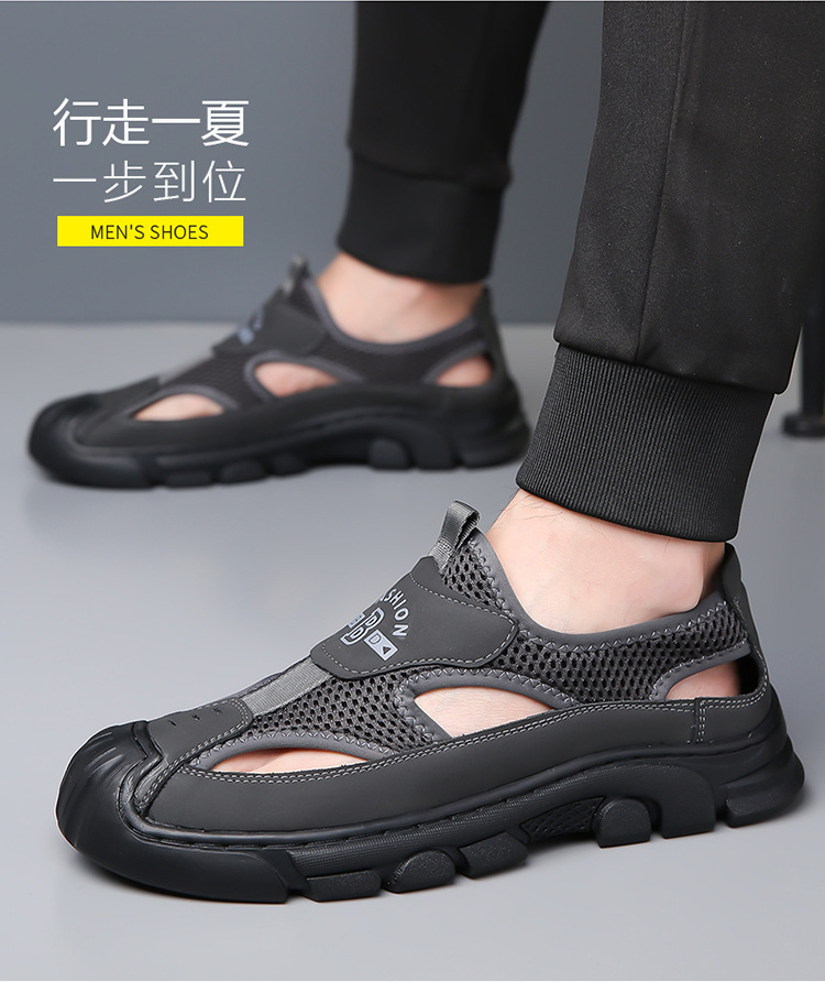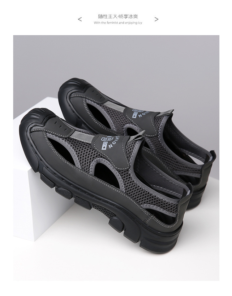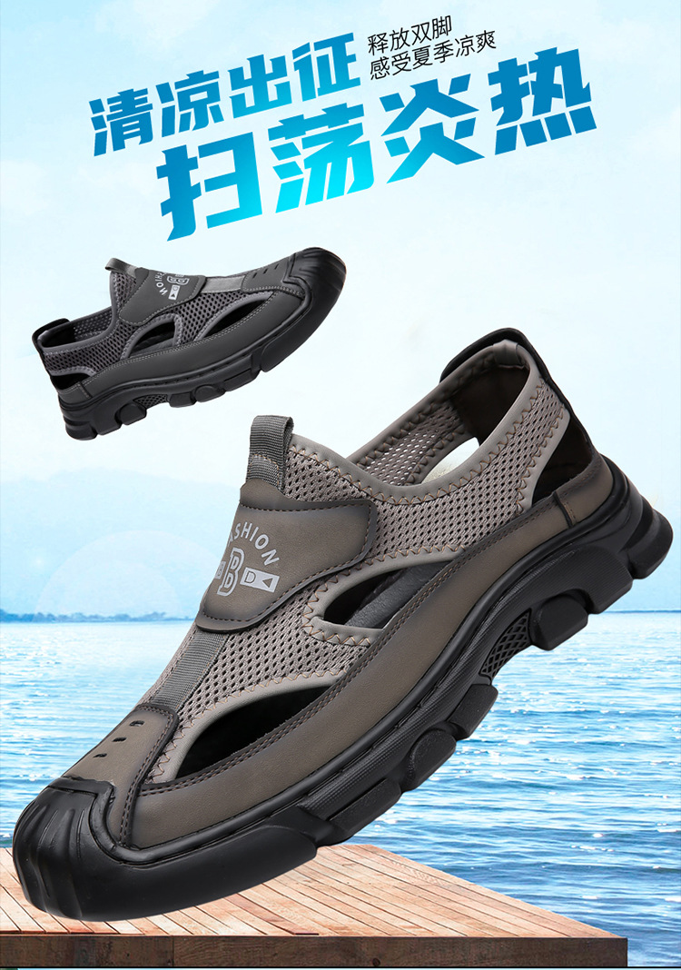 통기성 남성용 Baotou 샌들 중공 메쉬 홀 신발 야외 조명 스포츠 레저 비치 슈즈 헤어