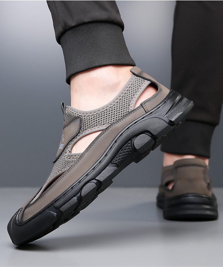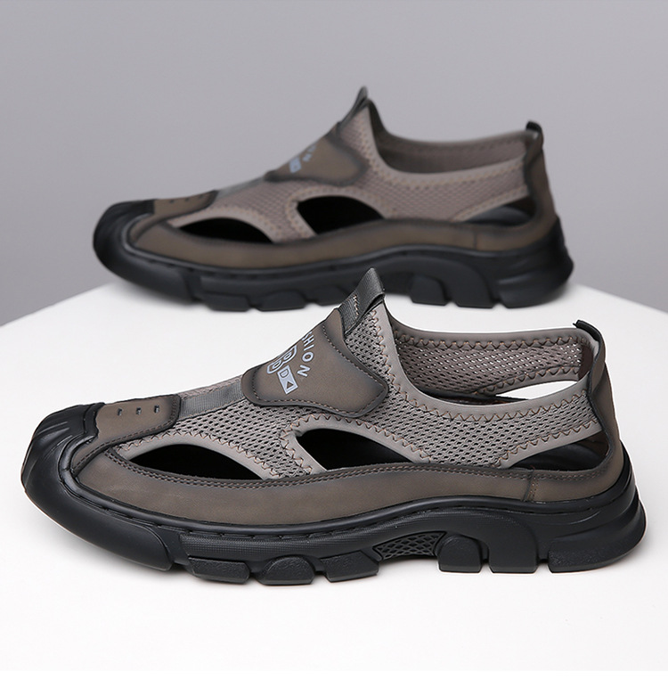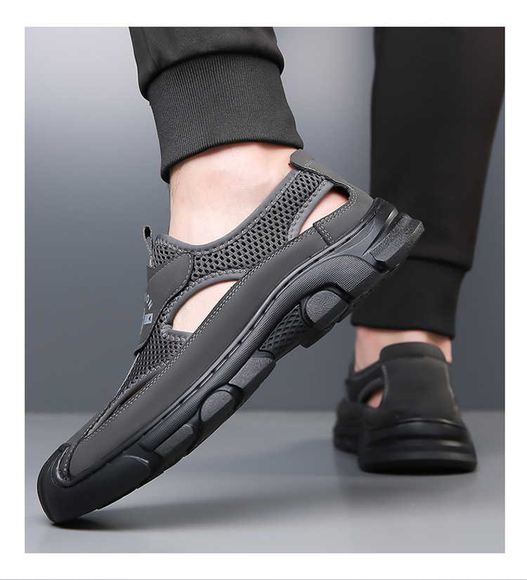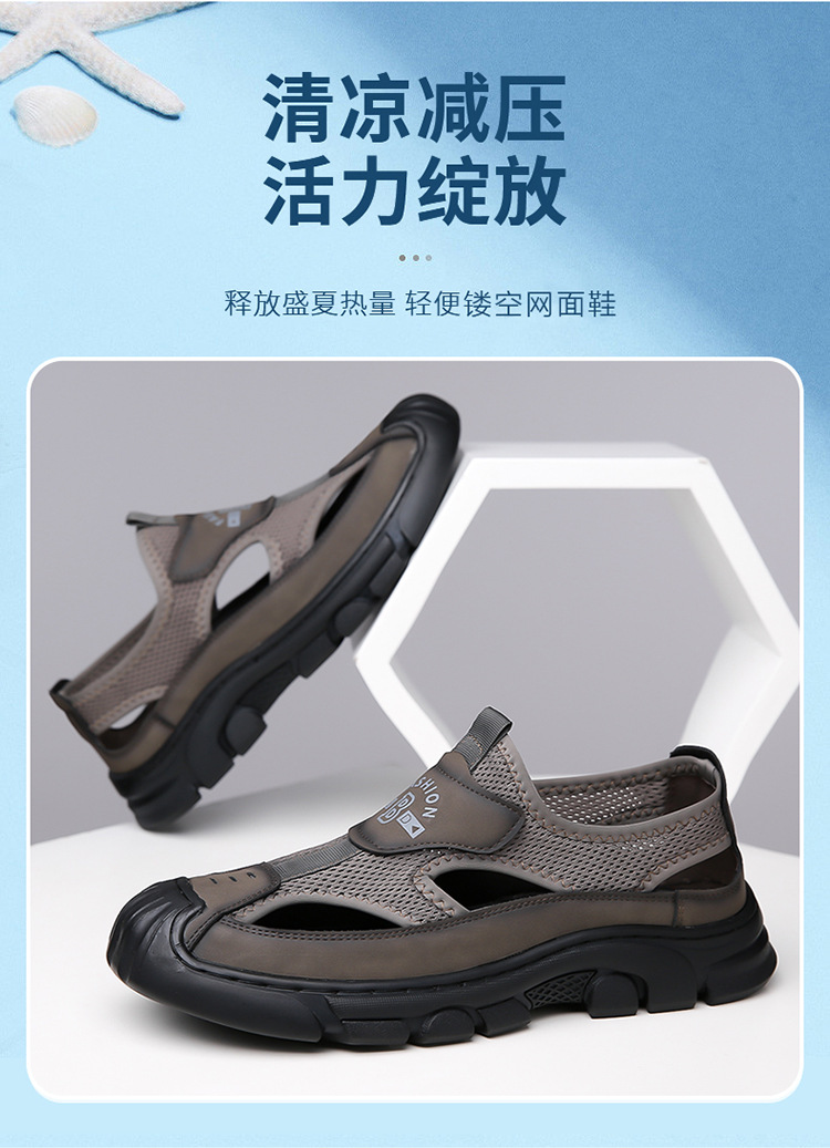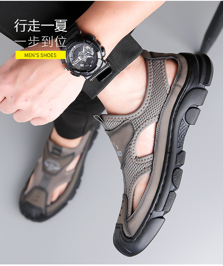 통기성 남성용 Baotou 샌들 중공 메쉬 홀 신발 야외 조명 스포츠 레저 비치 슈즈 헤어
