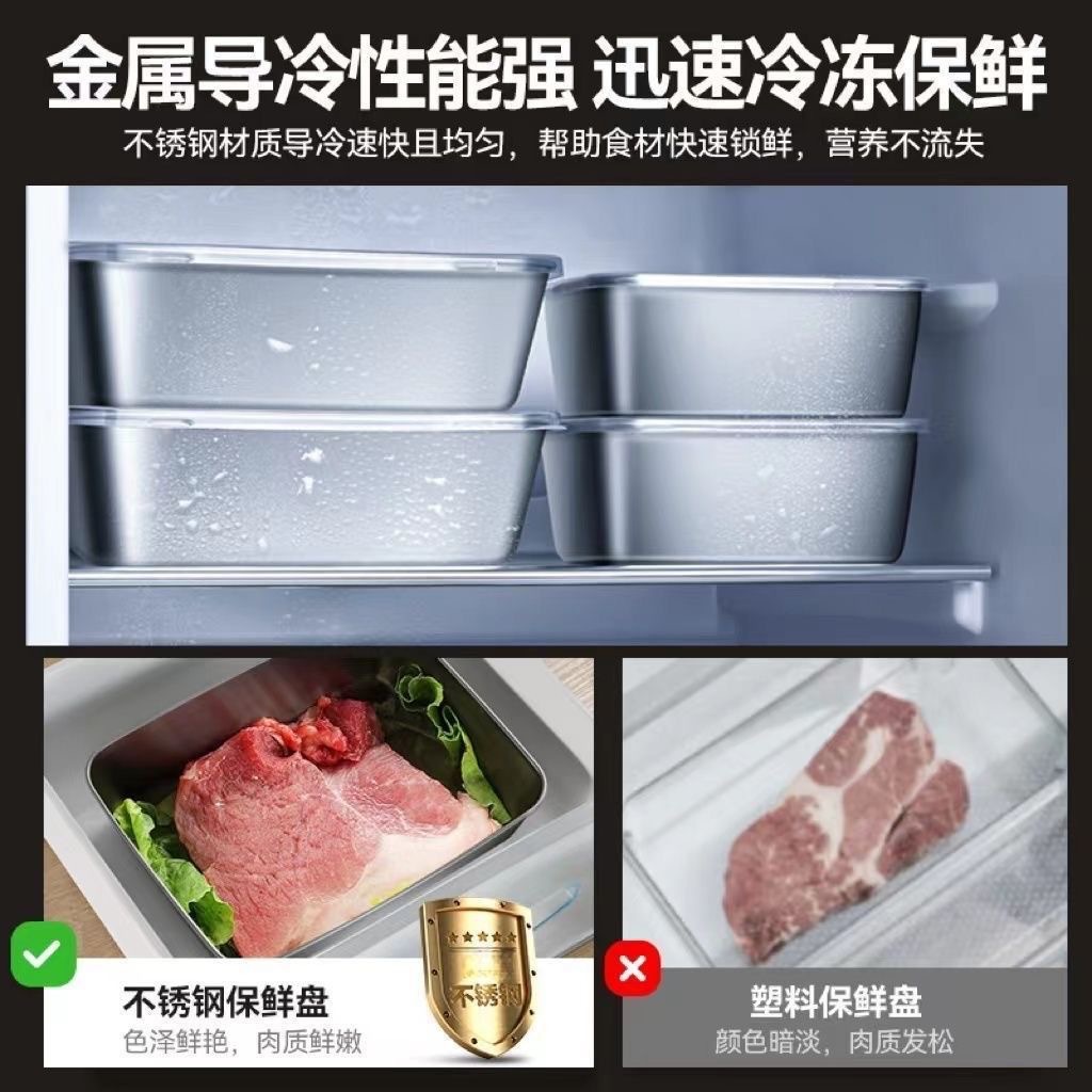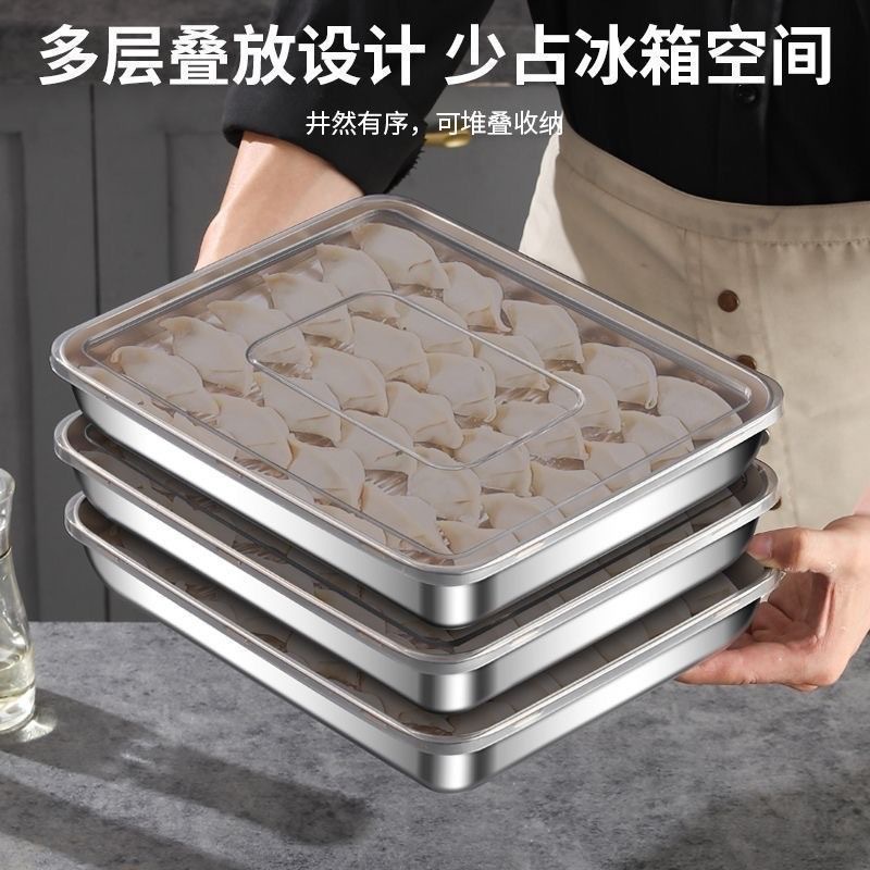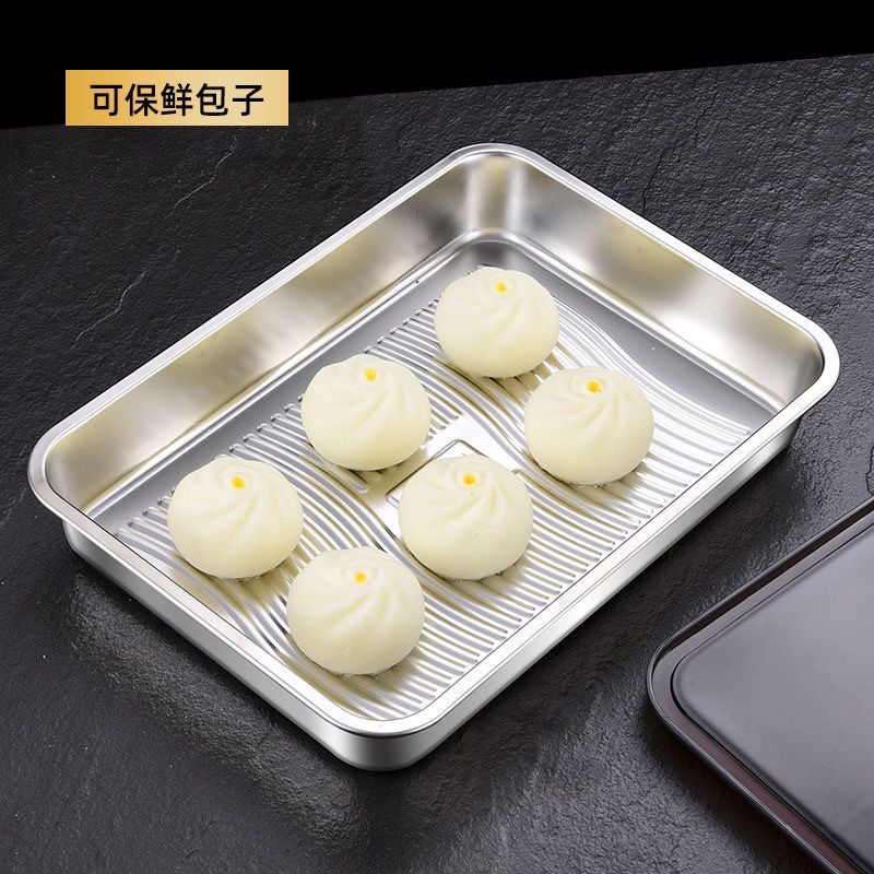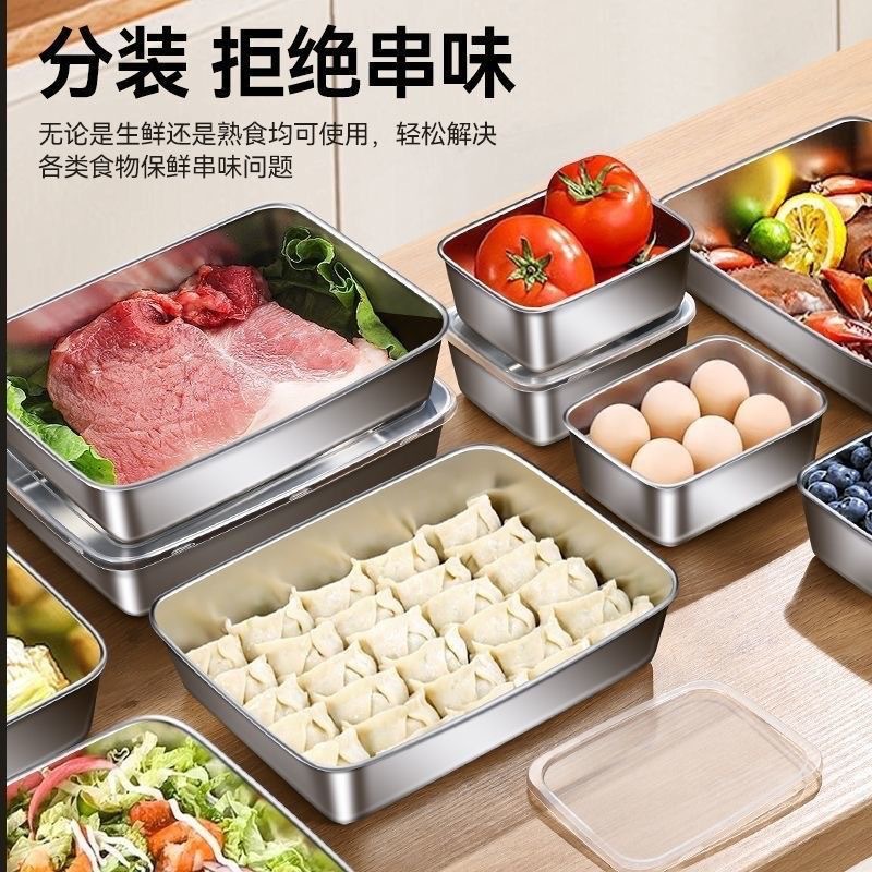 316L 스테인레스 스틸 신선한 보관 상자 사각형 접시 냉장고 보관 상자 뚜껑 만두 접시 구운 생선 직사각형 냉동 바베큐
