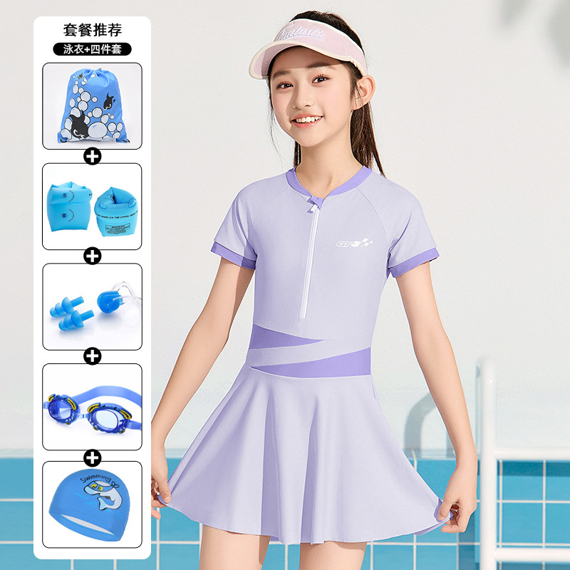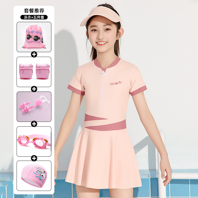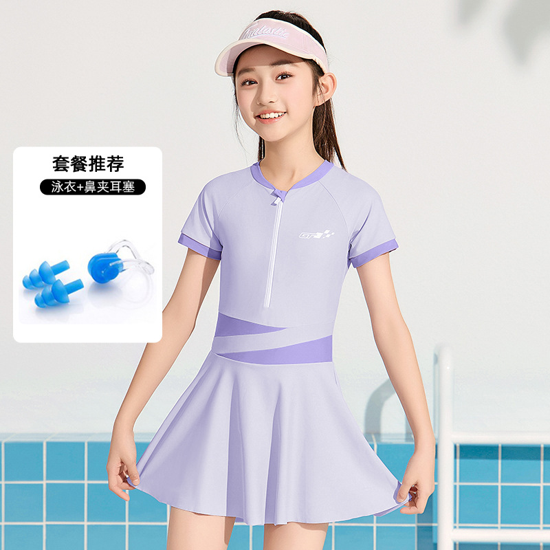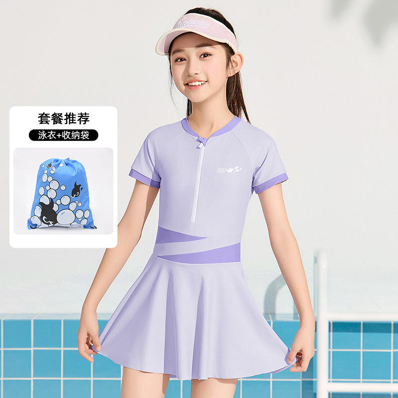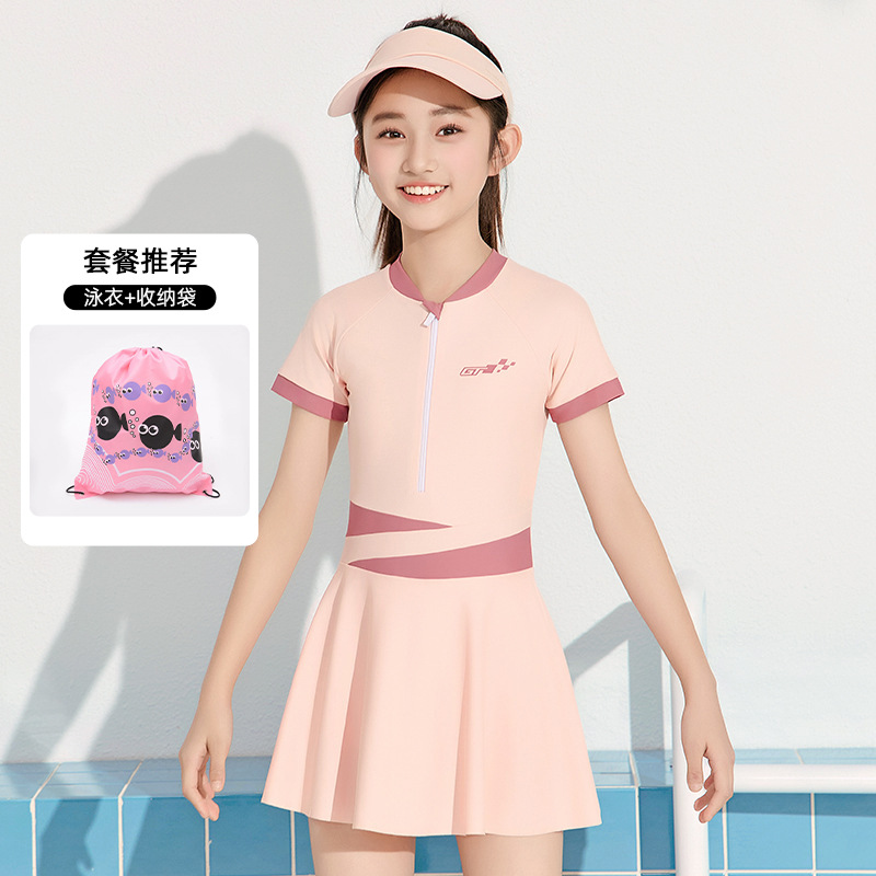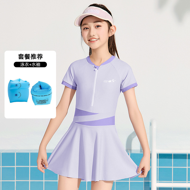 어린이 수영복 소녀 2025 신형 중학생 보수 전문 태양 보호 빠른 건조 수영복 큰 아이 여자 수영복스토어 가기