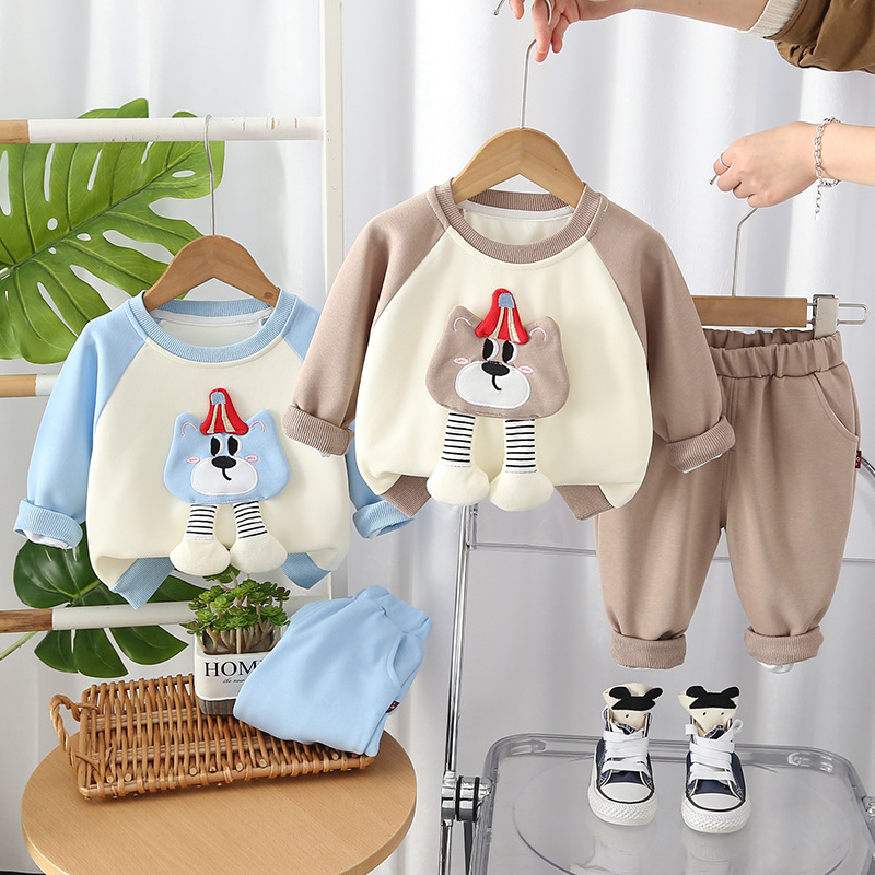 소년 소녀를위한 봄 새로운 한국 아동복 만화 곰 유아 긴팔 어린이 세트 투피스 아동복스토어 가기