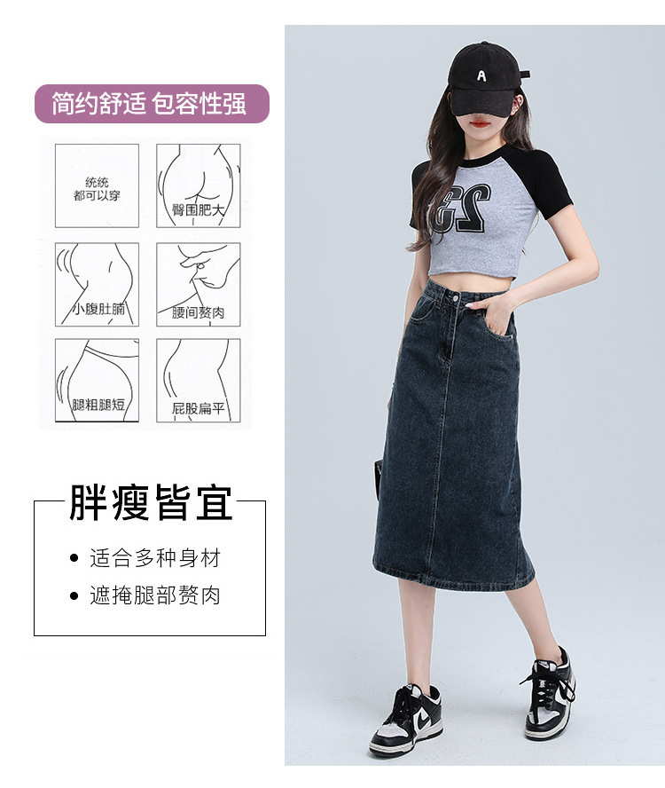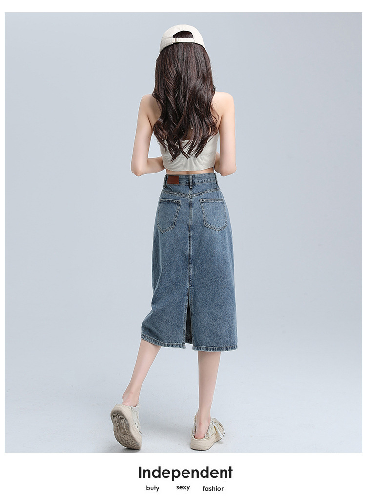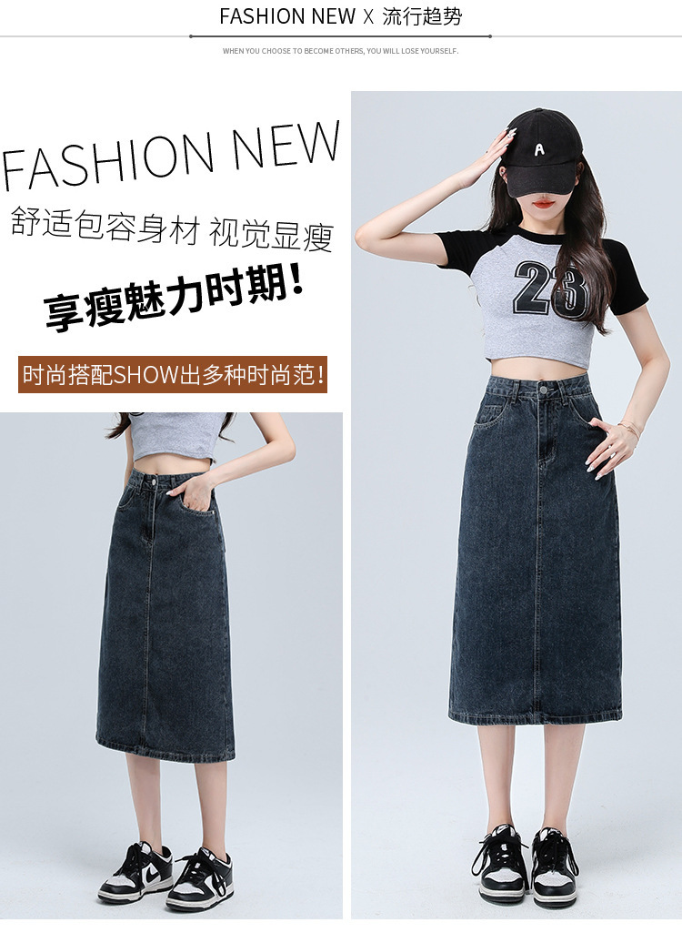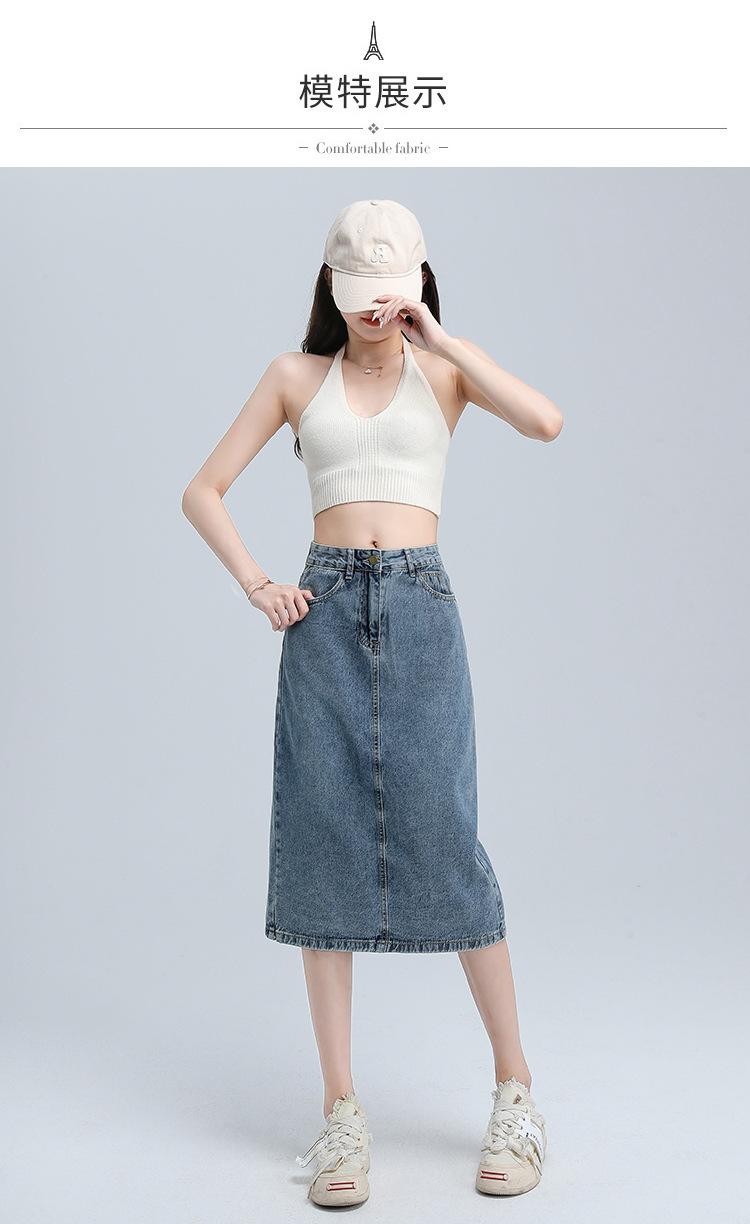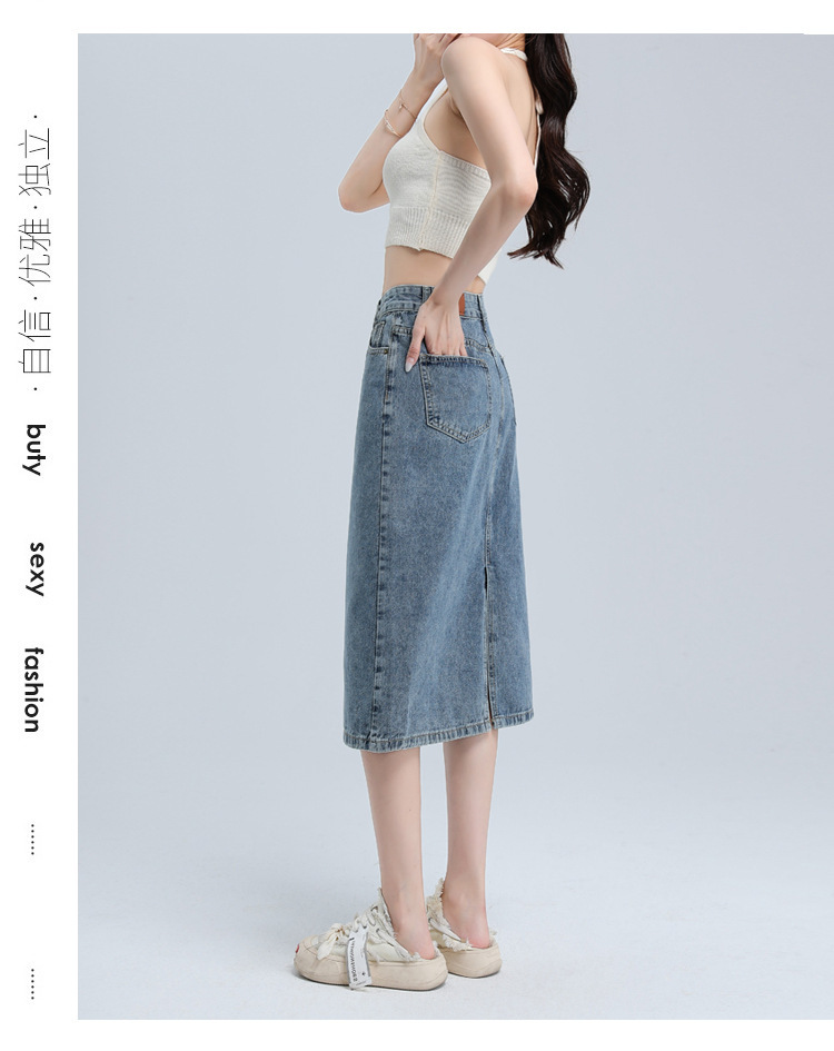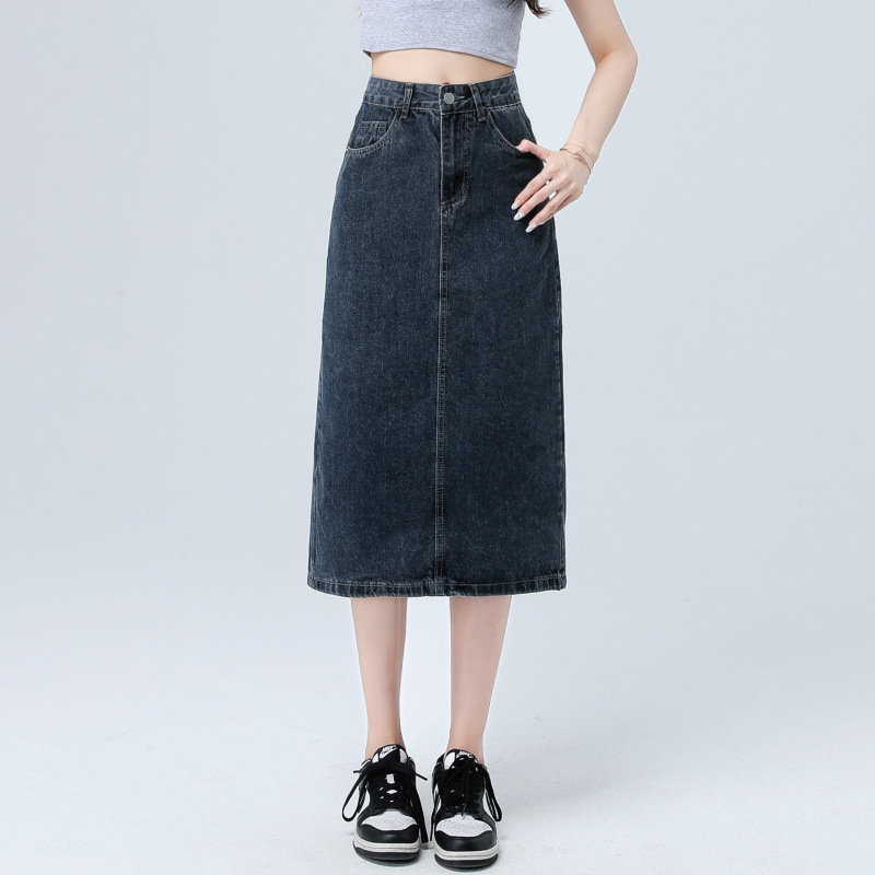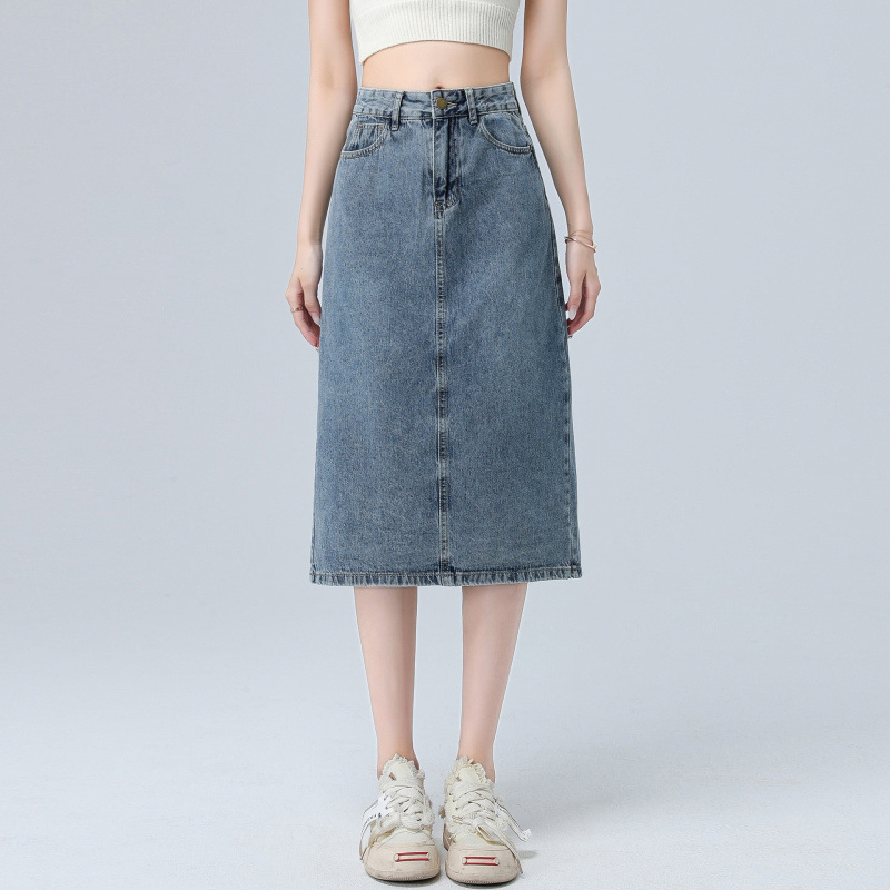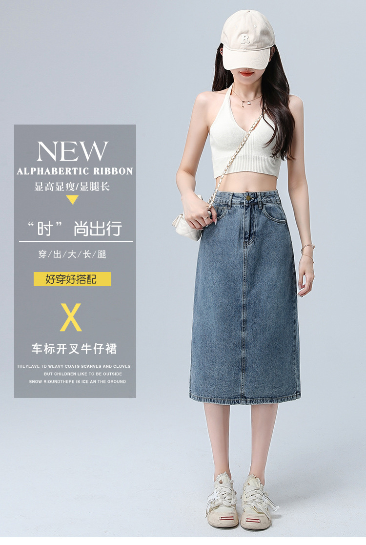 후면 분할 데님 스커트 여성 작은 여름 원피스 고층 롱 A 라인 힙합 스커트 145xxs스토어 가기