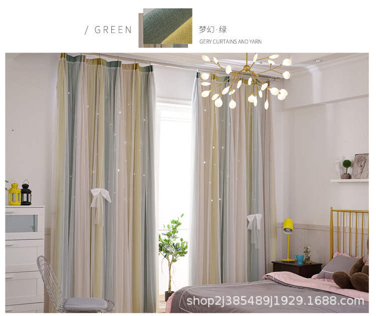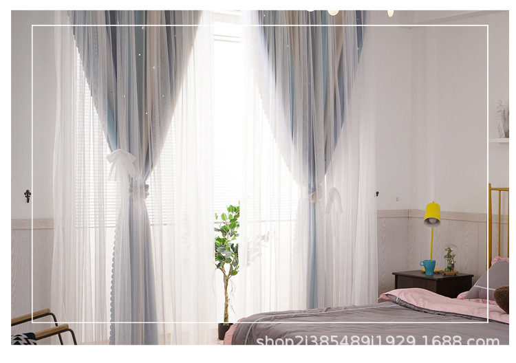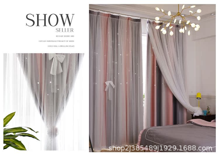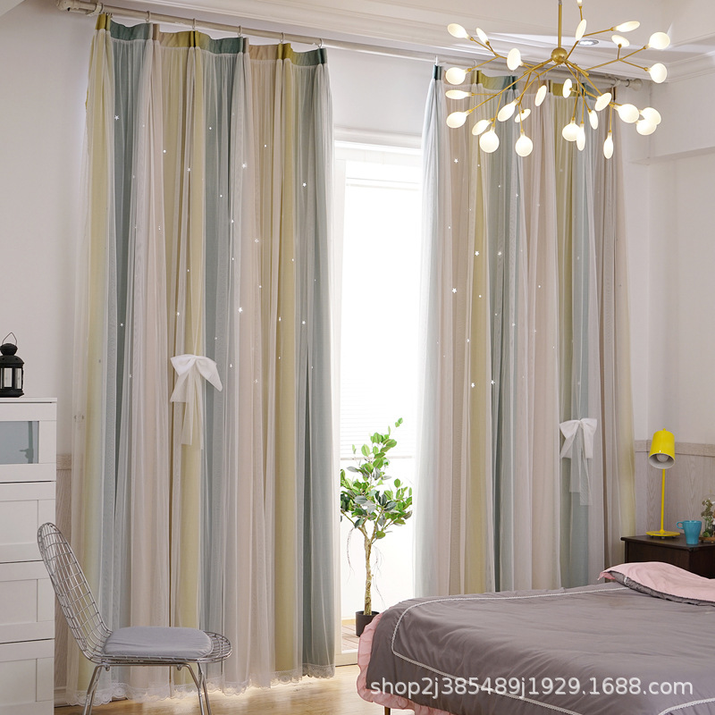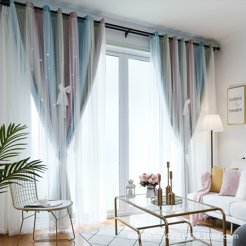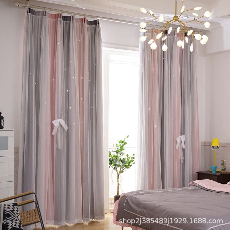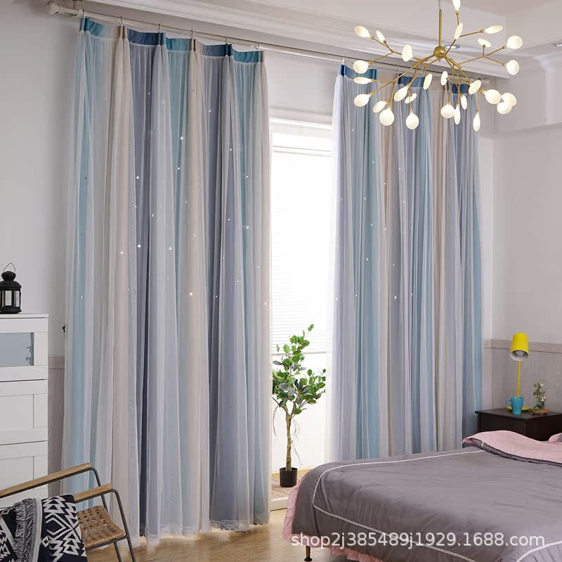 새로운 더블 레이어 그라디언트 창 화면 통합 커튼 공주 바람 침실 베이 창 어린이 방 음영 침실 장식스토어 가기