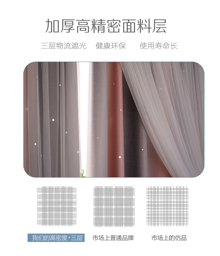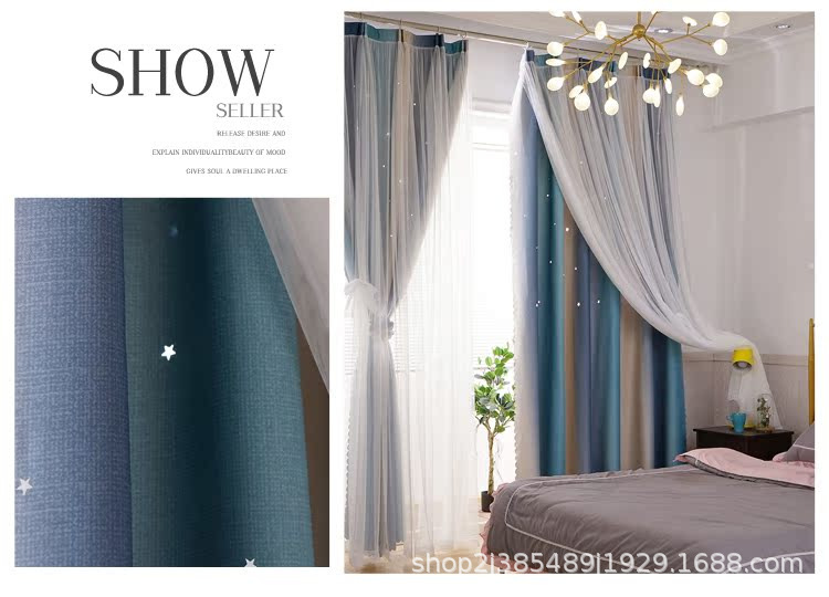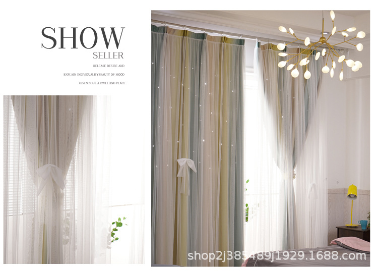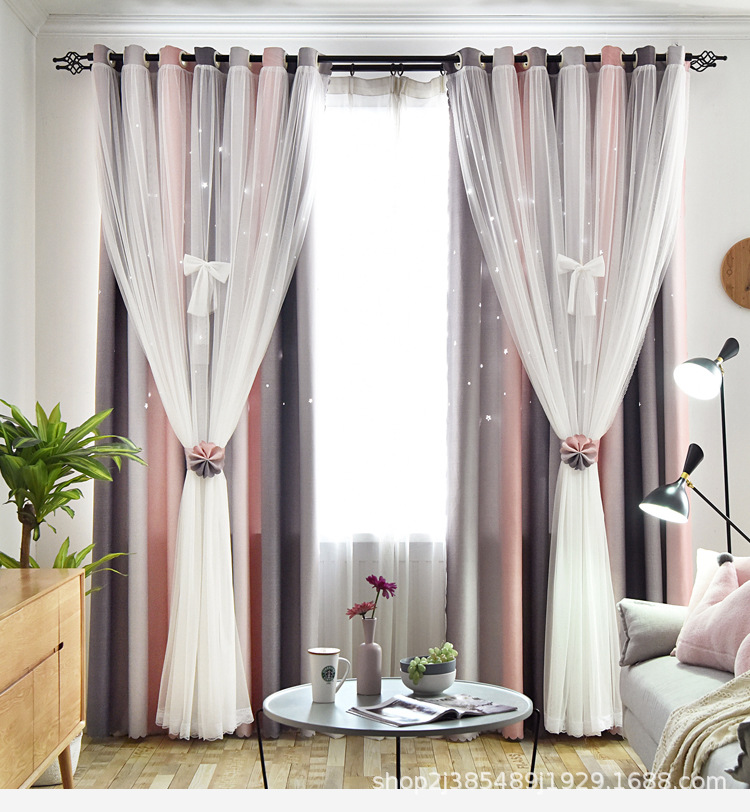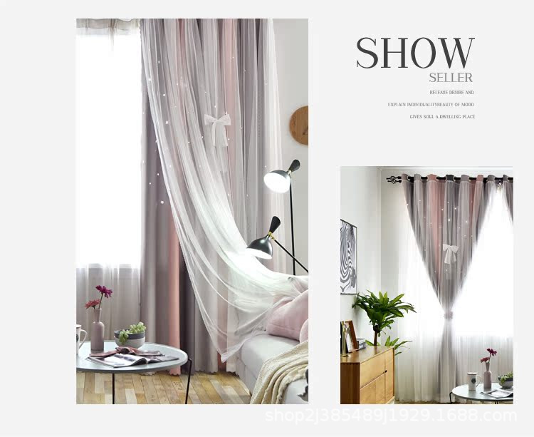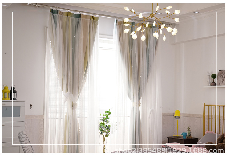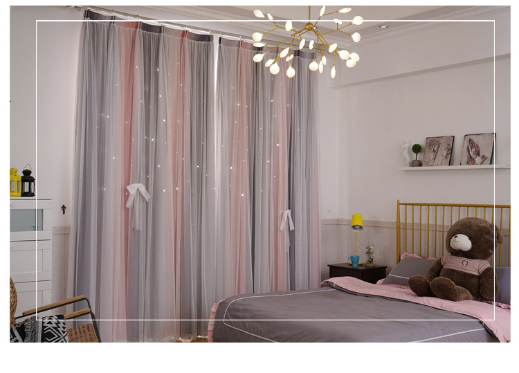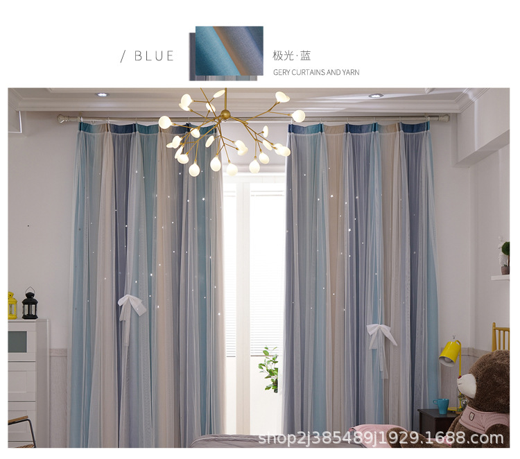 새로운 더블 레이어 그라디언트 창 화면 통합 커튼 공주 바람 침실 베이 창 어린이 방 음영 침실 장식스토어 가기