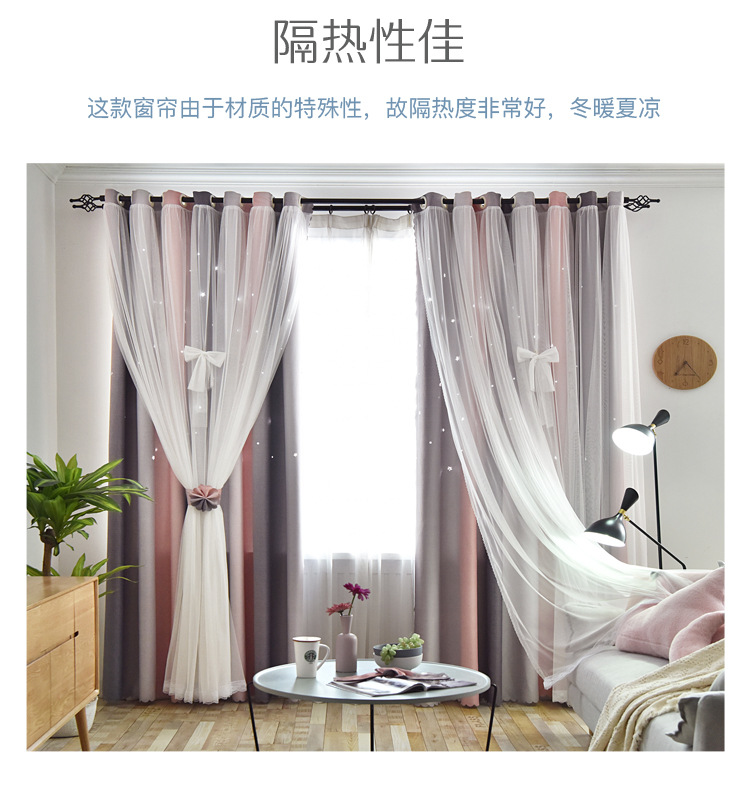 새로운 더블 레이어 그라디언트 창 화면 통합 커튼 공주 바람 침실 베이 창 어린이 방 음영 침실 장식
