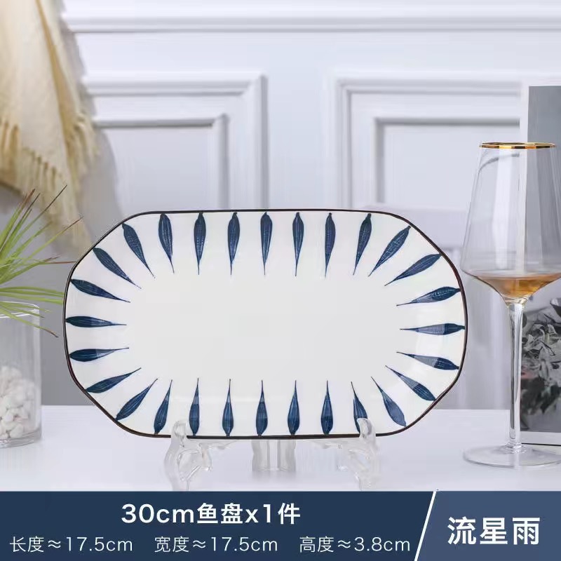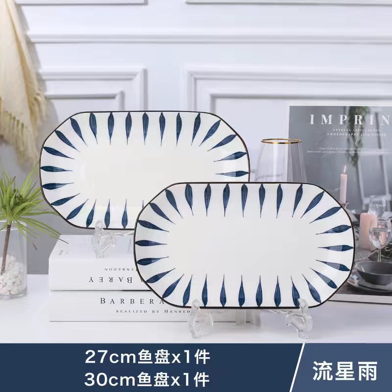 • 파란색과 흰색 블루 리듬 30CM 생선 접시 1 팩♢♢
