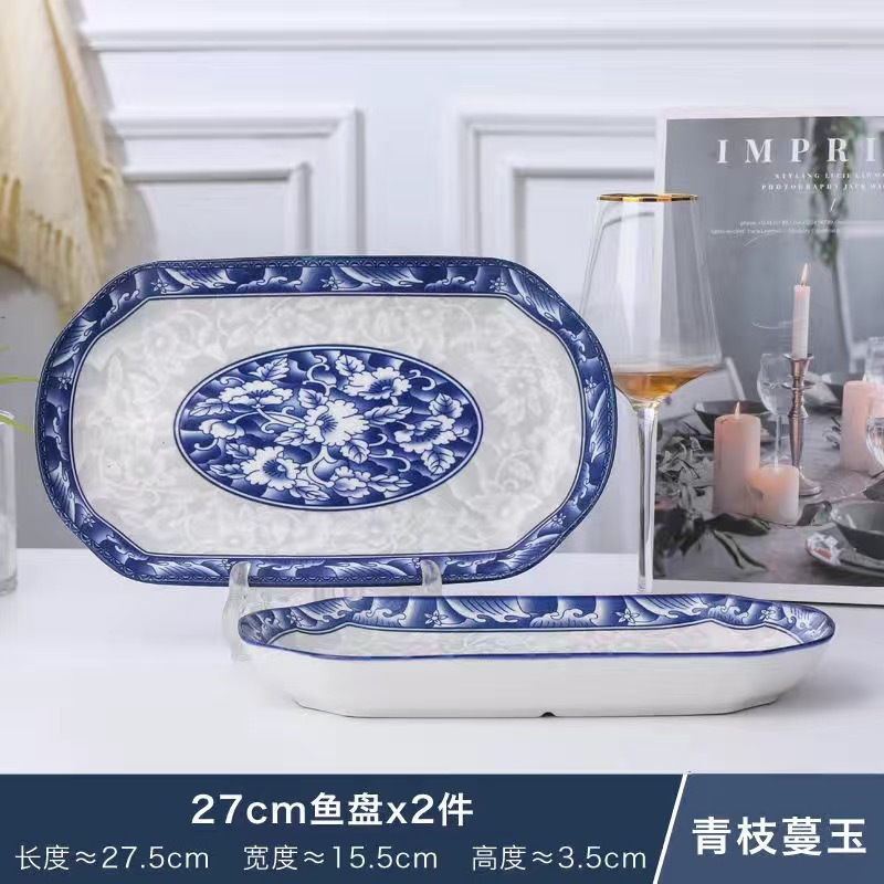 2 세라믹 어판 가정용 새로운 중국 슈퍼 큰 직사각형 접시 창조적 인 찐 물고기스토어 가기
