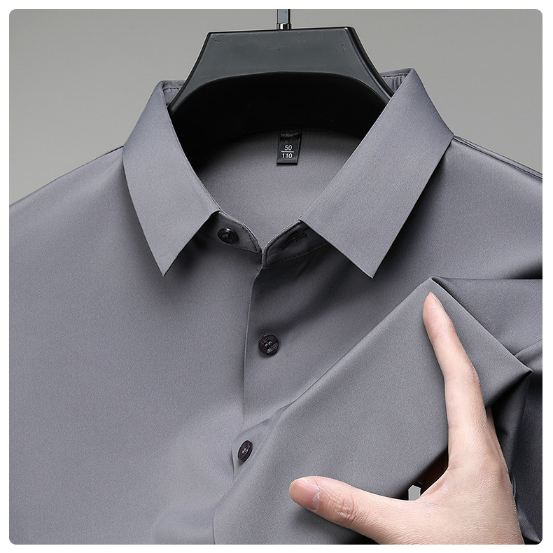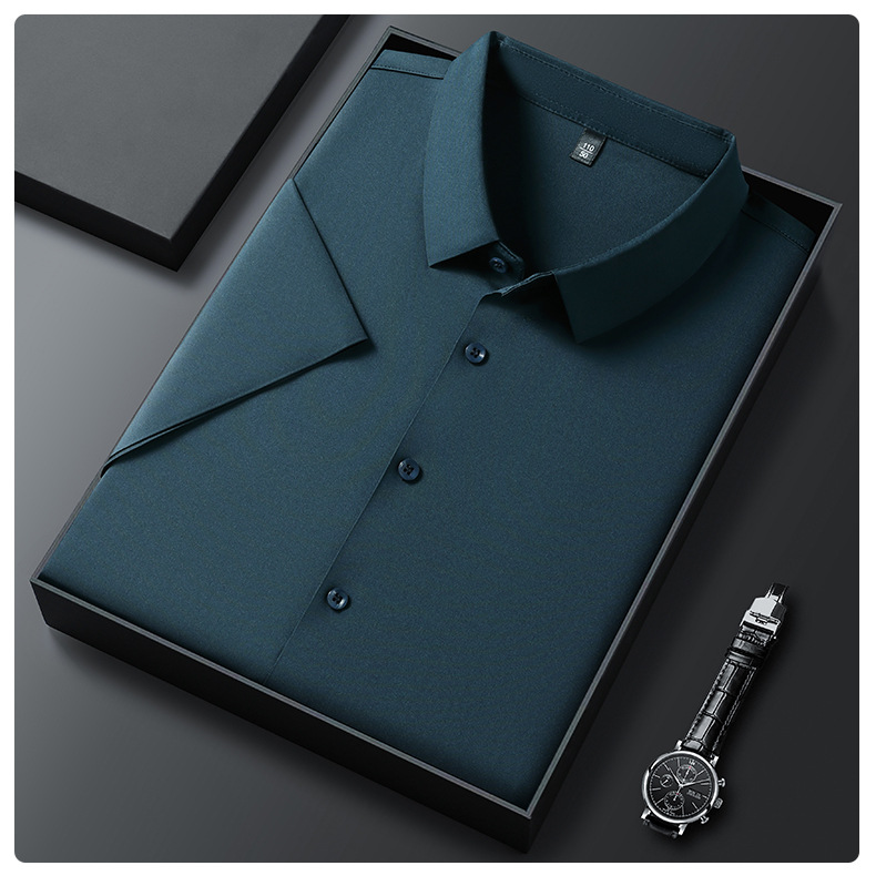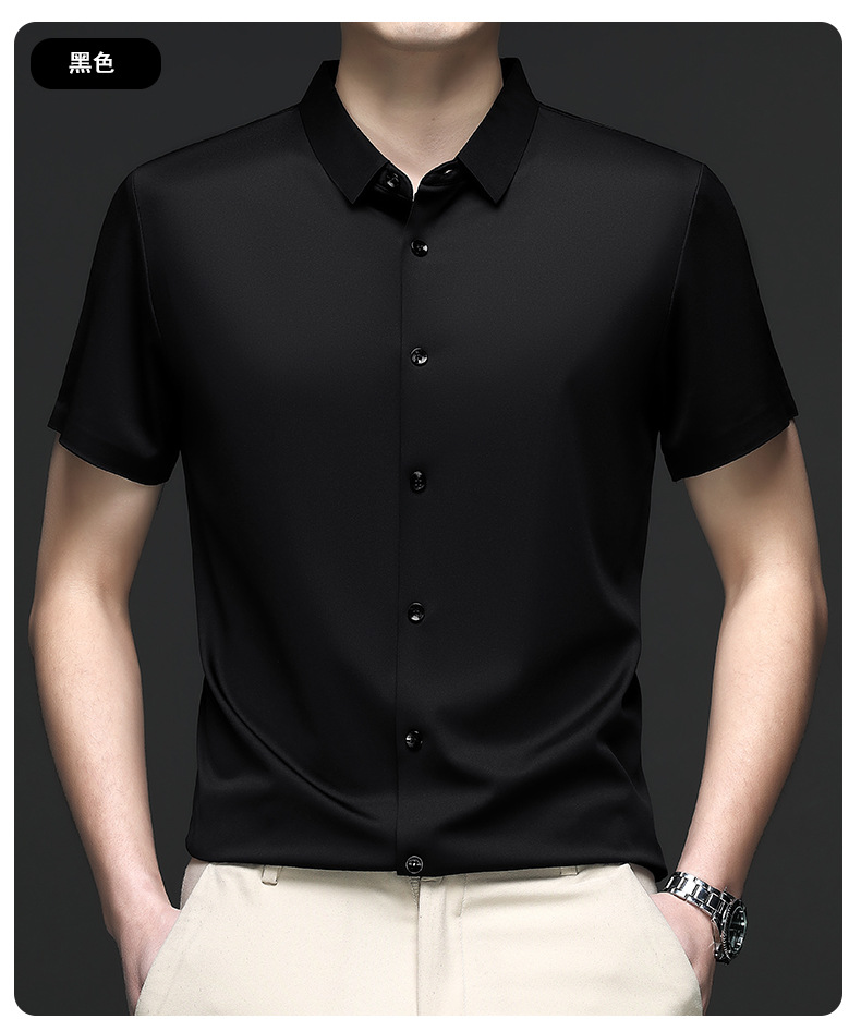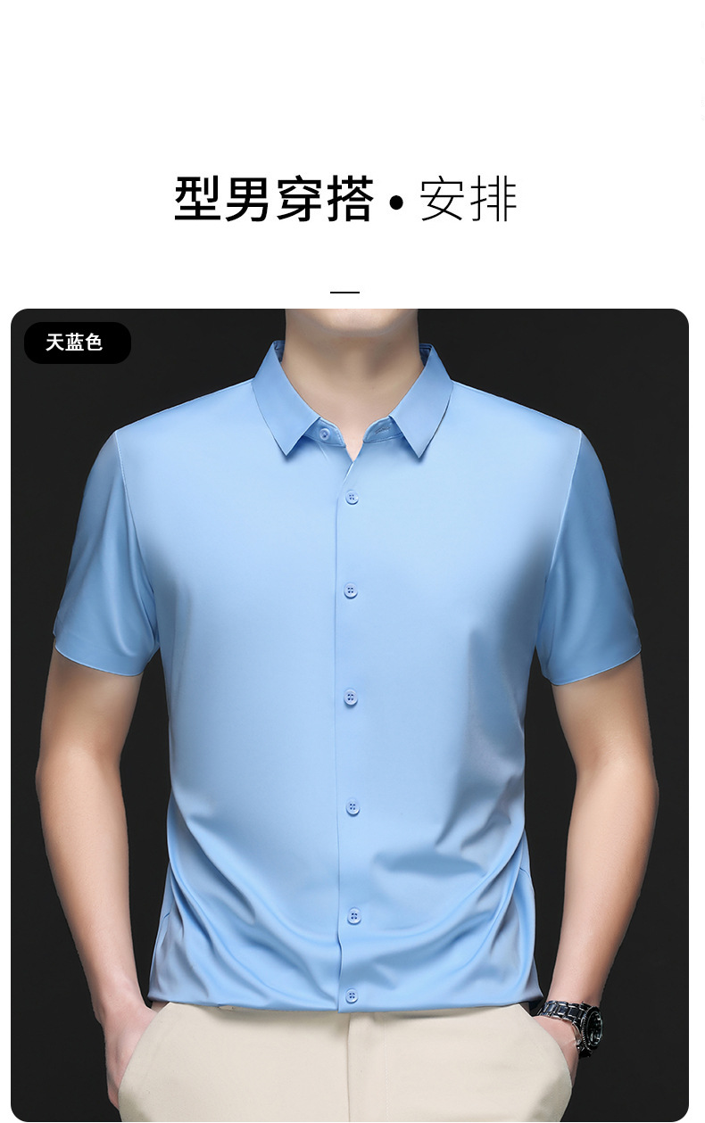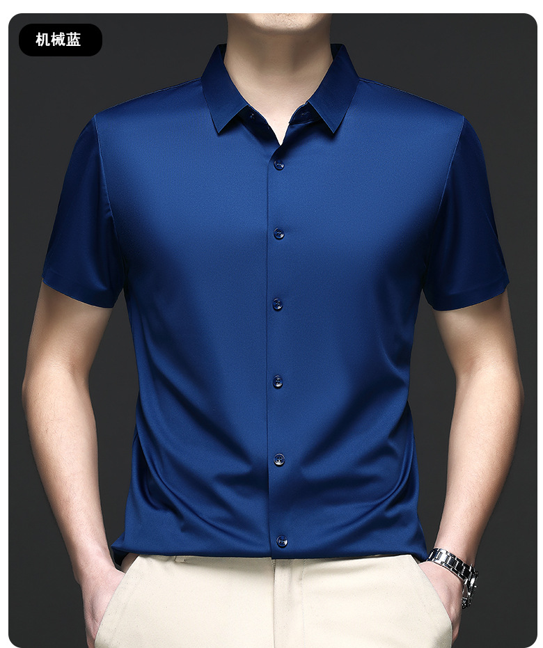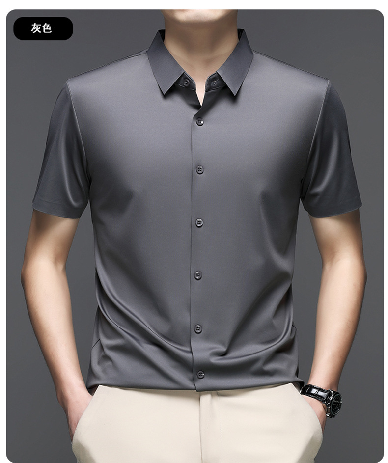 트렌즈없는 셔츠 남자 반팔 하이 엔드 2025 여름 새로운 스타일 중년 비즈니스 캐주얼 아빠 아이스 실크 남자 셔츠스토어 가기
