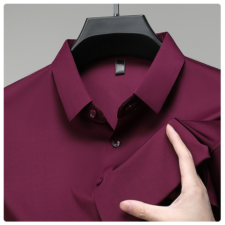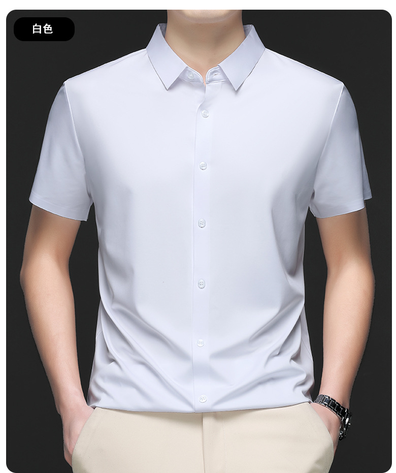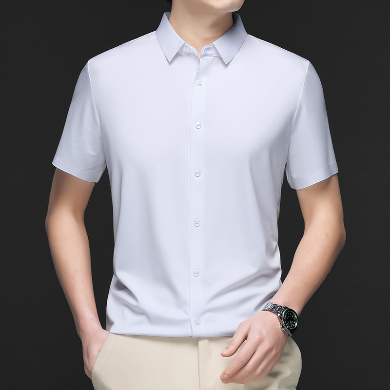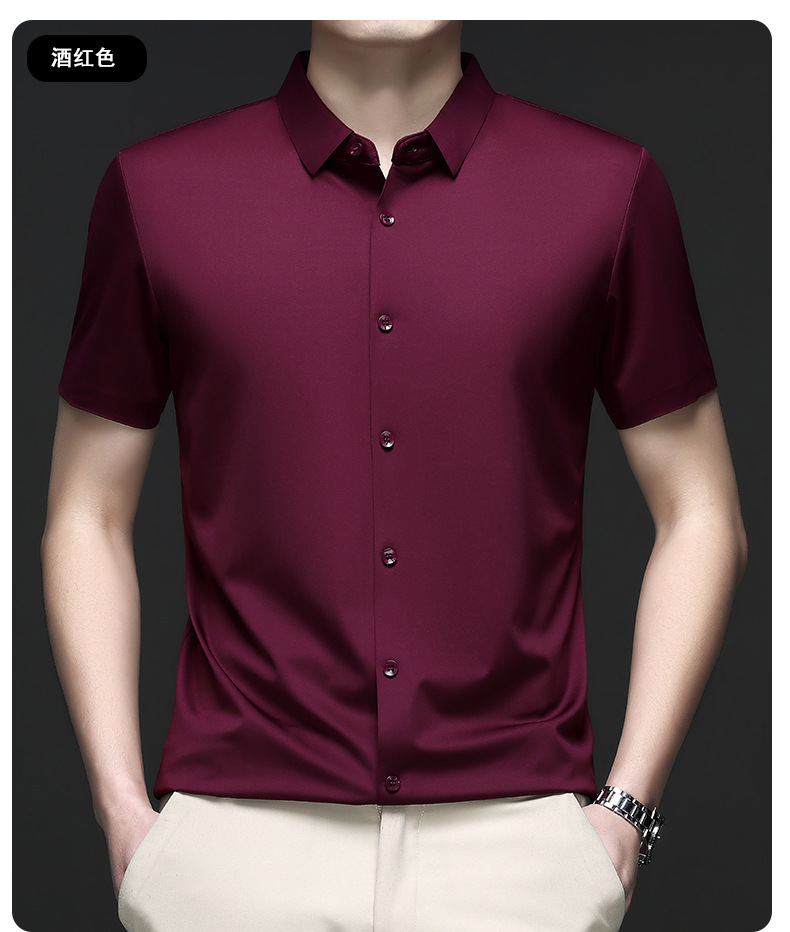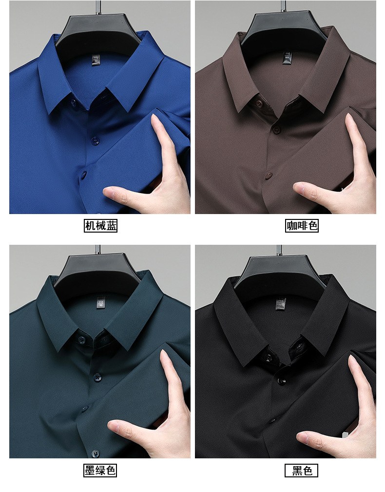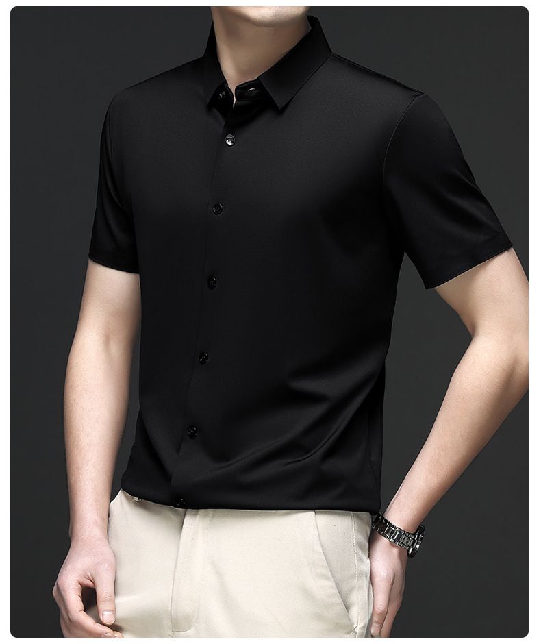 트렌즈없는 셔츠 남자 반팔 하이 엔드 2025 여름 새로운 스타일 중년 비즈니스 캐주얼 아빠 아이스 실크 남자 셔츠스토어 가기