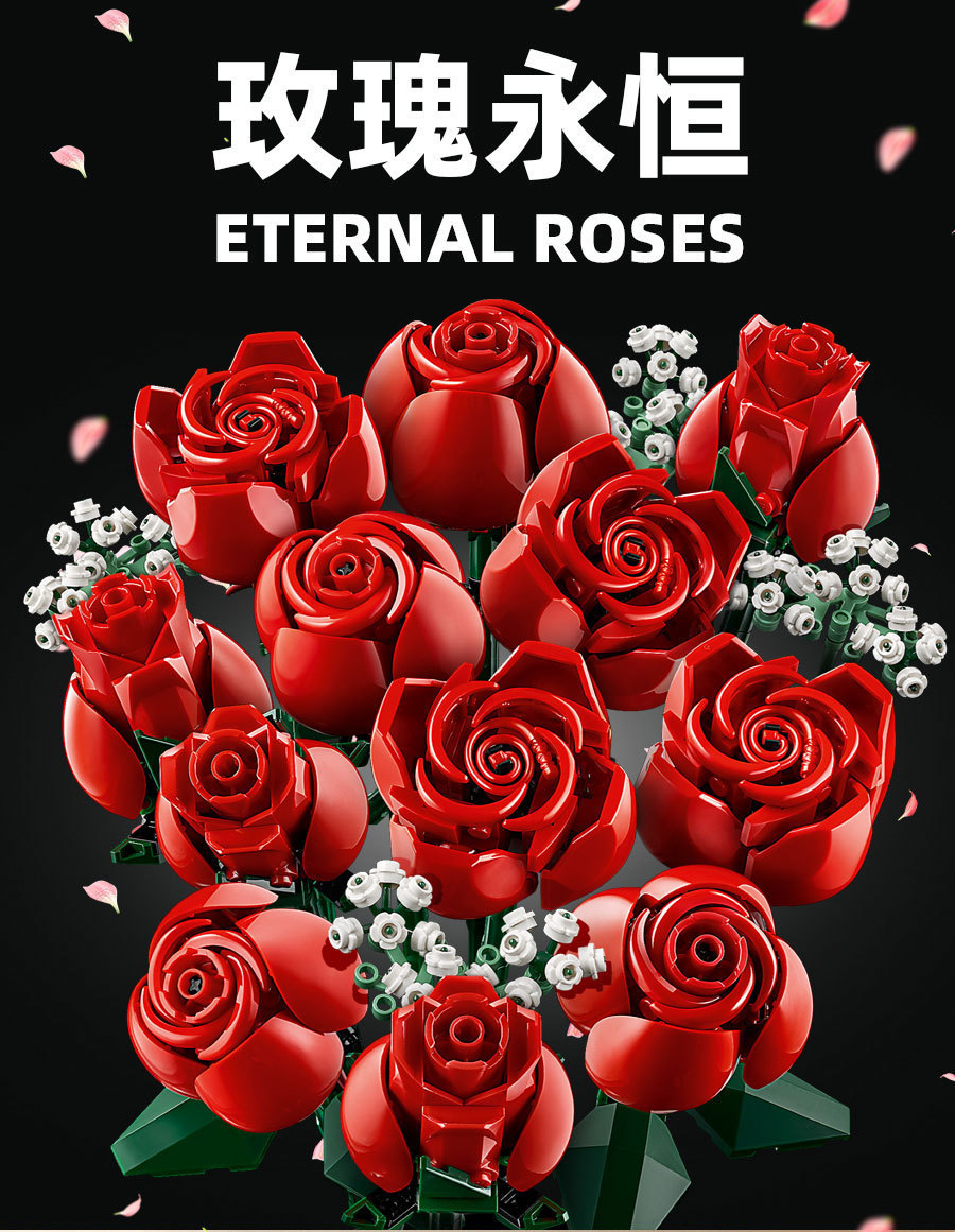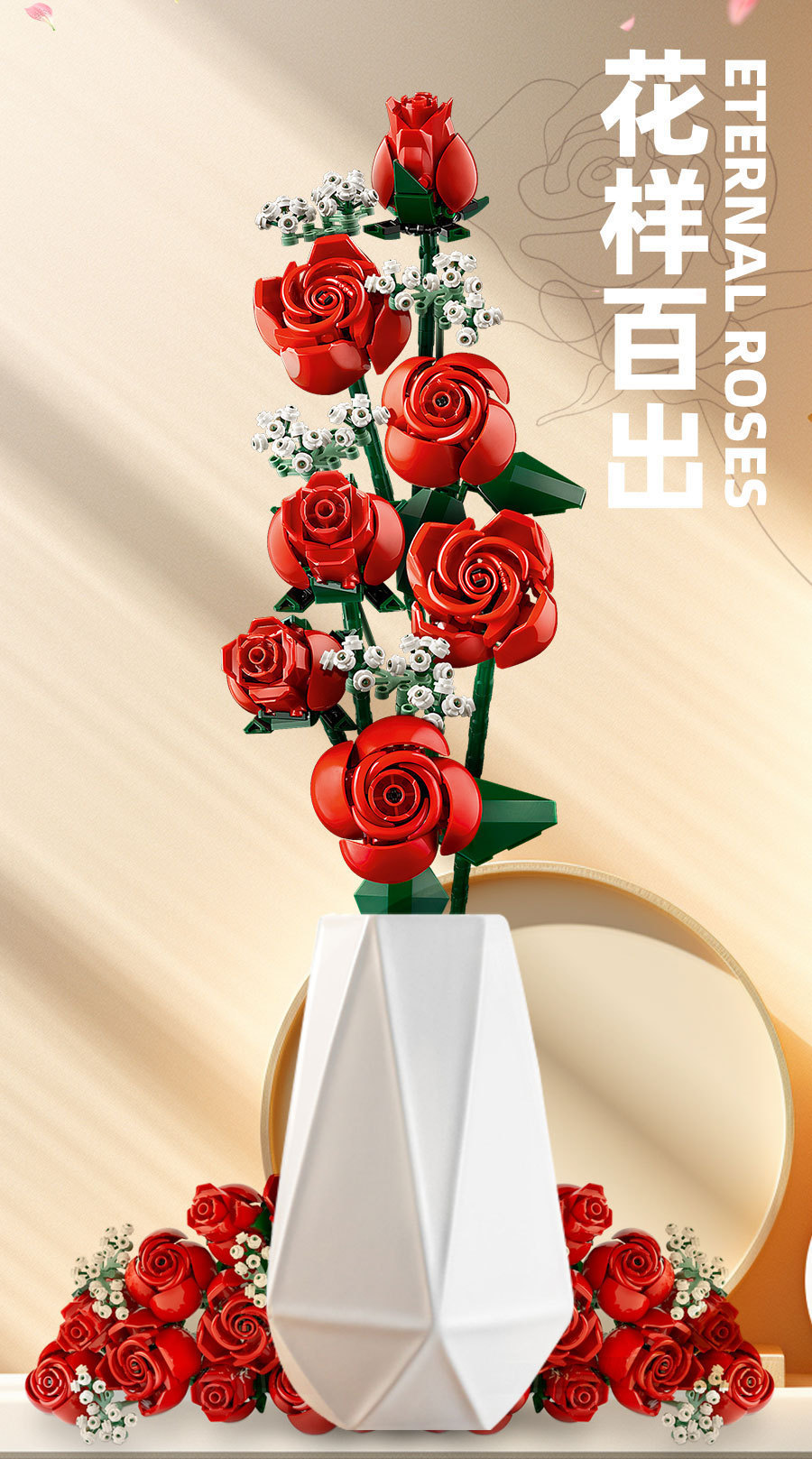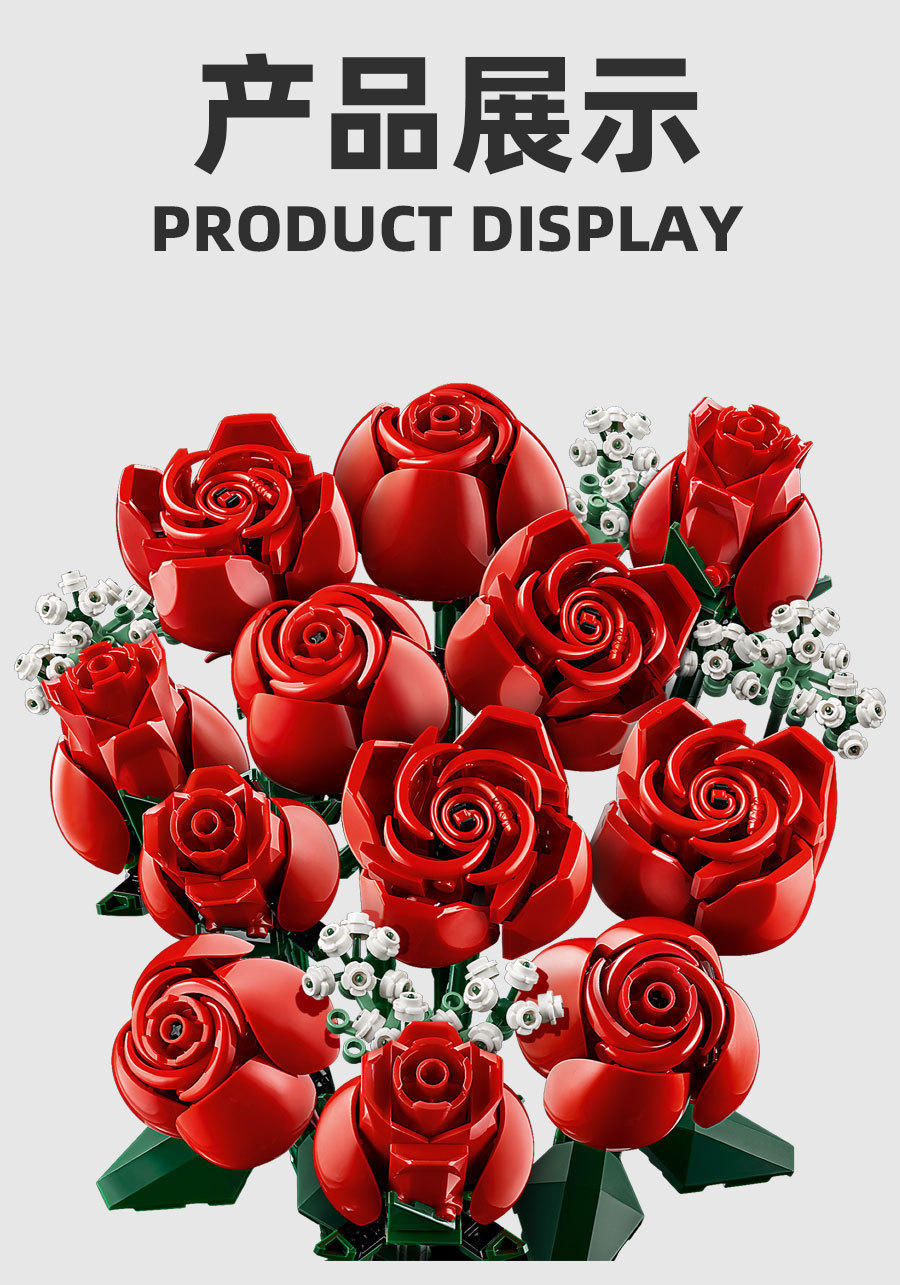 국경 간 호환 레고 로즈 꽃다발 소년 조립 퍼즐 장난감 소녀 타나바타 발렌타인 데이 선물스토어 가기