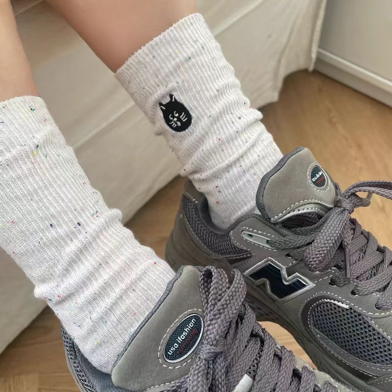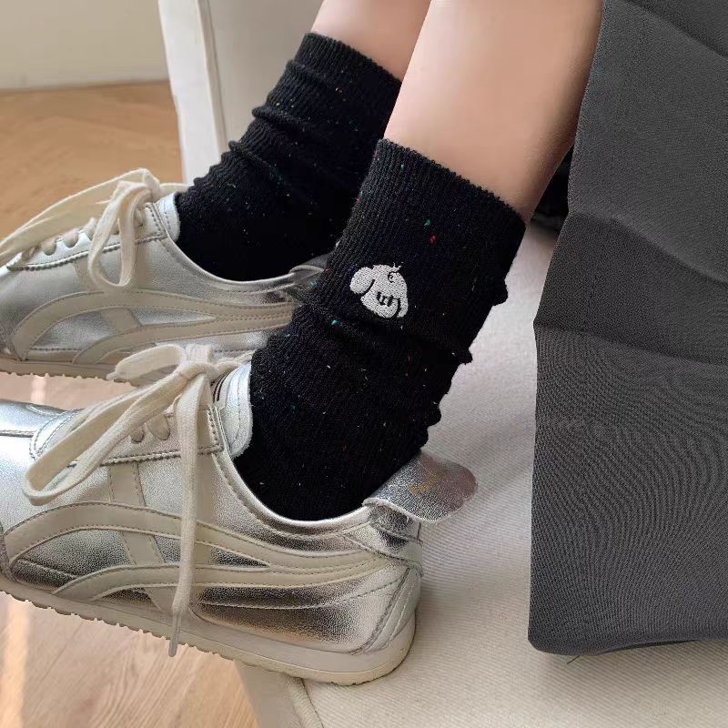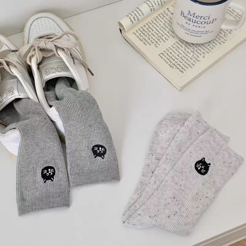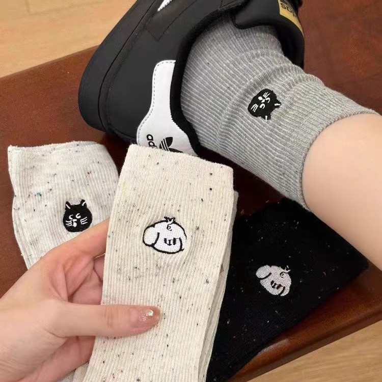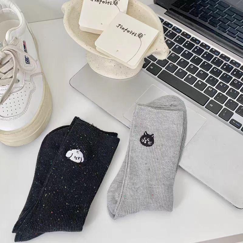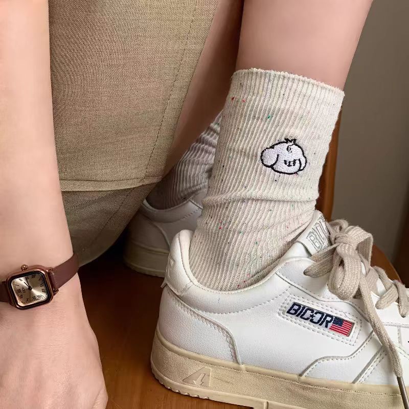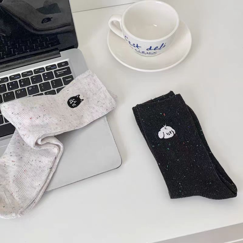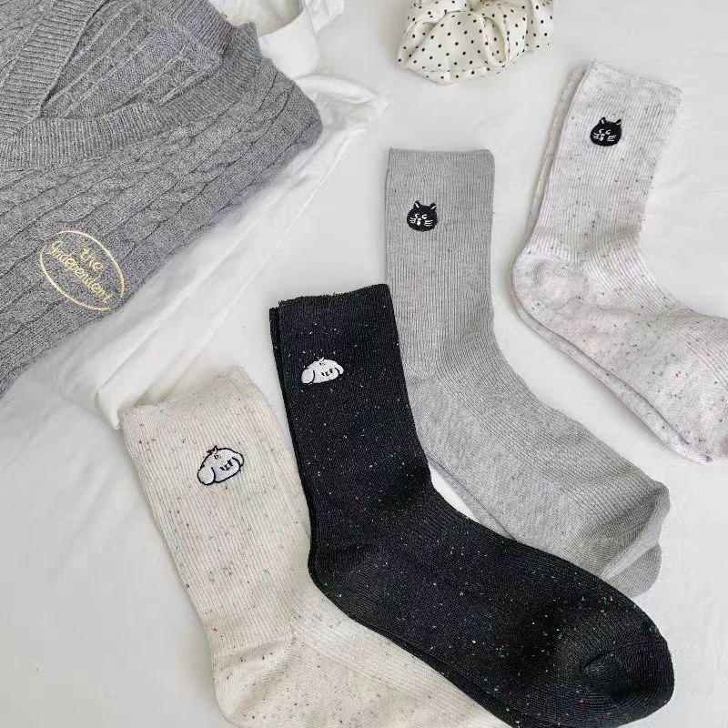 한국판 순면 단색 니트 포인트 원사 만화 동물 자수 더미 양말 여성 동대문에 훈련 신발스토어 가기