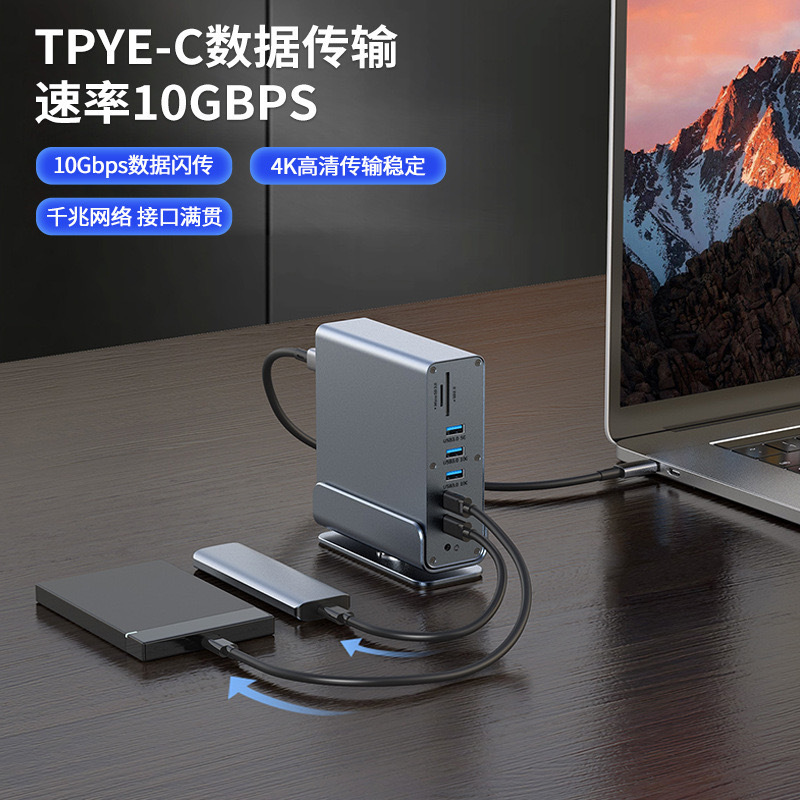 유형 c 도킹 스테이션 기가비트 포트 수직 컴퓨터 데스크톱 도킹 스테이션 USB 멀티 인터페이스 어댑터 스플리터