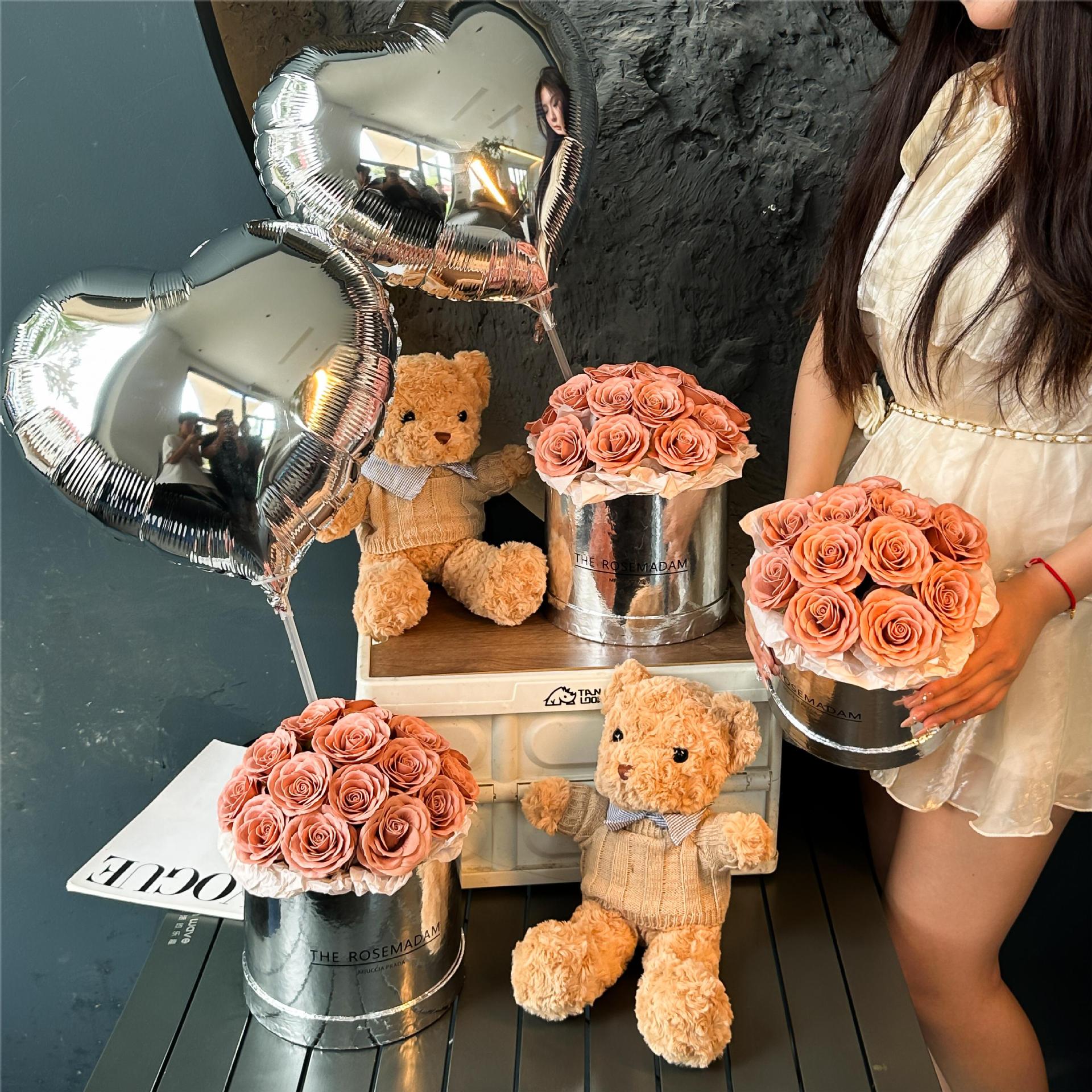 장미 영원한 꽃 곰 인형 꽃다발 비누 꽃 생일 선물 여자 가장 친한 친구 520 발렌타인 데이 선물스토어 가기
