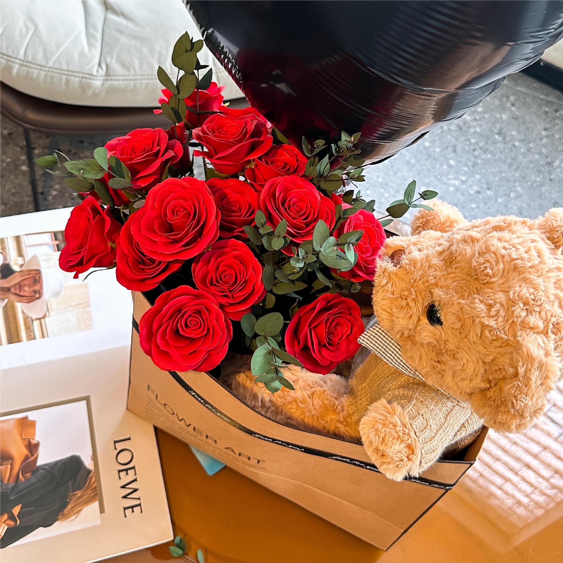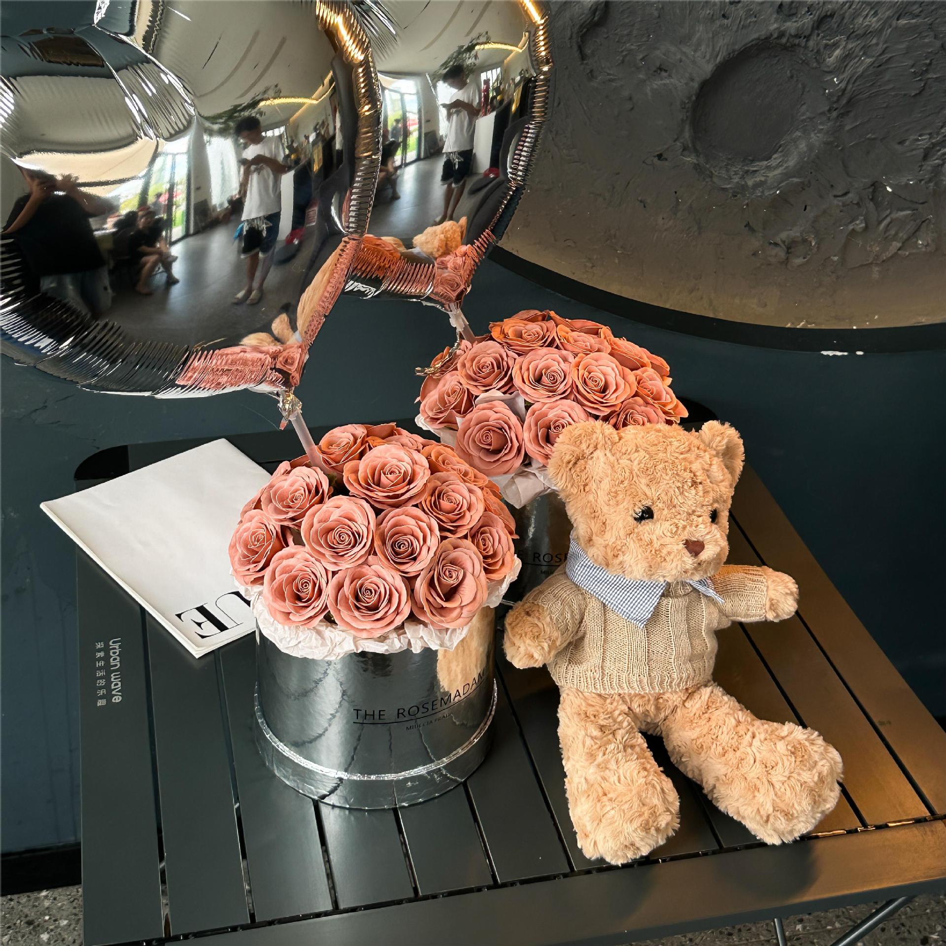 장미 영원한 꽃 곰 인형 꽃다발 비누 꽃 생일 선물 여자 가장 친한 친구 520 발렌타인 데이 선물
