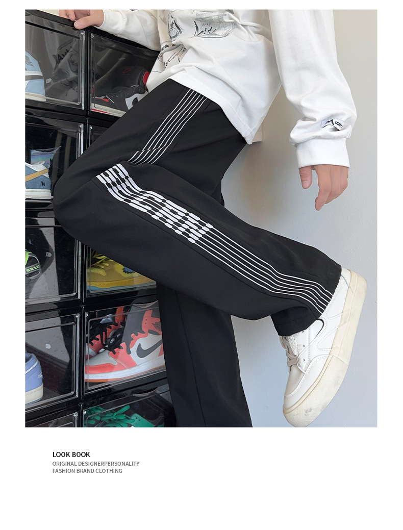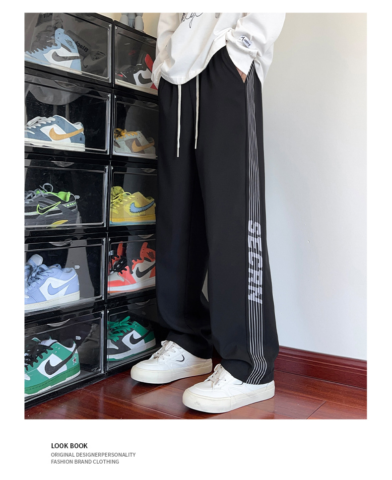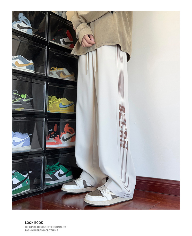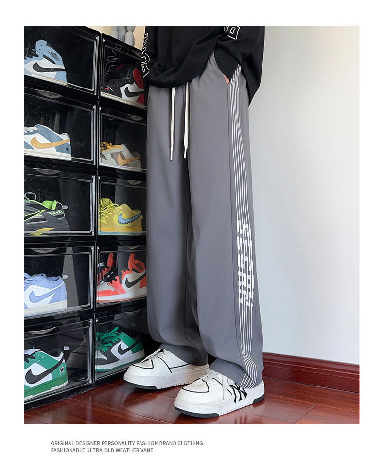 NASA 처진 바지 남자의 가을 새로운 느슨한 스트레이트 바지 하이 스트리트 사이드 스트라이프 플러튼 핸섬 와이드 레그 캐주얼 바지스토어 가기