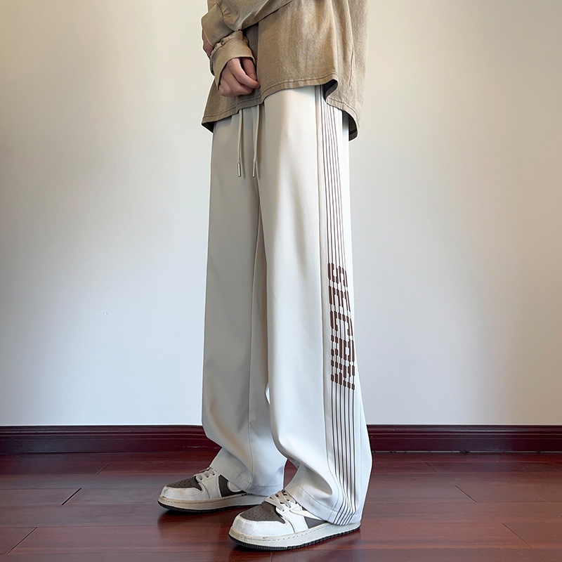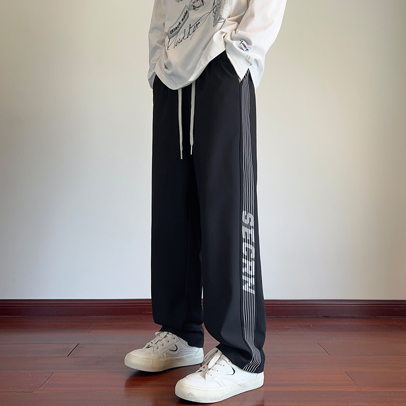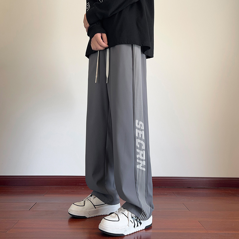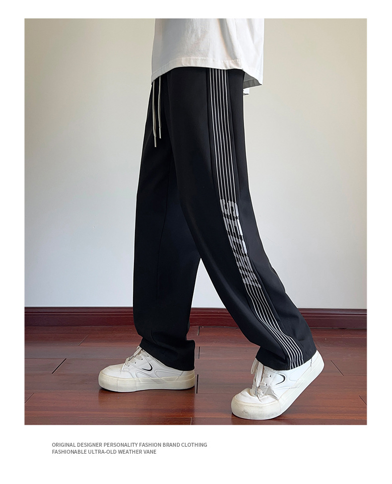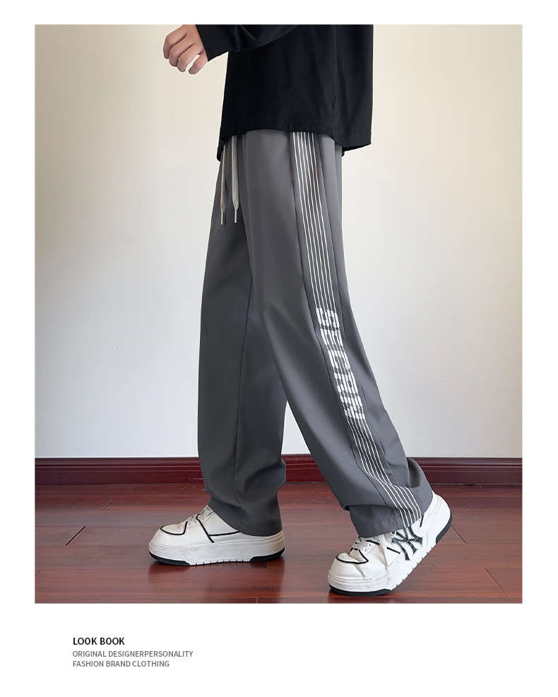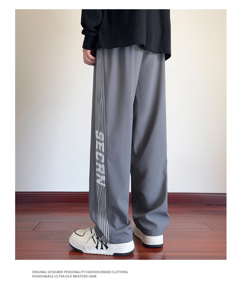 NASA 처진 바지 남자의 가을 새로운 느슨한 스트레이트 바지 하이 스트리트 사이드 스트라이프 플러튼 핸섬 와이드 레그 캐주얼 바지