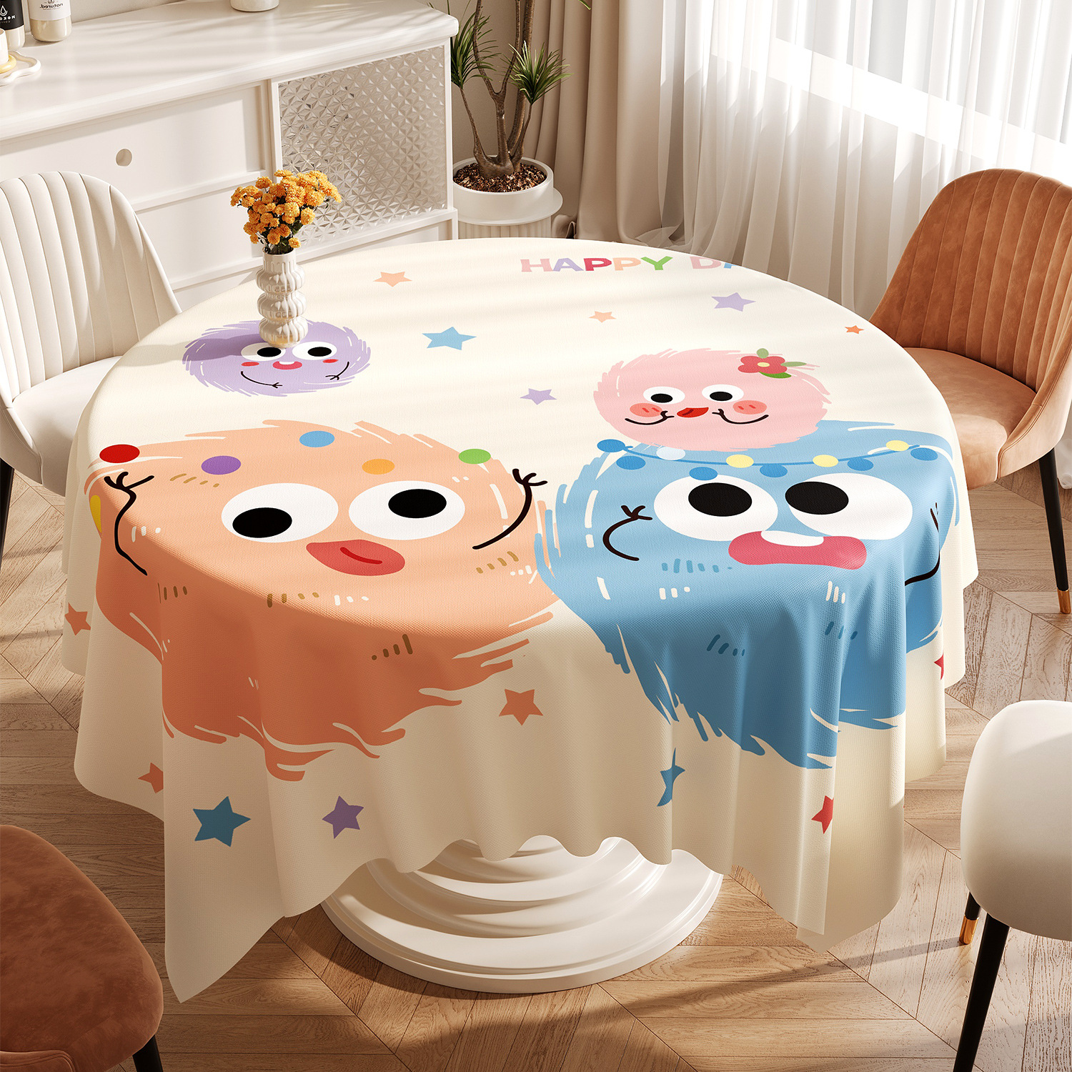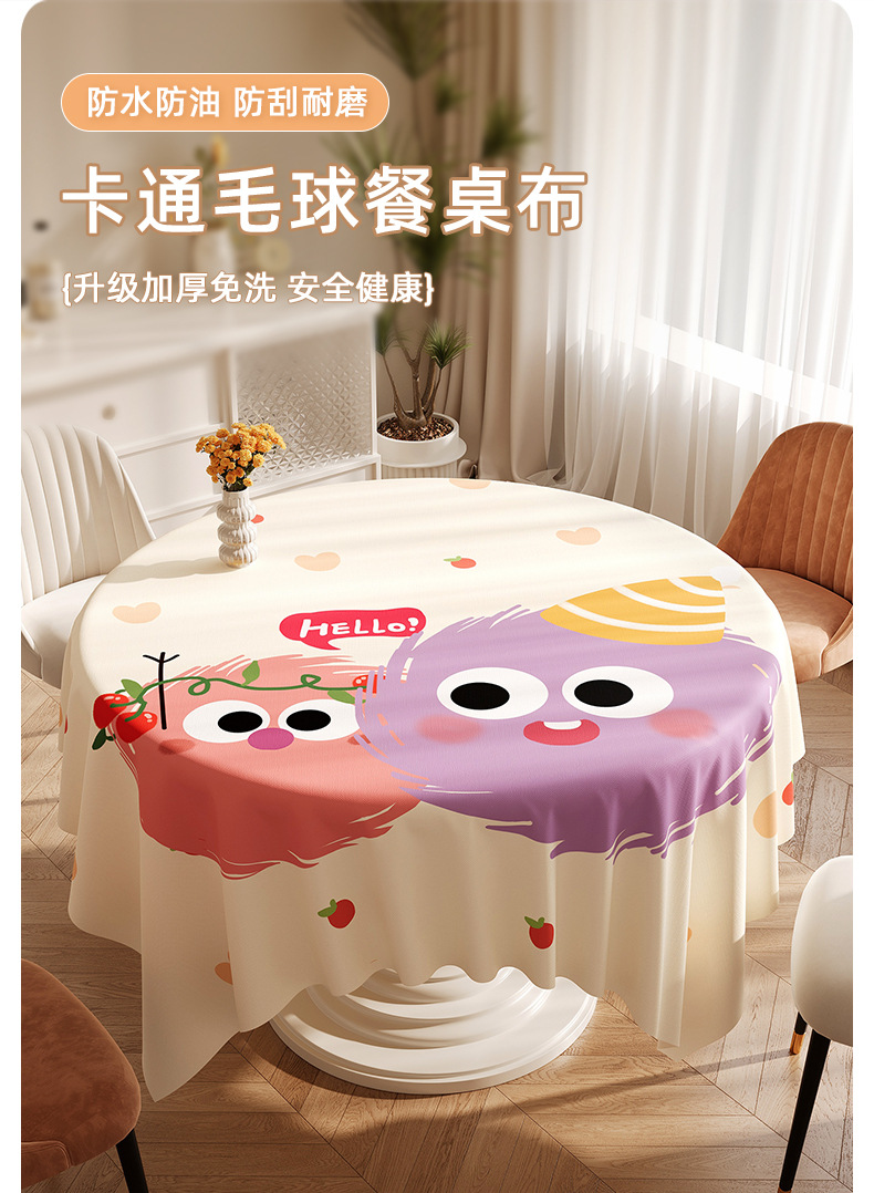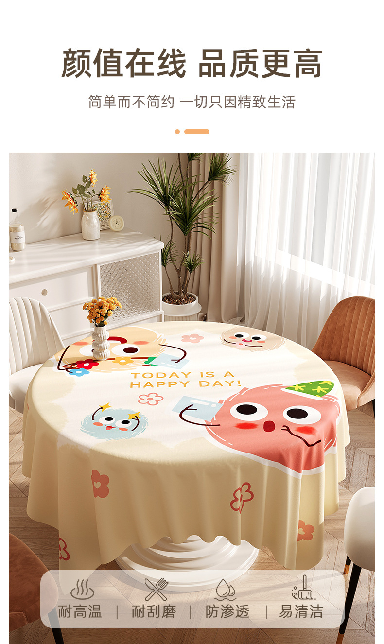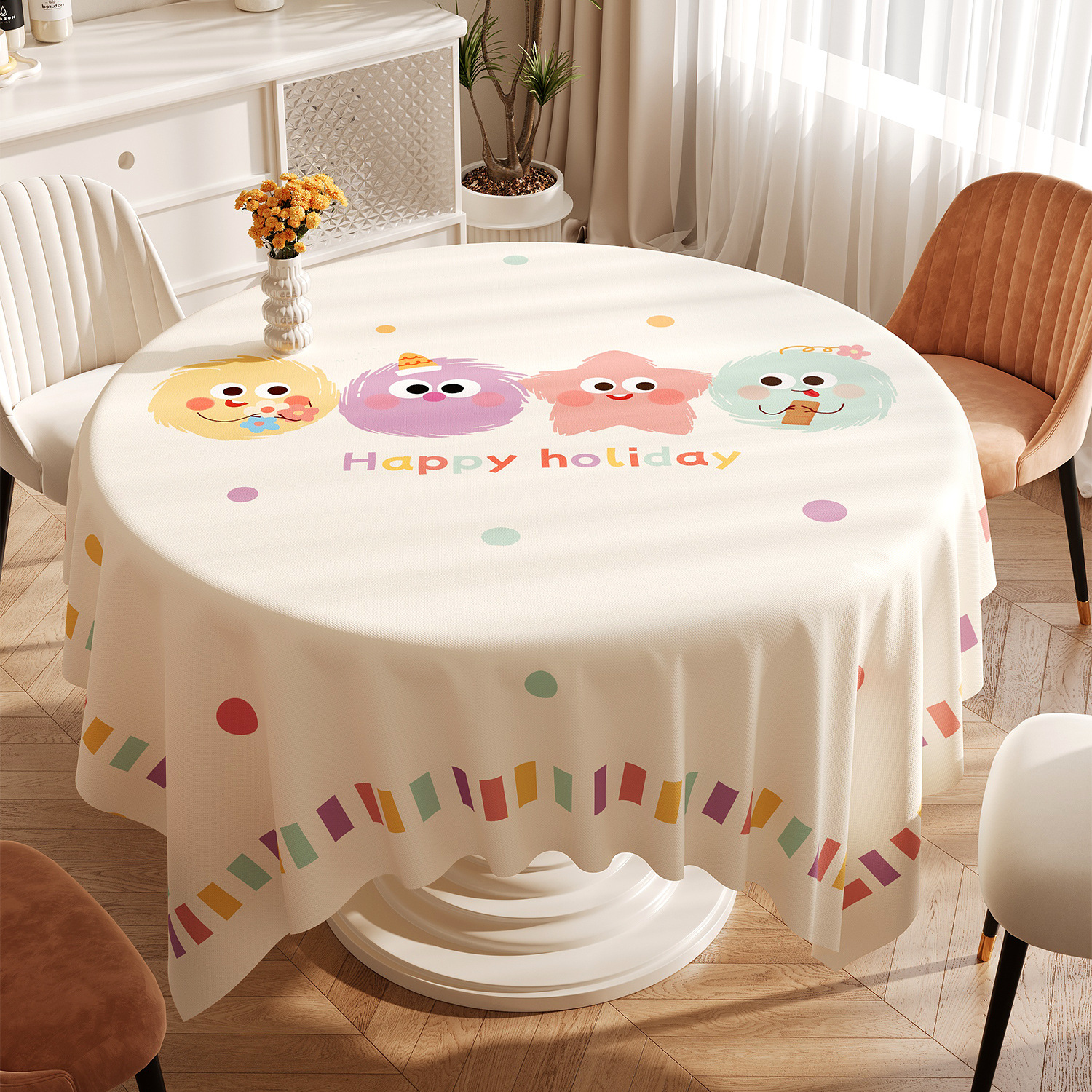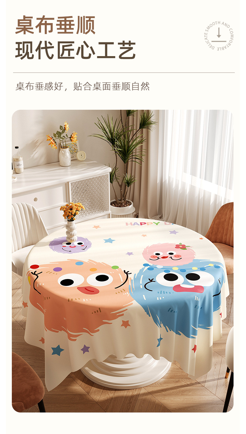 만화 도파민 둥근 식탁보 세척 무료 방수 오일 방지 조명 고급 하이 엔드 느낌 2025 새로운 캐주얼 작은 커피 테이블 천스토어 가기