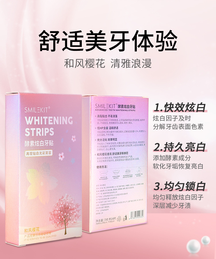 벚꽃 효소 브릴리언트 화이트 치아 스티커 전문 흰색 치아 효소 밝은 흰색 자물쇠 흰색 치아 스티커 재고스토어 가기