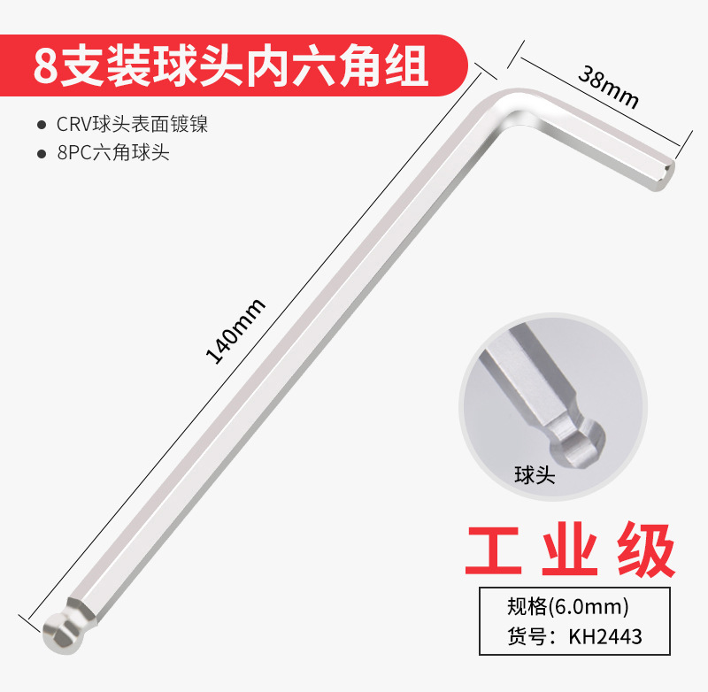 • 볼 헤드 내부 육각형 중간 길이(산업용 등급) 8개 팩