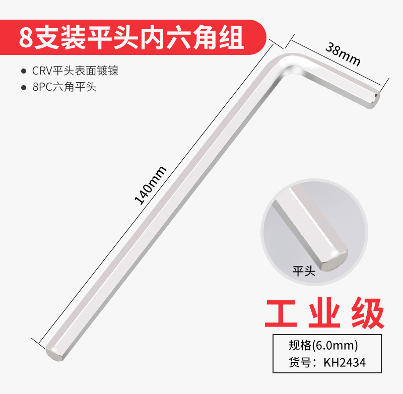 • 플랫 헤드 육각 니켈 도금 8개 세트(소형 모델)