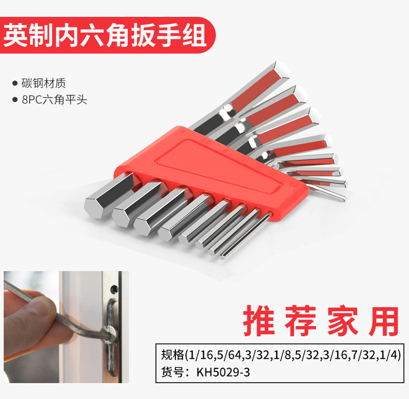 • 크롬 바나듐 강철 임페리얼 8개 플랫 헤드 육각 소켓 세트(소형 모델)