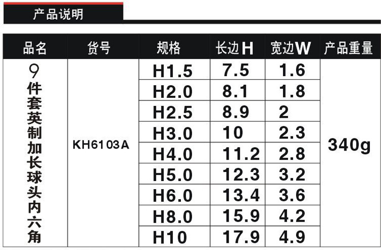 • 9개 세트 S2 볼 헤드 내부 육각형 중간 길이(임페리얼 산업 등급)