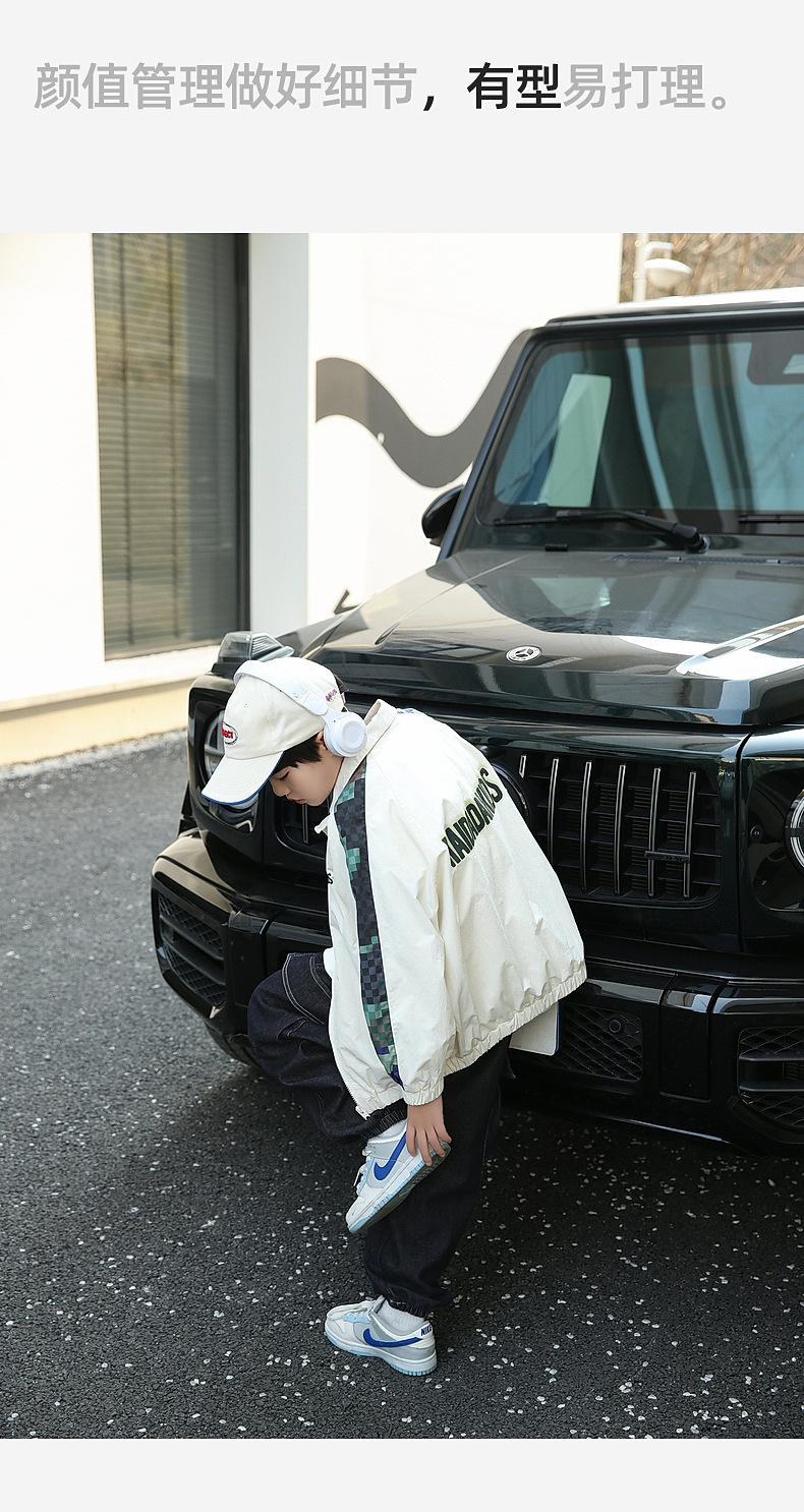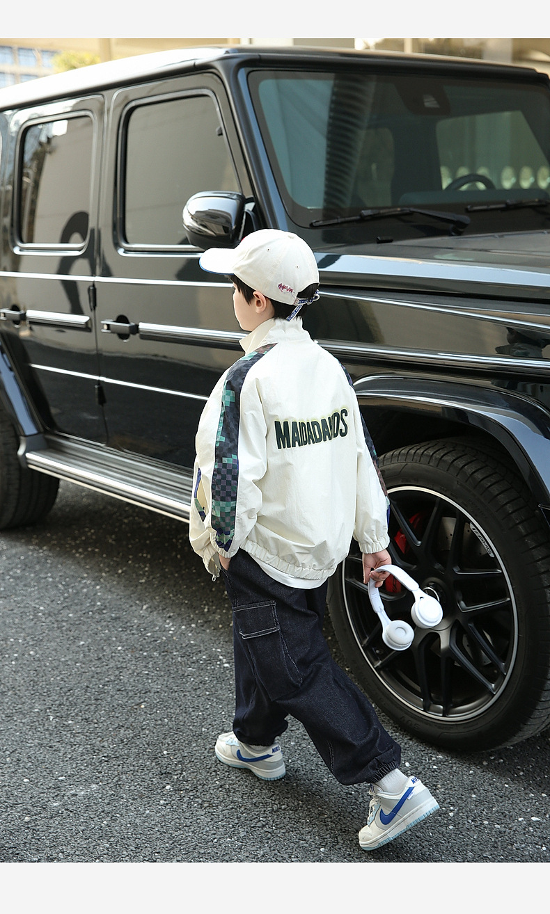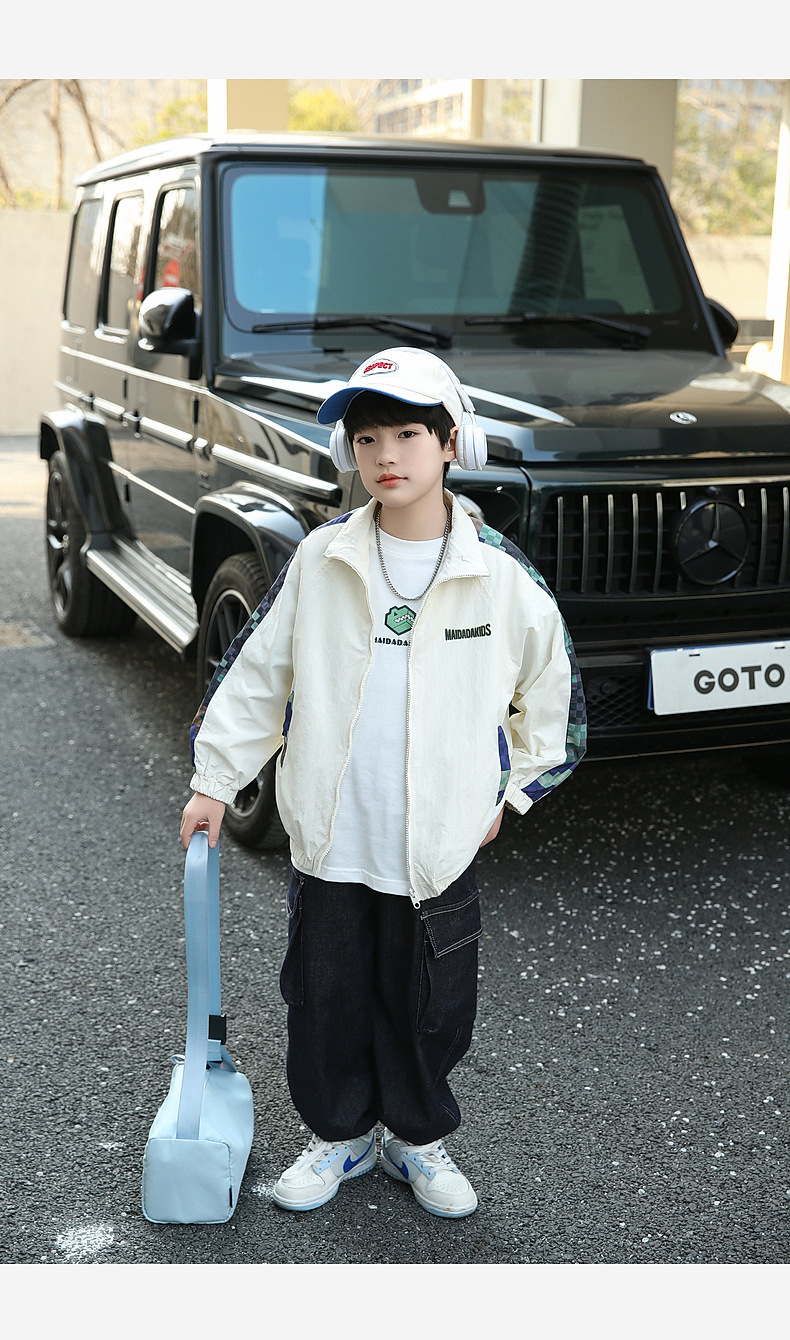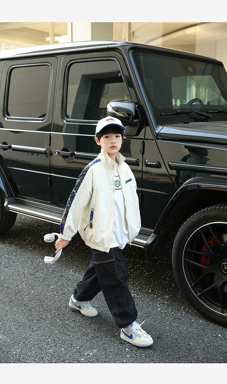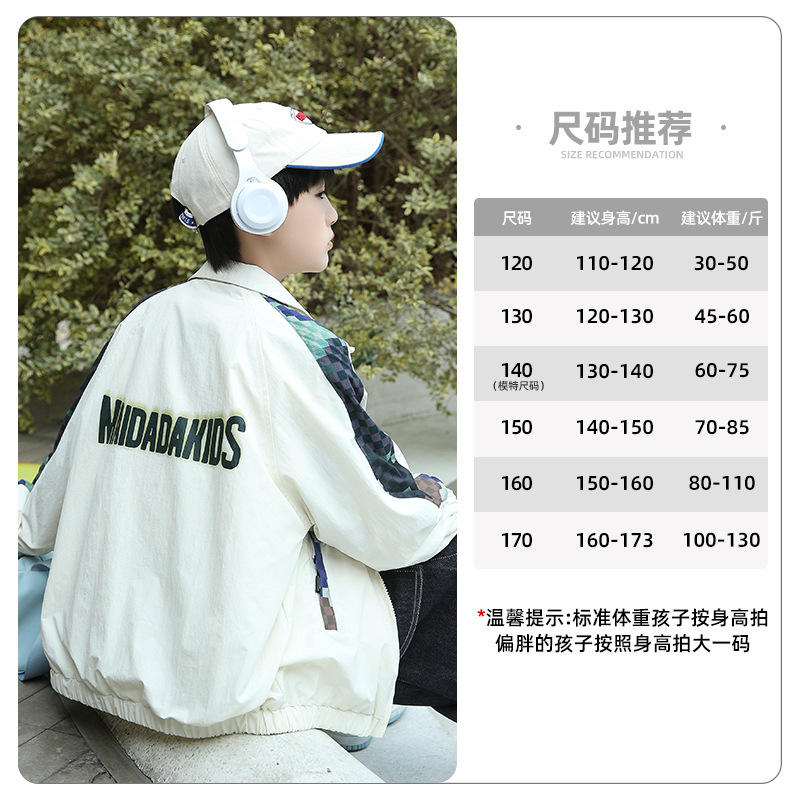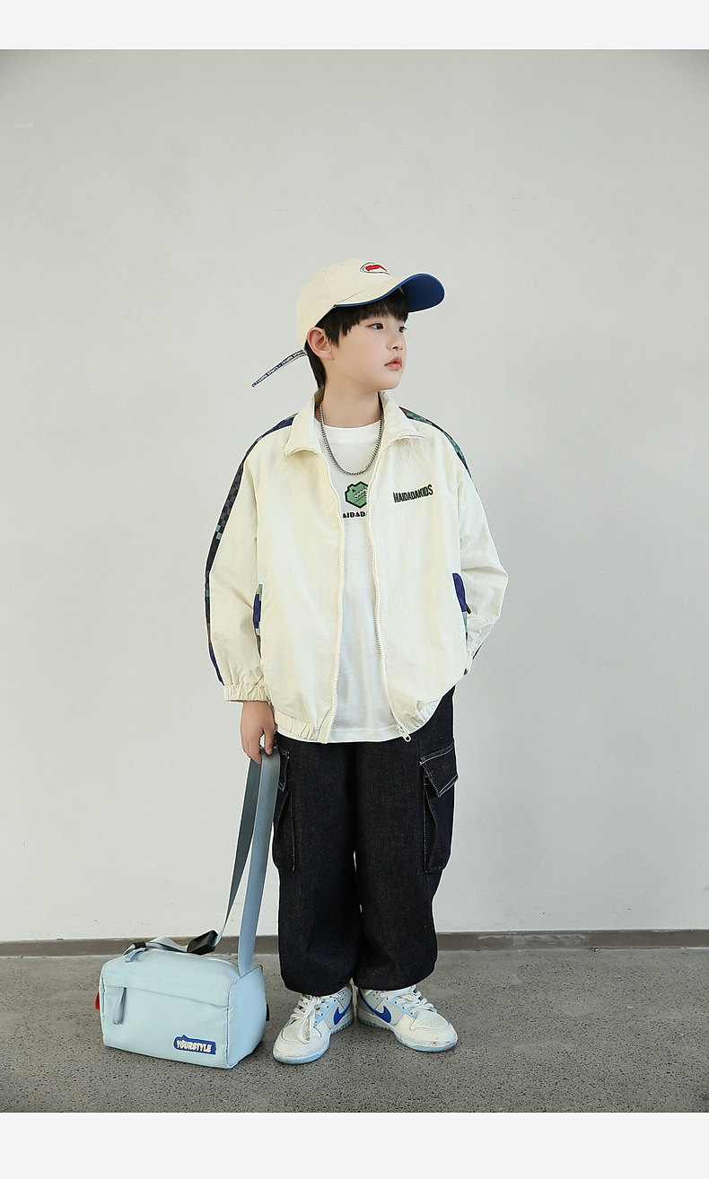 Panda Yuanyuan 2025 새로운 야외 방수 흰색 어린이 스포츠 코트 태양 보호 봄 소년 재킷 도매스토어 가기