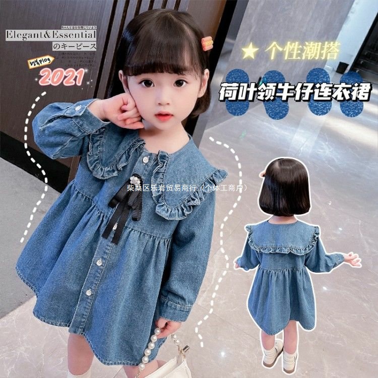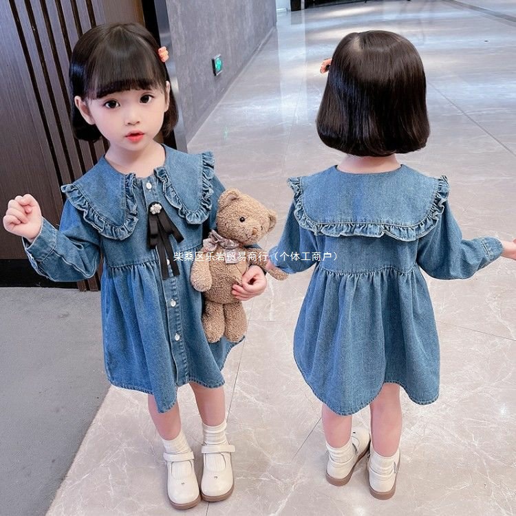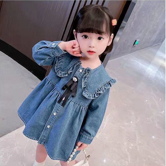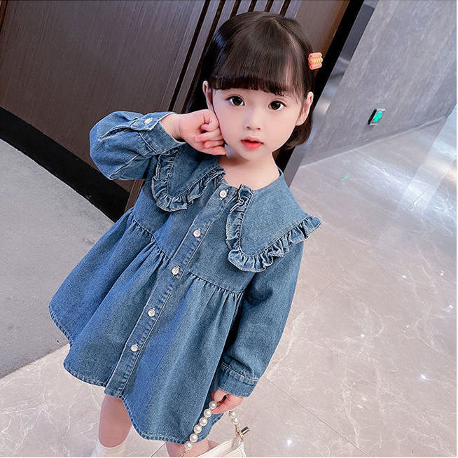 어린이 가을 새 치마 소녀 데님 치마 여성 아기 공주 치마 어린이 봄과 가을 긴 탑 도매스토어 가기