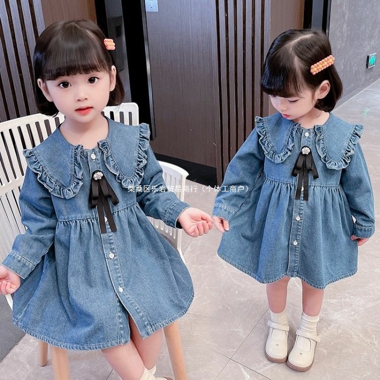 어린이 가을 새 치마 소녀 데님 치마 여성 아기 공주 치마 어린이 봄과 가을 긴 탑 도매