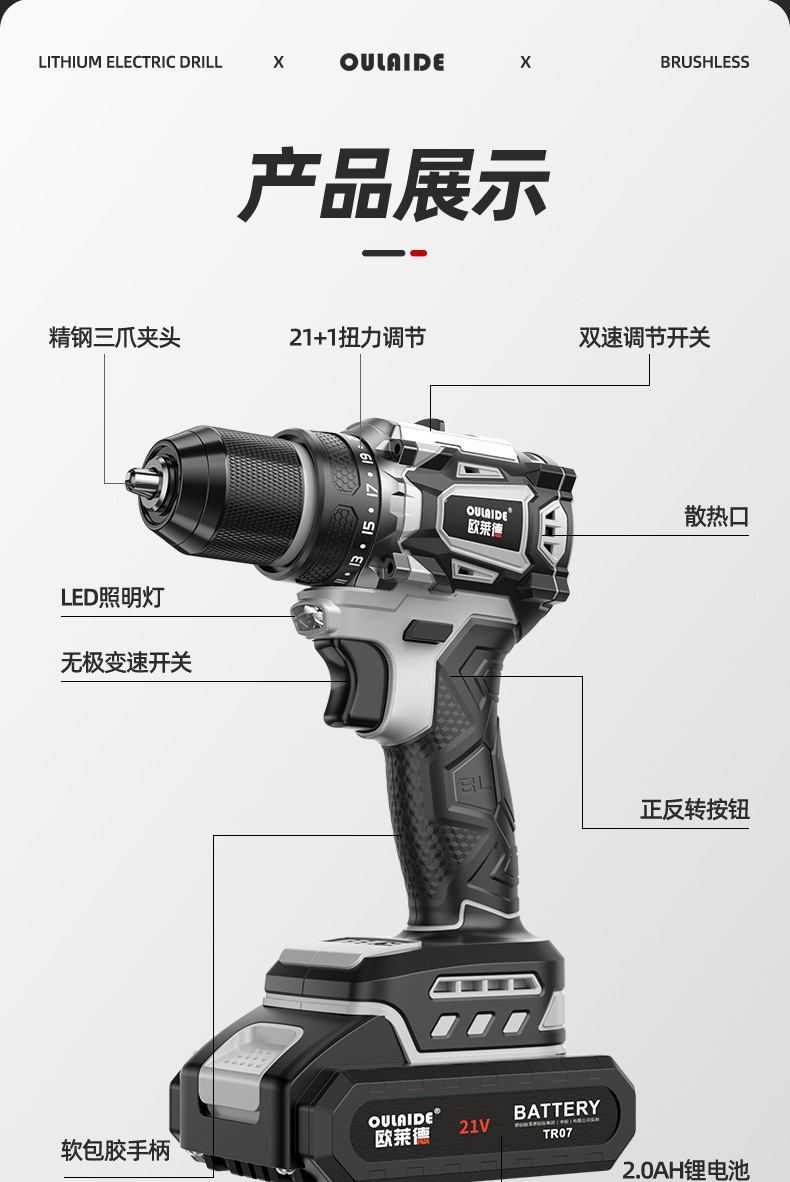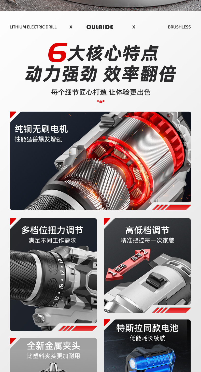 대형 강철 총 순수 구리 브러시리스 전기 드릴 손 전기 드릴 충전식 리튬 전기 드릴 작은 손 총 드릴 다기능 드릴링 작은 강철 총